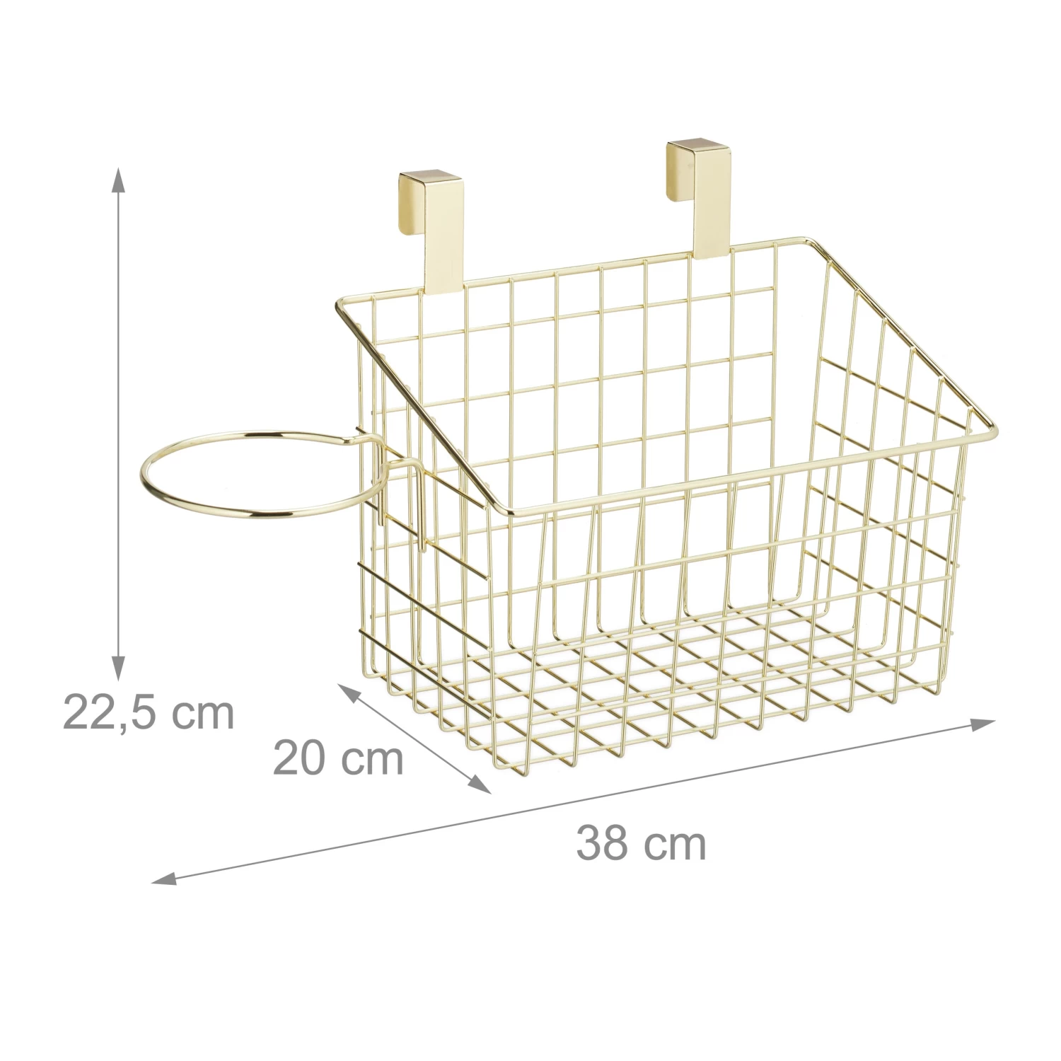 In Küchen ist oft zu wenig Platz für die Aufbewahrung von Putzmittel und andere Utensilien. Dieser Gitterkorb schafft dem Abhilfe: Im Küchenschrank lässt er sich ganz einfach innen oder außen an der Tür einhängen und bietet somit extra Stauraum. An den Ring können Sie zum Trocknen ein Geschirrtuch unterbringen. Auch in anderen Räumen ist der Schrankkorb ein Organisationstalent. Hängen Sie den Drahtkorb im Bad an den Heizkörper und verstauen Sie darin griffbereit Badezubehör.