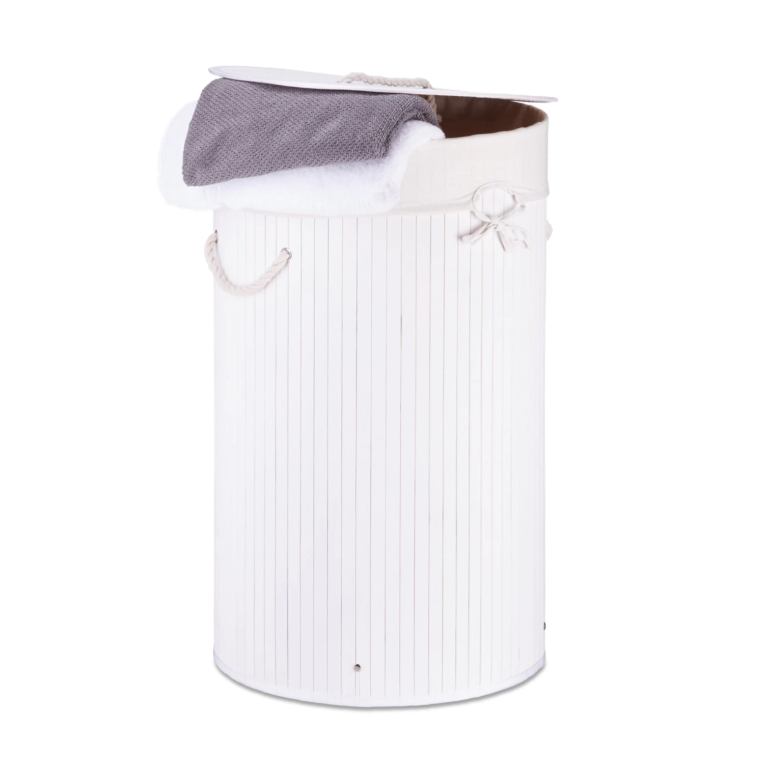 Holen Sie sich den idealen Wäschekorb für Schlafzimmer, Bad oder Keller nach Hause. Die Fertigung aus Bambus macht die Wäschetonne zum optimalen Möbel für Feuchträume und schafft einen dekorativen Look, der Highlights setzt. Die Wäschetruhe bietet viel Platz für Ihre Schmutzwäsche. Diese kann problemlos mit dem Deckel verborgen oder bequem mit den Griffen transportiert werden. Bei Bedarf kann die flexible Wäschebox einfach zusammengefaltet und verstaut werden.