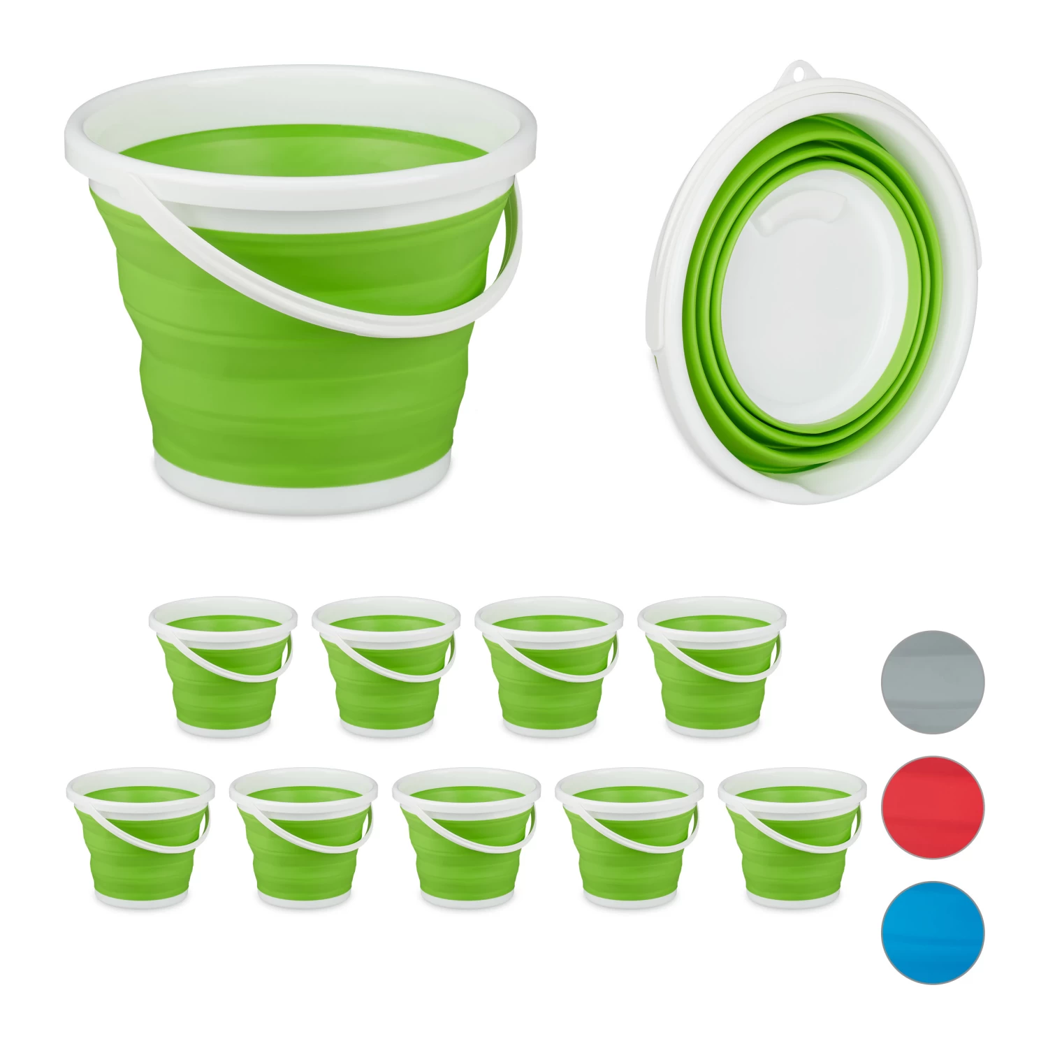 Ein 10 Liter Falteimer ist im Gegensatz zu herkömmlichen Putzeimern mit diesem Volumen enorm platzsparend. Das flexible Material des faltbaren Eimers erinnert an Silikon und ist sehr robust. Der stabile, obere Ring verfügt über einen Ausgießer und eine Öse zum Aufhängen. Der Wassereimer ist schnell ausgefaltet und lässt sich platzsparend verstauen. Dies ist nicht nur praktisch beim Haushaltsputz in kleinen Wohnungen, sondern auch beim Autowaschen oder unterwegs beim Campen.