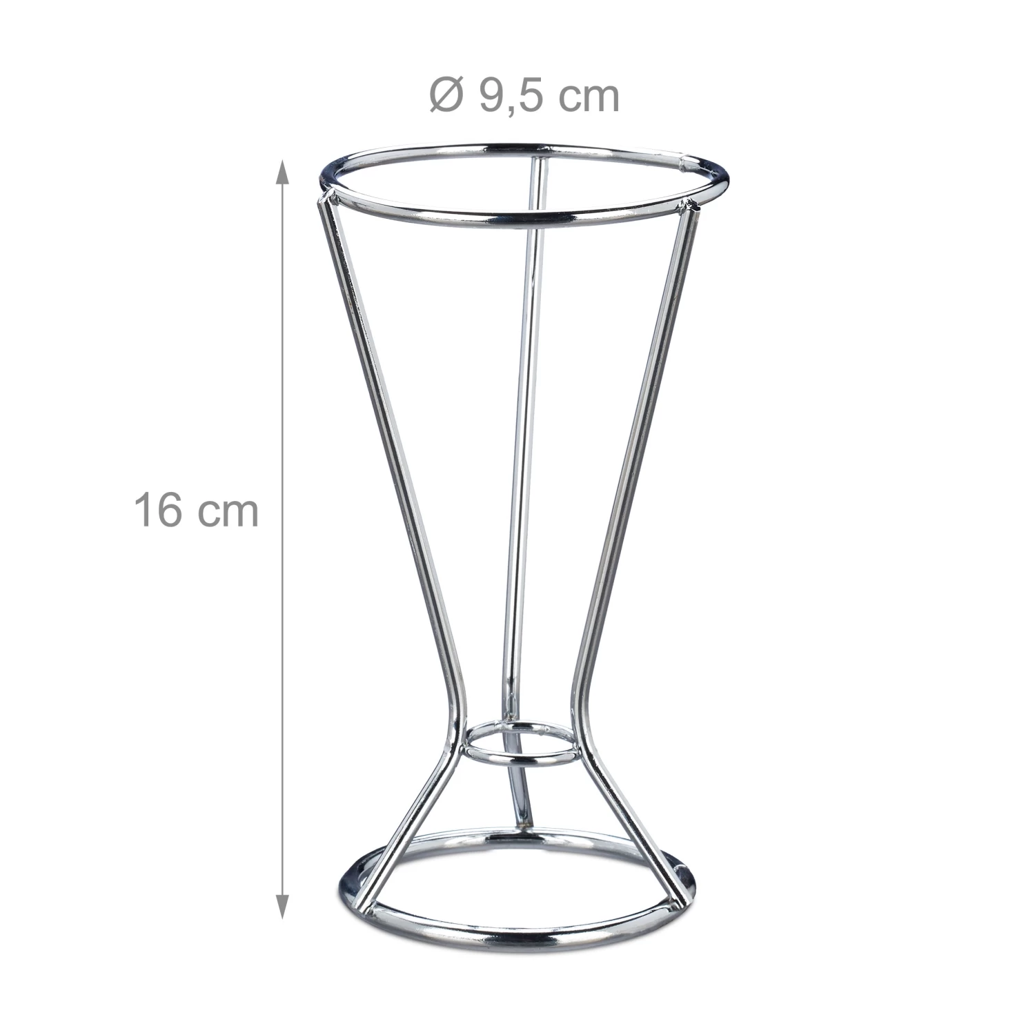 Zur Benutzung werden Spitztüten benötigt, die separat erworben werden müssen. Diese werden in den Halter hineingestellt, wodurch das selbstständige Halten der Pommestüte entfällt. Mit seinem schlichten Design erinnert der Pommesständer an die American Diner der 50er Jahre.