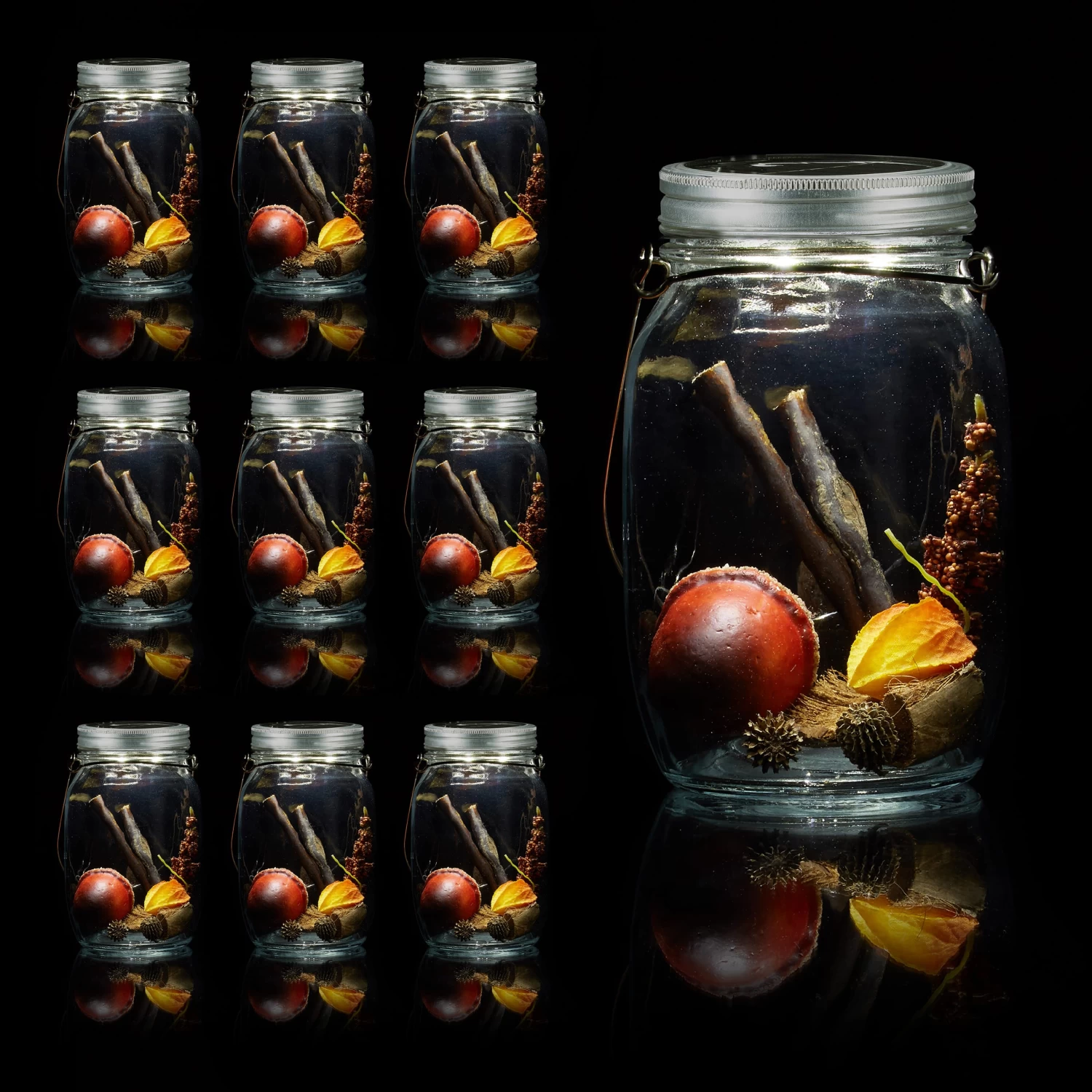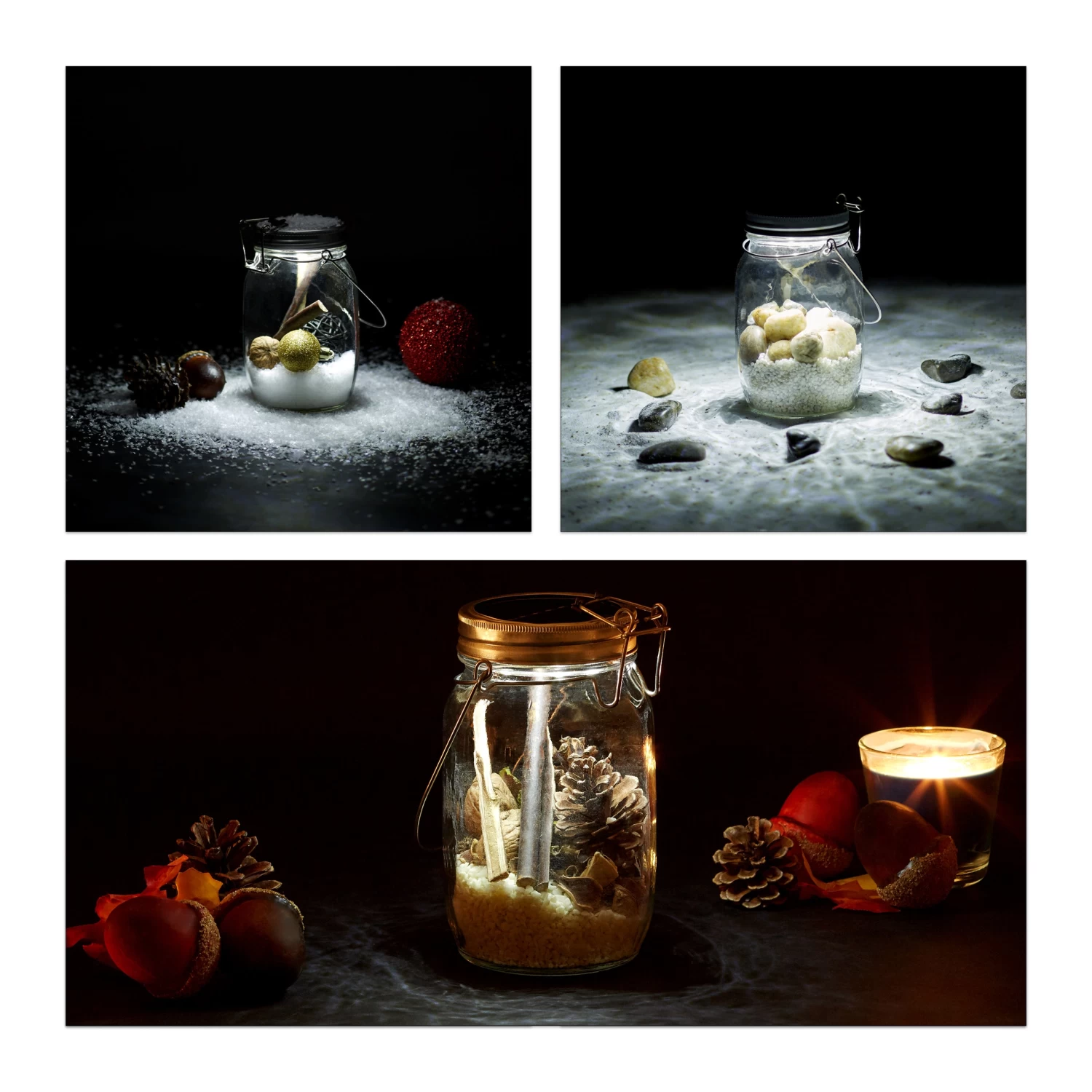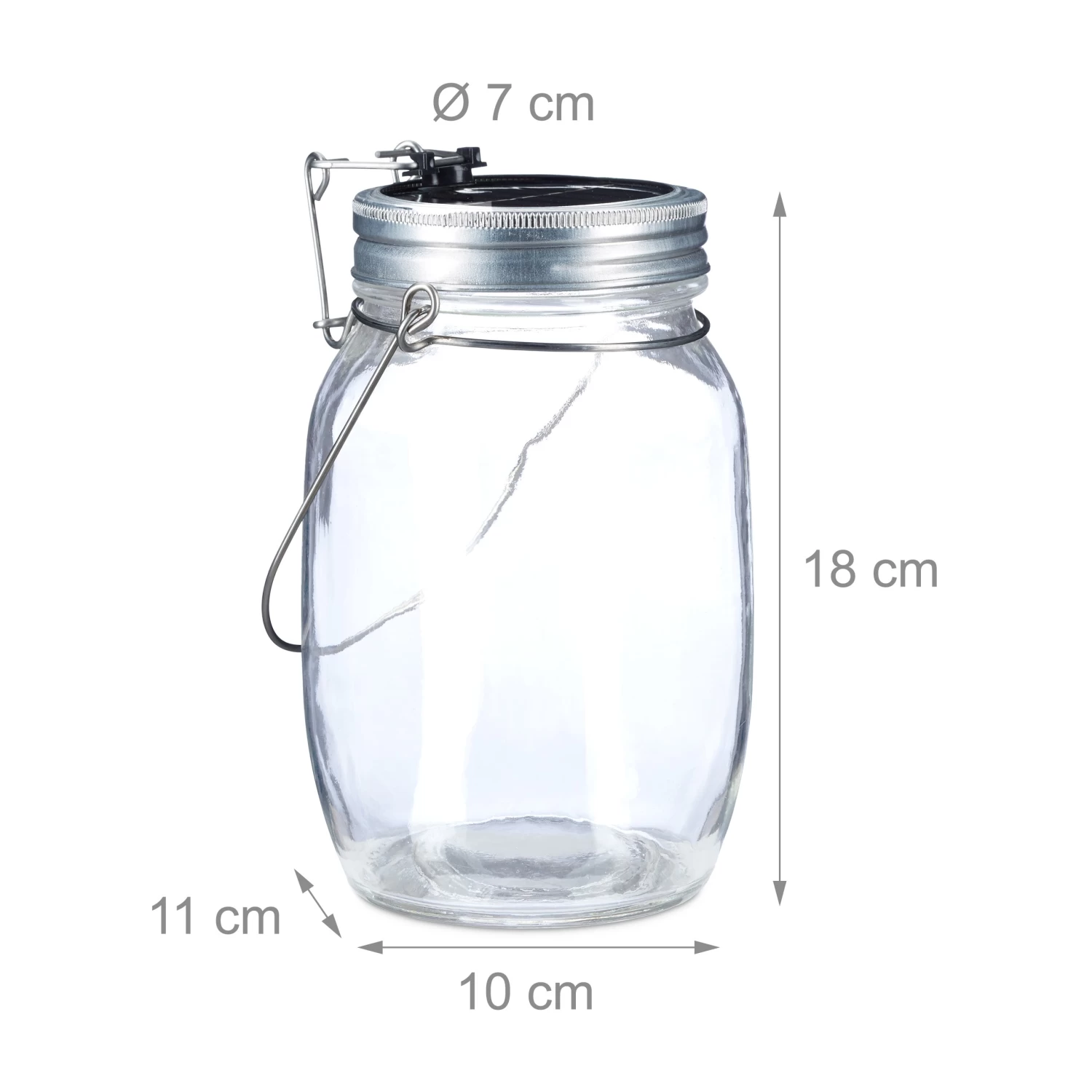 Während des Tages laden sich die Solarzellen im Deckel auf, speichern die Sonnenenergie und geben sie am Abend wieder ab. Bis der Akku vollständig geladen ist, dauert es je nach Intensität der Sonneneinstrahlung 8 bis 10 h. Bei direkter Sonneneinstrahlung im Sommer verkürzt sich die Ladezeit auf etwa 5 h. Vollständig aufgeladen spendet die Lampe etwa 5-6 h Licht. Dank stabilem, wetterfestem Glas und wasserdichtem Schraubverschluss ist die Solarleuchte auch für den Outdoor-Bereich geeignet.