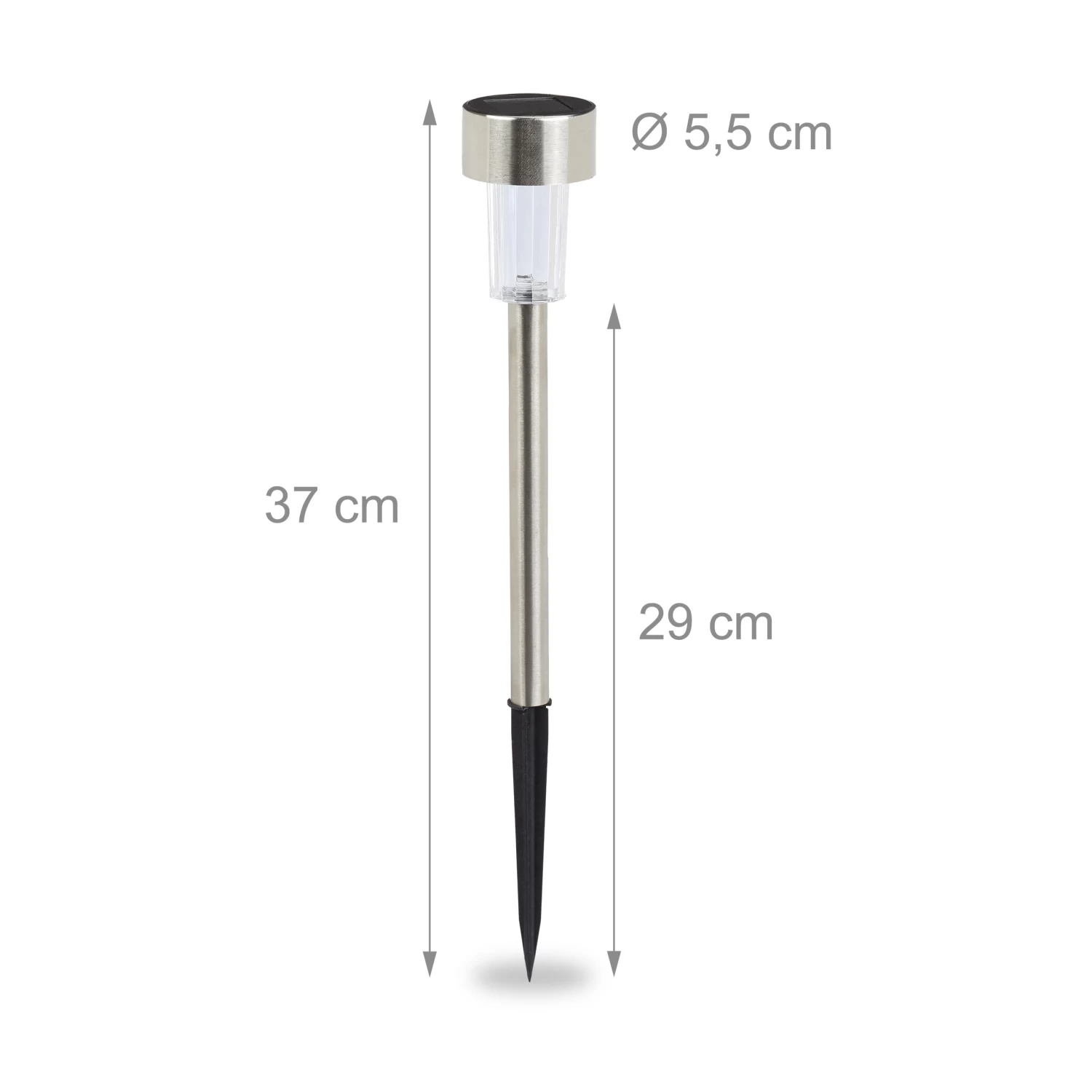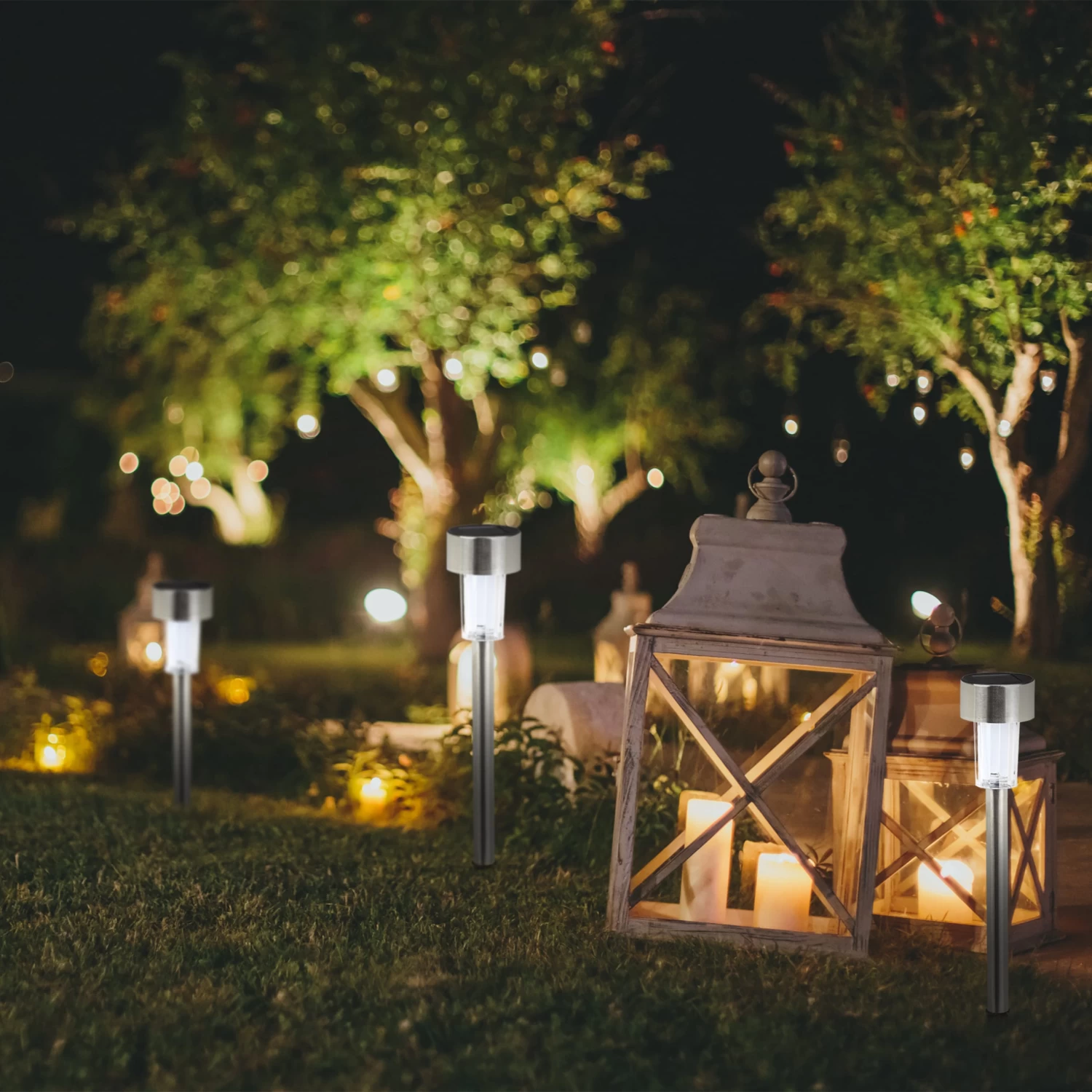 Bringen Sie stimmungsvolle Beleuchtung in Ihren Garten mit den Solarleuchten im 10er Set. Die LED Gartenlampen lassen sich mithilfe der beiliegenden Erdspieße ganz einfach in den Boden stecken. Platzieren Sie die Gartenweg Beleuchtung dort, wo Sie tagsüber ausreichend Sonnenlicht erhalten. Somit können sich die LED Leuchten innerhalb von 6 Stunden voll aufladen, um anschließend ebenso lange zu leuchten. Die stilvoll leuchtenden Gartenlichter sind vor allem in der Dunkelheit ein absolutes Highlight. Nutzen Sie die wetterfesten LED Gartenleuchten zu verschiedenen Anlässen, wie Hochzeiten oder Grillpartys, um für die richtige Stimmung zu sorgen oder als dekorative Kennzeichnung von Gehwegen.