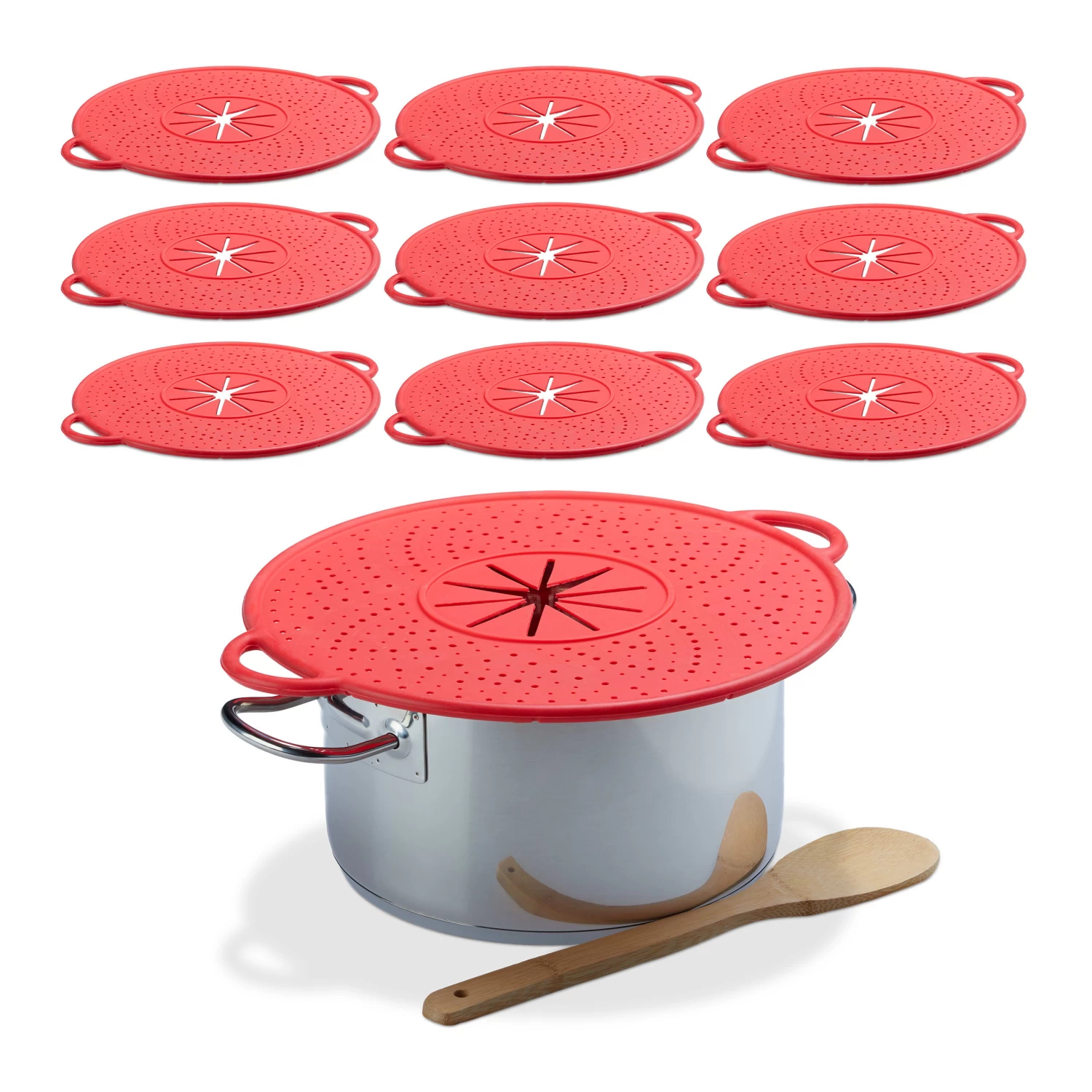 Wenn Sie keine Freude an klappernden Topfdeckeln und überkochenden Speisen auf Ihren Herdplatten haben, ist der Überkochschutz der passende Küchenhelfer für Sie. Durch die Löcher können Dampf und heiße Luft problemlos entweichen. Auch der Griff zu Mixer und Rührschüssel endet dank des vielseitigen Silikondeckels nicht in einem klebrigen Chaos an Ihren Fliesen. Da der Überlaufschutz hitzebeständig ist, kann er auch als Backblech für Pizzen genutzt werden. Um den Überkochstopp zu reinigen, reicht es aus, ihn in die Spülmaschine zu geben.