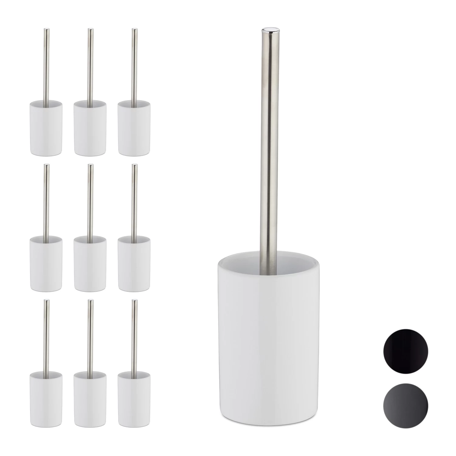 Im Gegensatz zu montierten WC-Bürstenhaltern können Sie die freistehende Bürstengarnitur flexibel im Badezimmer oder Gäste-WC positionieren. Die matte Oberfläche des Bürstengriffs harmoniert bestens mit der glänzenden Optik des Keramikhalters. Diese sehenswerte Kombination bleibt auch erhalten, wenn sich der Toilettenbürstenkopf abgenutzt haben sollte. Tauschen Sie den Bürstenkopf aus Kunststoff einfach gegen einen frischen aus. Der Behälter lässt sich unkompliziert reinigen: Einfach ausspülen und mit einem nassen Lappen auswischen.