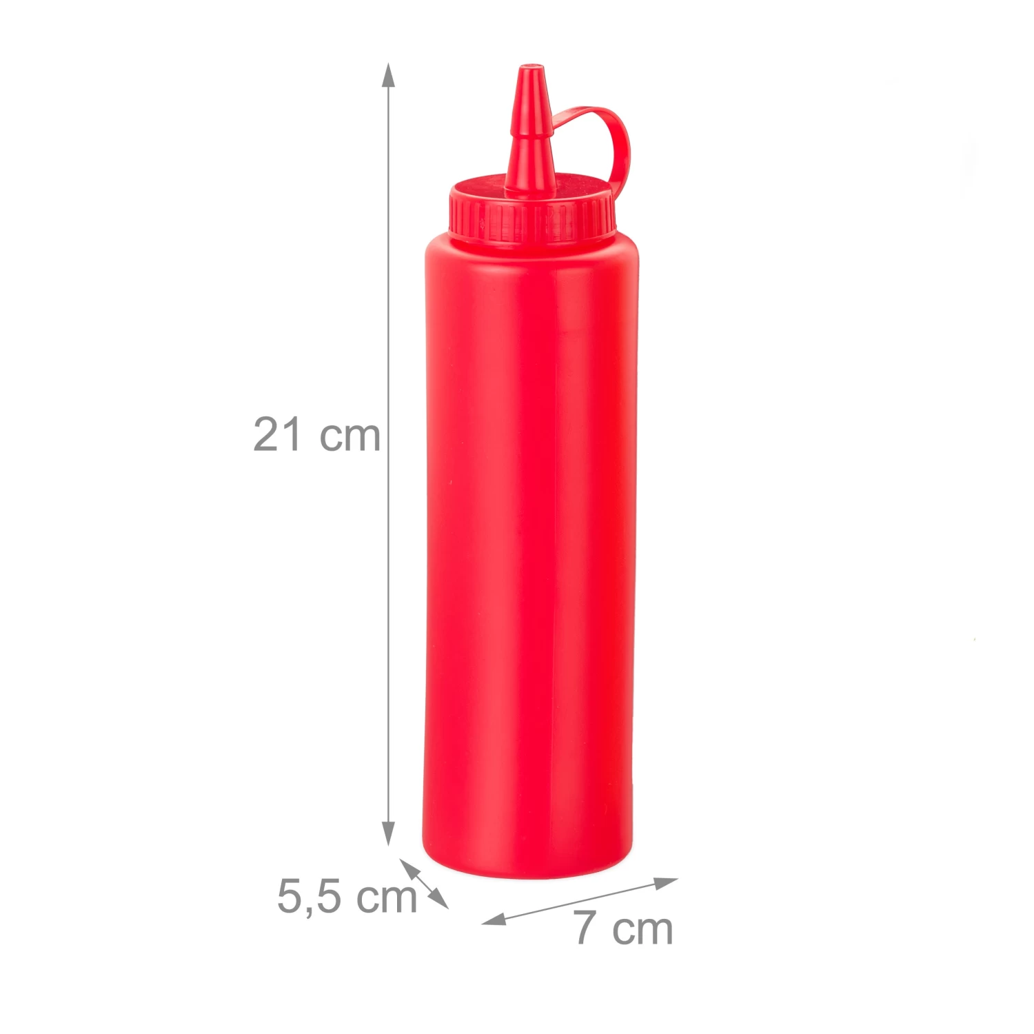 Holen Sie sich die authentische American Diner Atmosphäre nach Hause! Die Soßenflaschen sind stilgerecht in den Farben Rot, Gelb und Weiß gestaltet und werden mit Ketchup, Mayo, Senf oder anderen Saucen befüllt. Die Drückflaschen eignen sich perfekt für Picknicks und Ausflüge, um nicht die schweren Originalflaschen mitschleppen zu müssen. Auch auf Grillabenden oder Kindergeburtstagen sind die Ketchupflaschen ein toller Hingucker. Zur genauen Dosierung wird die Senftube leicht zusammengedrückt.