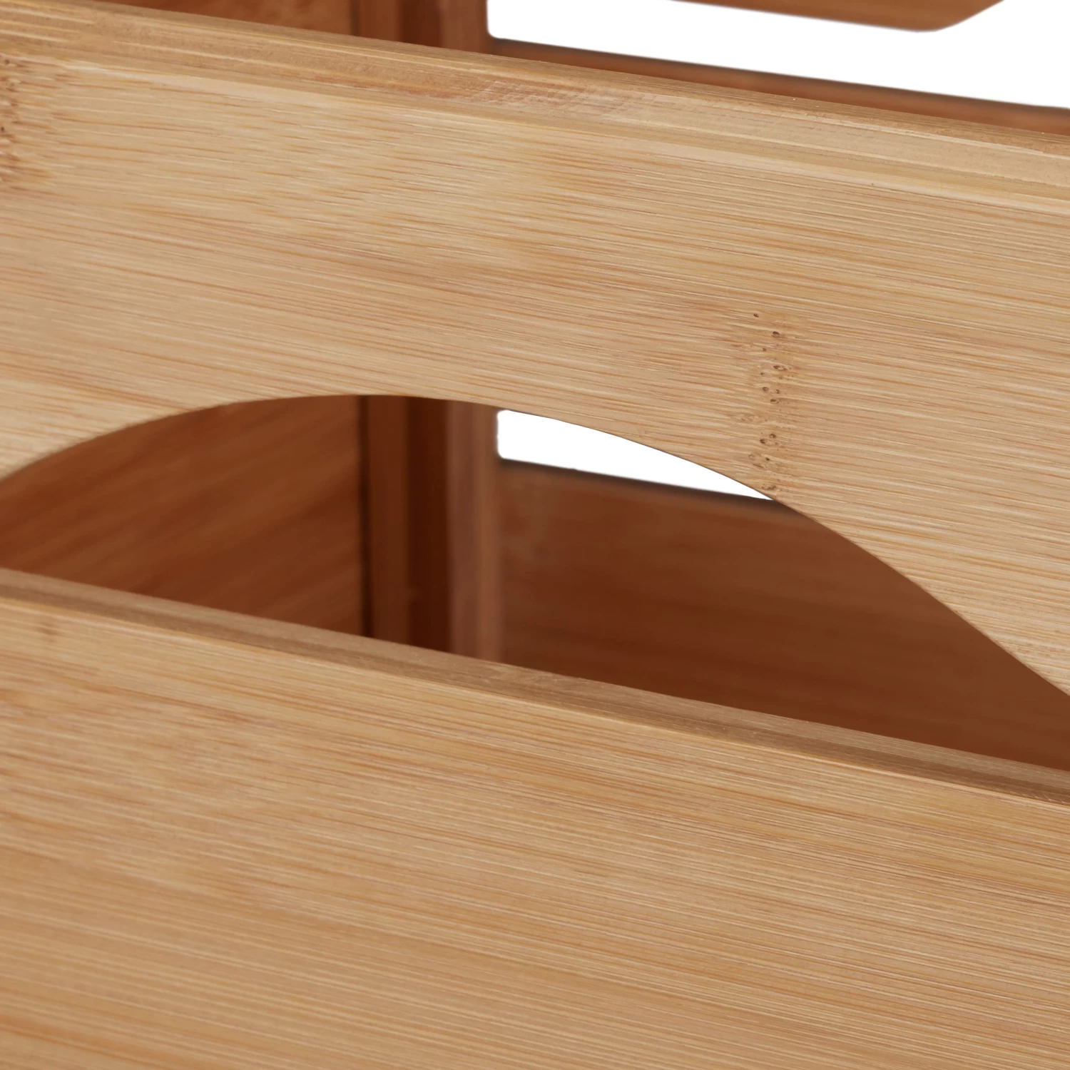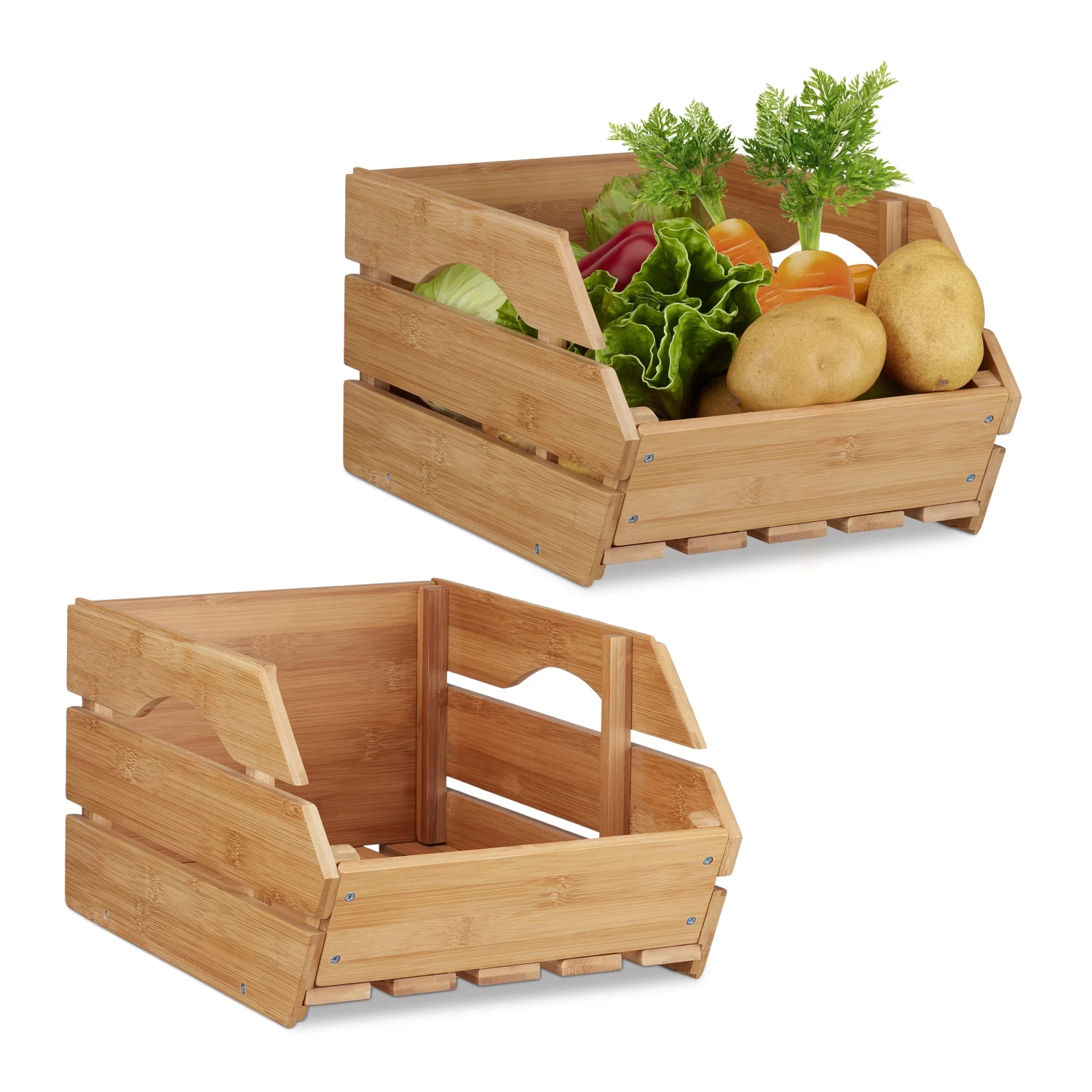 Die Universal Stapelkiste ist sehr stabil. Ihr natürliches Design verleiht ihr das verwendete Material. Bambus ist feuchtigkeitsresistent, robust und besonders nachhaltig. Mit der Stapelbox schaffen Sie schnell neuen Stauraum in Küche oder Werkstatt. Die Holzbox ist so designt, dass Sie sich blitzschnell einen Überblick über die abgelegten Gegenstände verschaffen können. Die halbrunden Haltegriff-Öffnungen bieten sich zum Tragen an. Nutzen Sie die Aufbewahrungsbox für Kartoffeln, Obst oder für Spielzeug.