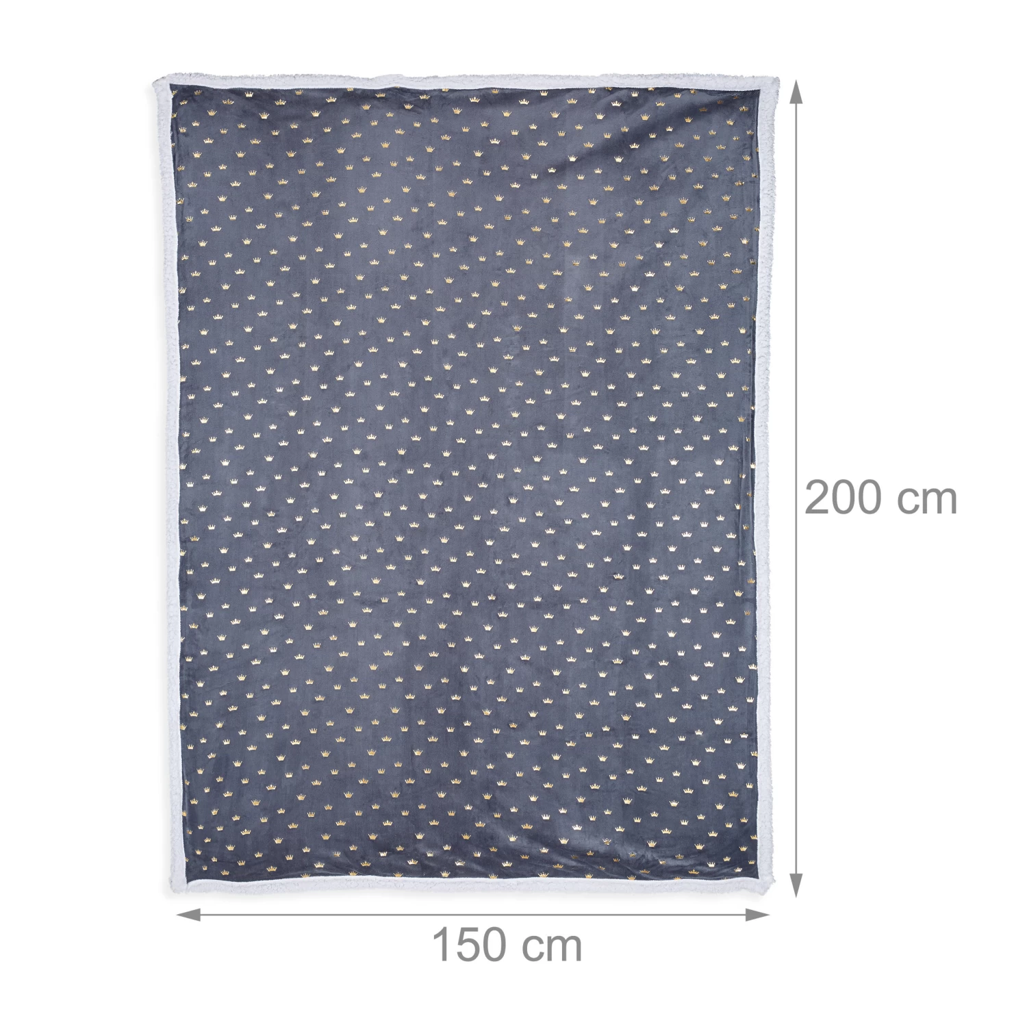 Was gibt es in der kalten Jahreszeit Besseres, als sich nach einem langen Arbeitstag mit einer Tasse Tee oder einer heißen Schokolade auf der Couch einzukuscheln? Die flauschige Wohndecke in Grau mit dekorativen goldenen Prints ist da genau das richtige Accessoire. Mit ihrer Unterseite in weißer Lammfelloptik spendet sie angenehme Wärme und sorgt für behagliche Gemütlichkeit. Auch für laue Sommerabende auf der Terrasse oder gemeinsame Abende unter dem Sternenhimmel ist die Flauschdecke ideal.