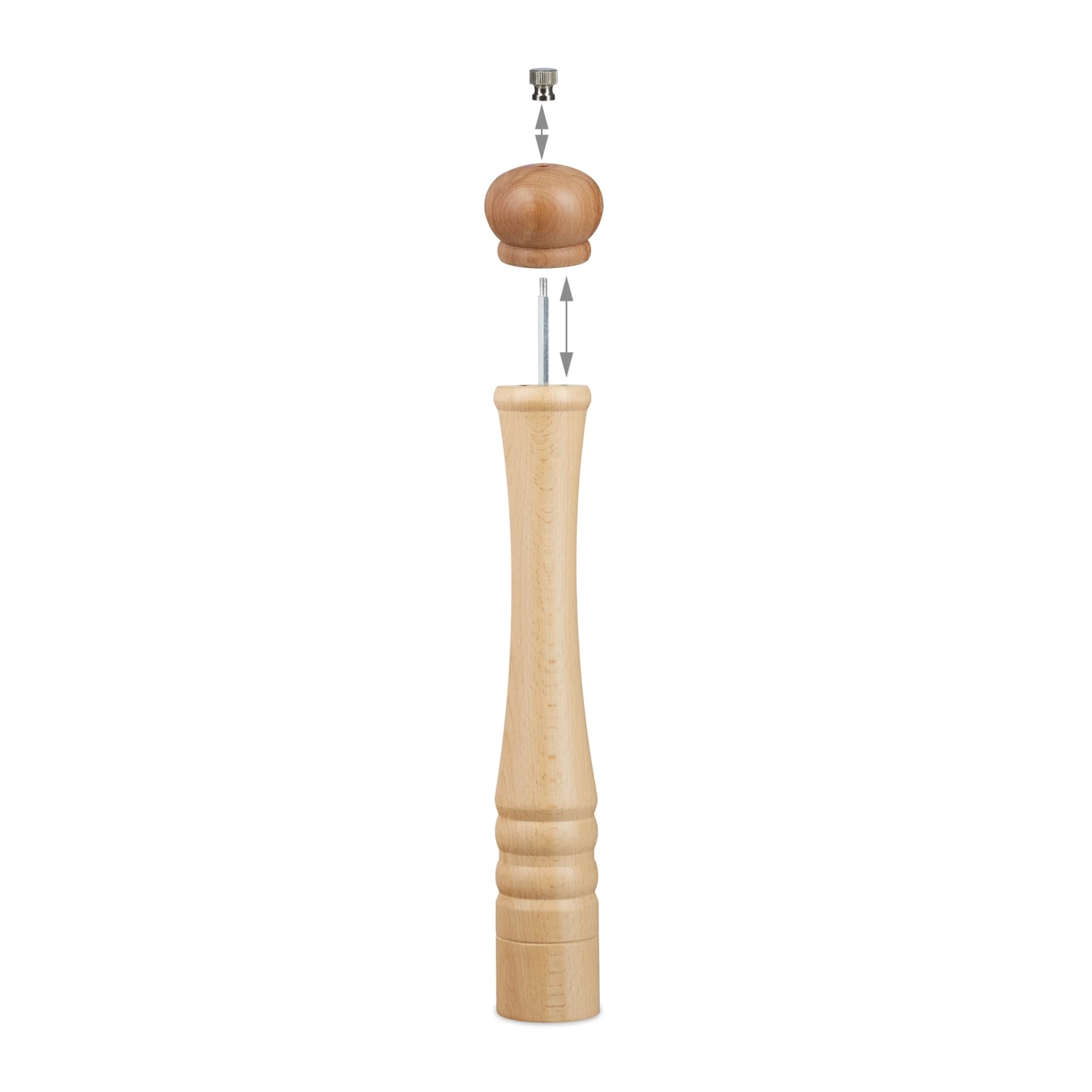 Diese Pfeffermühle ist aus echtem Birkenholz gefertigt und macht einen hochwertigen Eindruck. Ihr klassisches Holzdesign fügt sich schnell in jede Küche ein. Über das verstellbare und robuste Mahlwerk aus Keramik können alle Speisen im Handumdrehen verfeinert und abgeschmeckt werden. Durch die praktische Größe von ca. 40 cm liegt die Pfeffermühle sehr gut in der Hand und macht das Kochen zu einem echten Erlebnis. Neben den Klassikern Salz und Pfeffer bietet die Mühle Platz für Gewürze wie Meersalz, Chili oder getrocknete Gewürze.