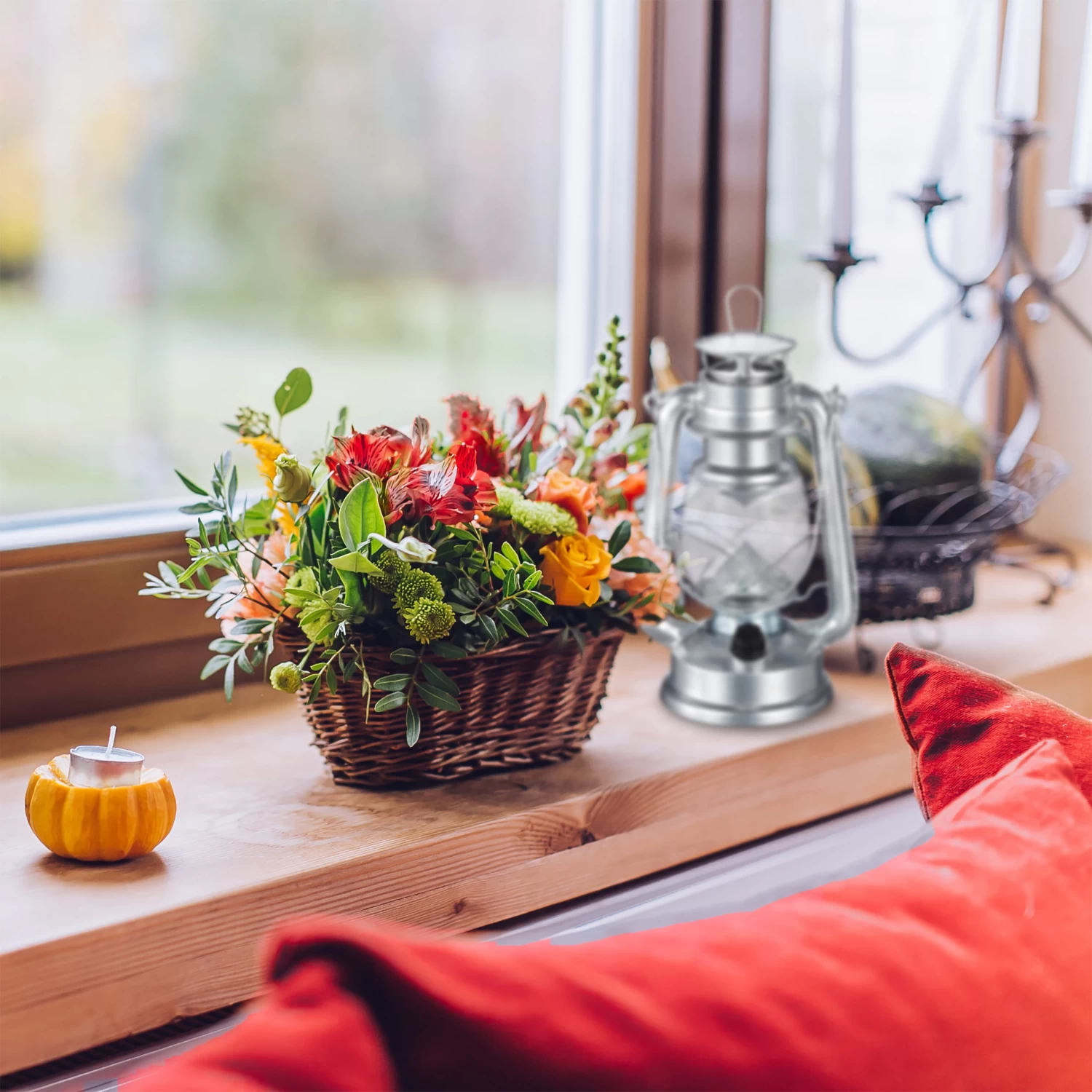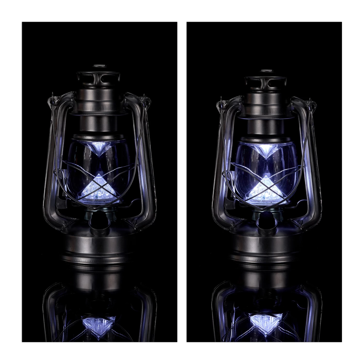 Diese schöne, detailgenaue Sturmlaterne zaubert ein gemütliches Ambiente auf Fenstersims und Terrasse oder spendet nützliches Licht auf der nächsten Campingreise. Im stilechten Öllampen-Design mit Glaskolben, Tragegriff und Rauchabzug wirkt die LED-Petroleumlampe nostalgisch und dekorativ. Dank Batteriebetrieb können Sie die Laterne einfach am Rädchen anstellen und dimmen und müssen nicht mit echtem Öl hantieren.