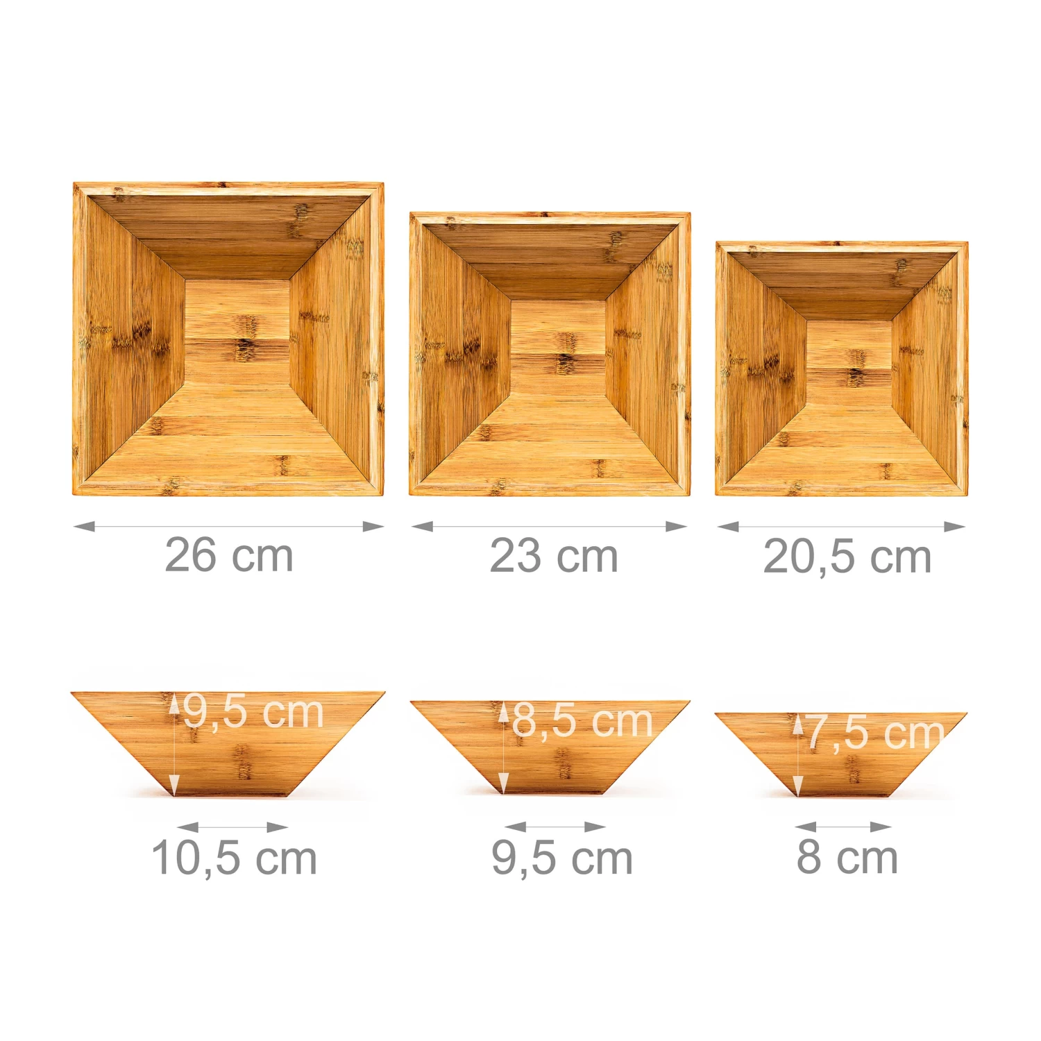 Liegen Deine Schlüssel auf einer Kommode und zerkratzen diese mit ihren scharfzackigen Kanten? Möchtest Du Deinem Besuch ein paar Süßigkeiten anbieten und weißt nicht, wie Du diese am besten präsentierst? Und hat Dein Obst in der Küche noch nicht den richtigen Platz gefunden? Alle diese Probleme können mit diesem dreiteiligen Dekoschalen Set schon bald Schnee von gestern sein. Das Bambus Set besteht aus drei Schalen in verschiedenen Größen. Dabei eignet sich jede Größe für die unterschiedlichsten Dinge. Von Snacks über Schmuck und Knabberzeug bis hin zu Deko – in den Bambusschalen ist alles gut aufgehoben. Je nach Belieben kannst Du auch alle drei Schalen zu einer zusammenfassen. Das sieht nicht nur modern aus, sondern spart auch Platz.
