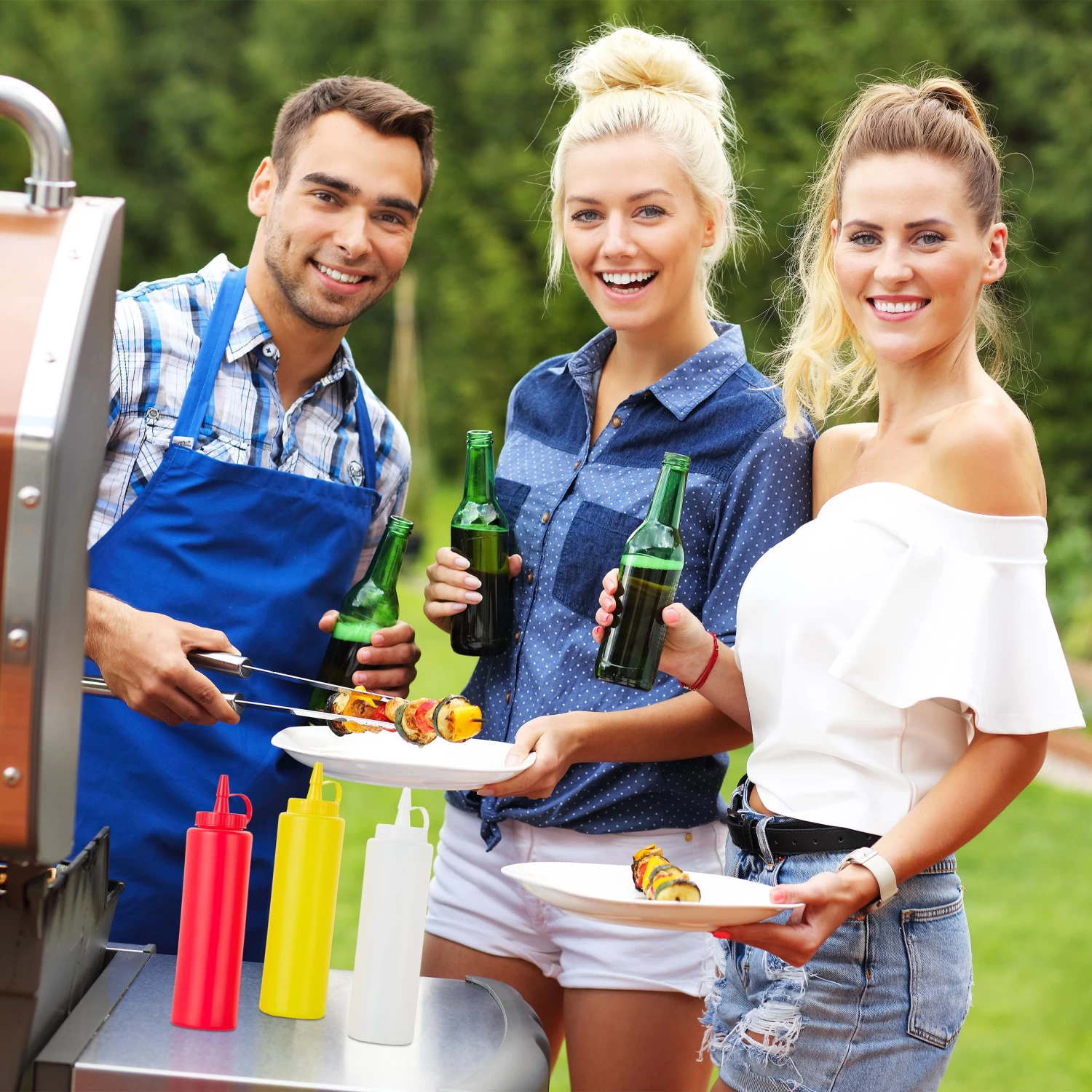 Holen Sie sich die authentische American Diner Atmosphäre nach Hause! Die Soßenflaschen sind stilgerecht in den Farben Rot, Gelb und Weiß gestaltet und werden mit Ketchup, Mayo, Senf oder anderen Saucen befüllt. Die Drückflaschen eignen sich perfekt für Picknicks und Ausflüge, um nicht die schweren Originalflaschen mitschleppen zu müssen. Auch auf Grillabenden oder Kindergeburtstagen sind die Ketchupflaschen ein toller Hingucker. Zur genauen Dosierung wird die Senftube leicht zusammengedrückt.