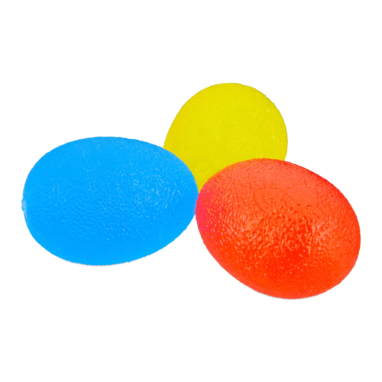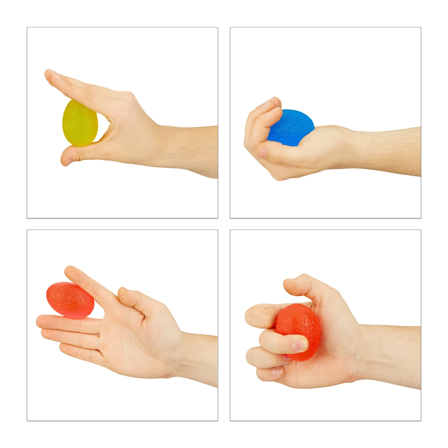 Mit den eiförmigen Griffbällen im 3er Set trainieren Sie gezielt Finger, Handgelenke und Unterarme. Die Handtrainer haben unterschiedliche Härtegrade, sodass Sie variieren können. Wenn Stress, Frust oder Wut Ihr Gemüt verfinstern, lassen Sie es die Quetschbälle spüren! Die Knautscheier sind auch nicht nachtragend, denn sie nehmen immer wieder ihre ursprüngliche Form an. Ob im Job, daheim oder unterwegs, dank des Beutels ist es kein Problem, die Fingertrainer überallhin mitzunehmen.
