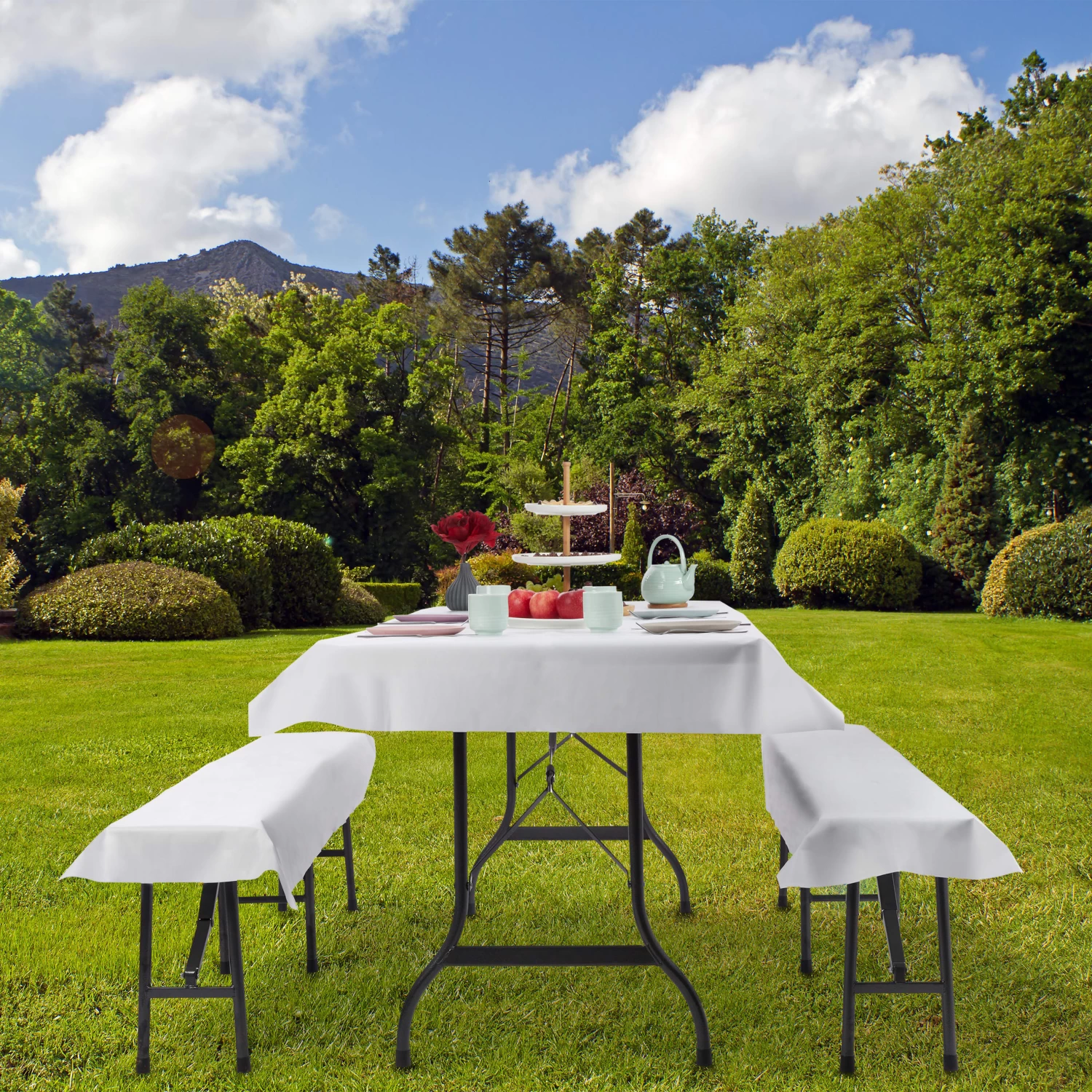 Für eine ausgelassene Gartenparty ist das 3er Set Biergarnitur Auflagen unverzichtbar. Das strapazierfähige Trio bestehend aus einer Biertischauflage und 2 Bierbankschonern schützt Ihre Gartenmöbel vor Kratzern und Flecken. Zugleich passt das einfarbige Bierbankauflagen Set in jede Partydeko und wertet Ihre Bierzeltgarnitur optisch auf. Die Festzeltauflagen bestehen aus wasserabweisendem, abwaschbarem Vliesstoff und können im Gegensatz zu Papiertischdecken wiederverwendet werden.