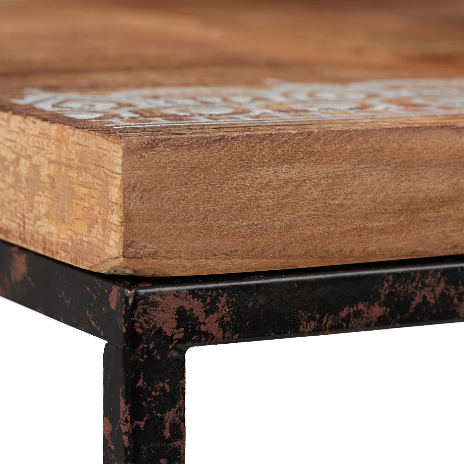 – Stylischer Stilmix aus Mangoholz und stabilem Metall