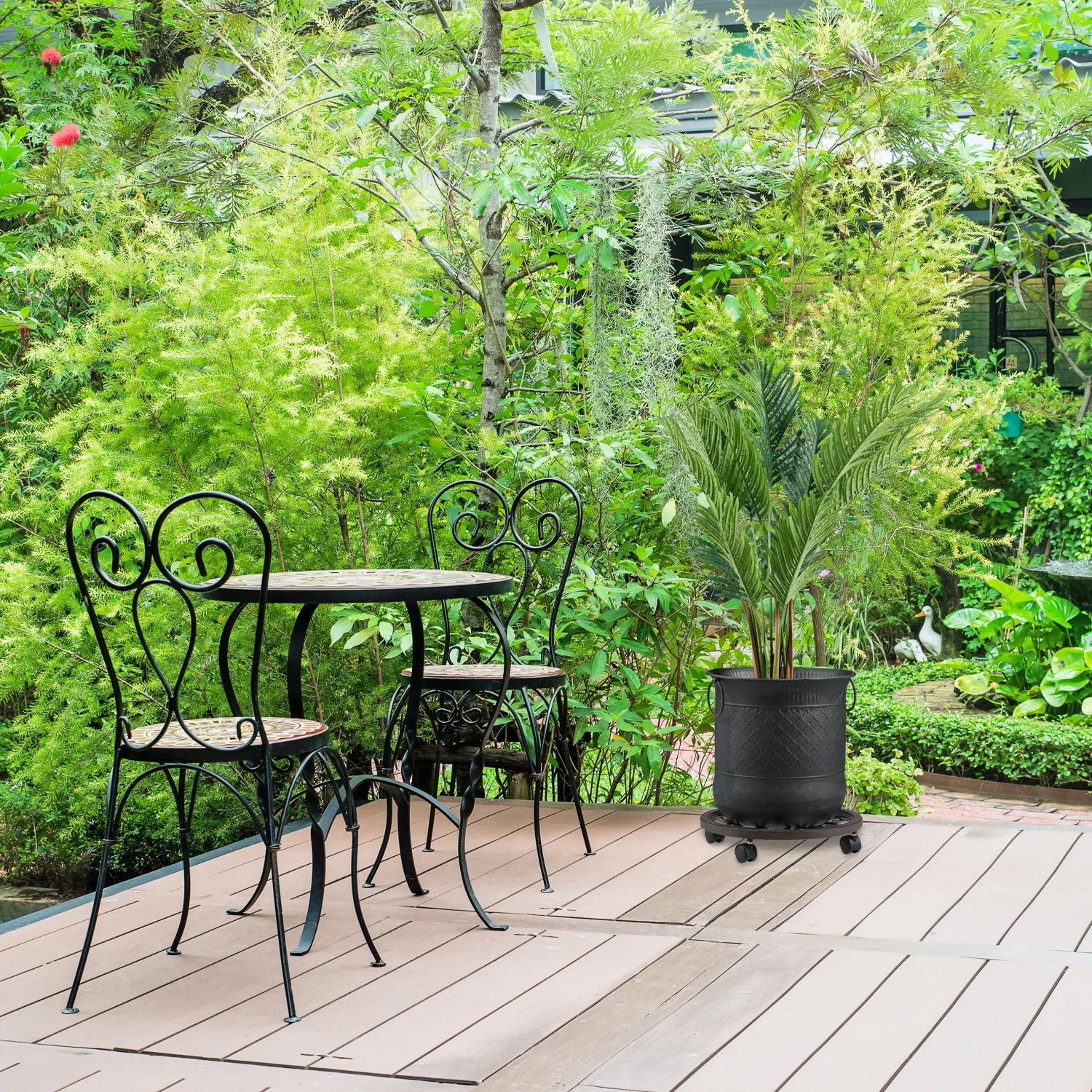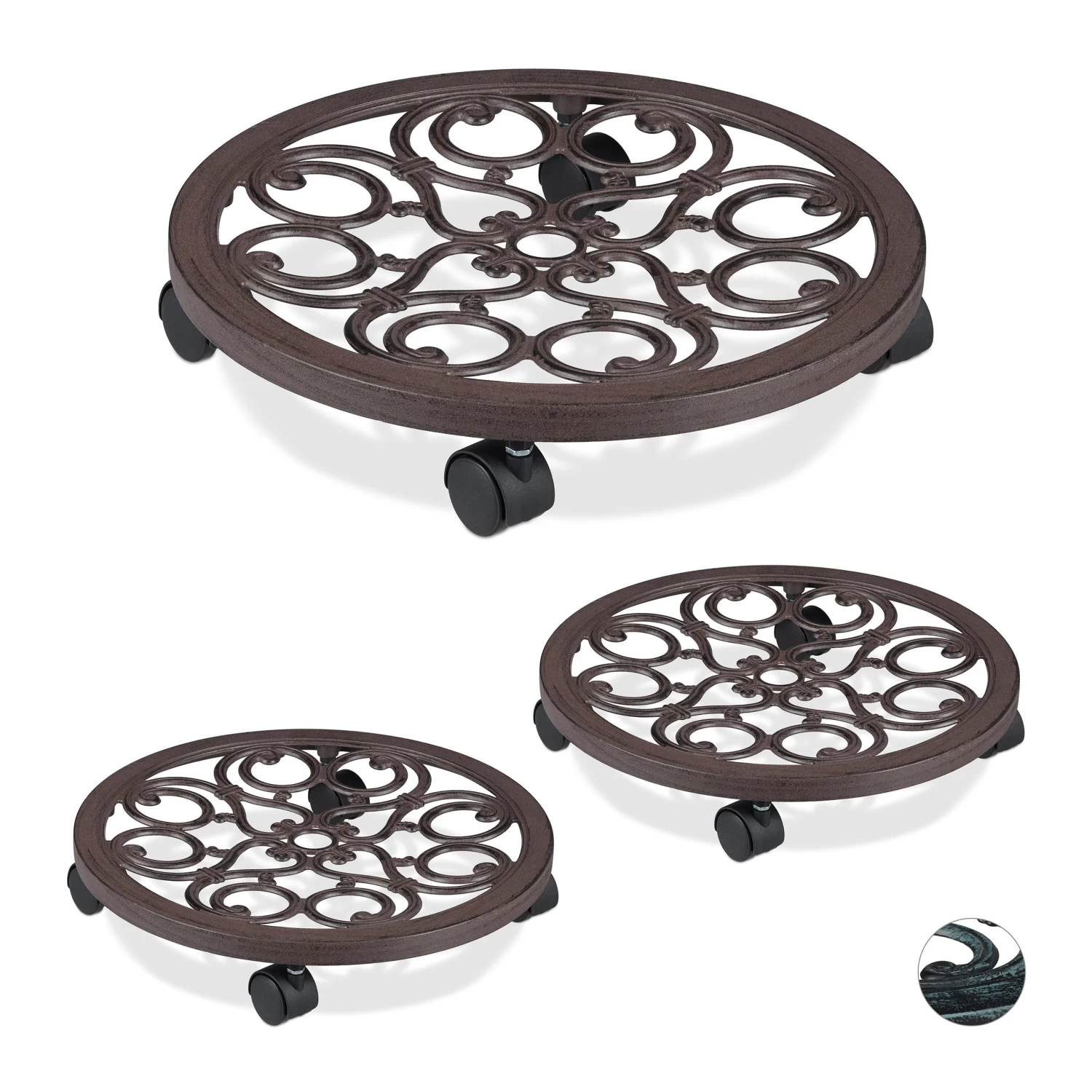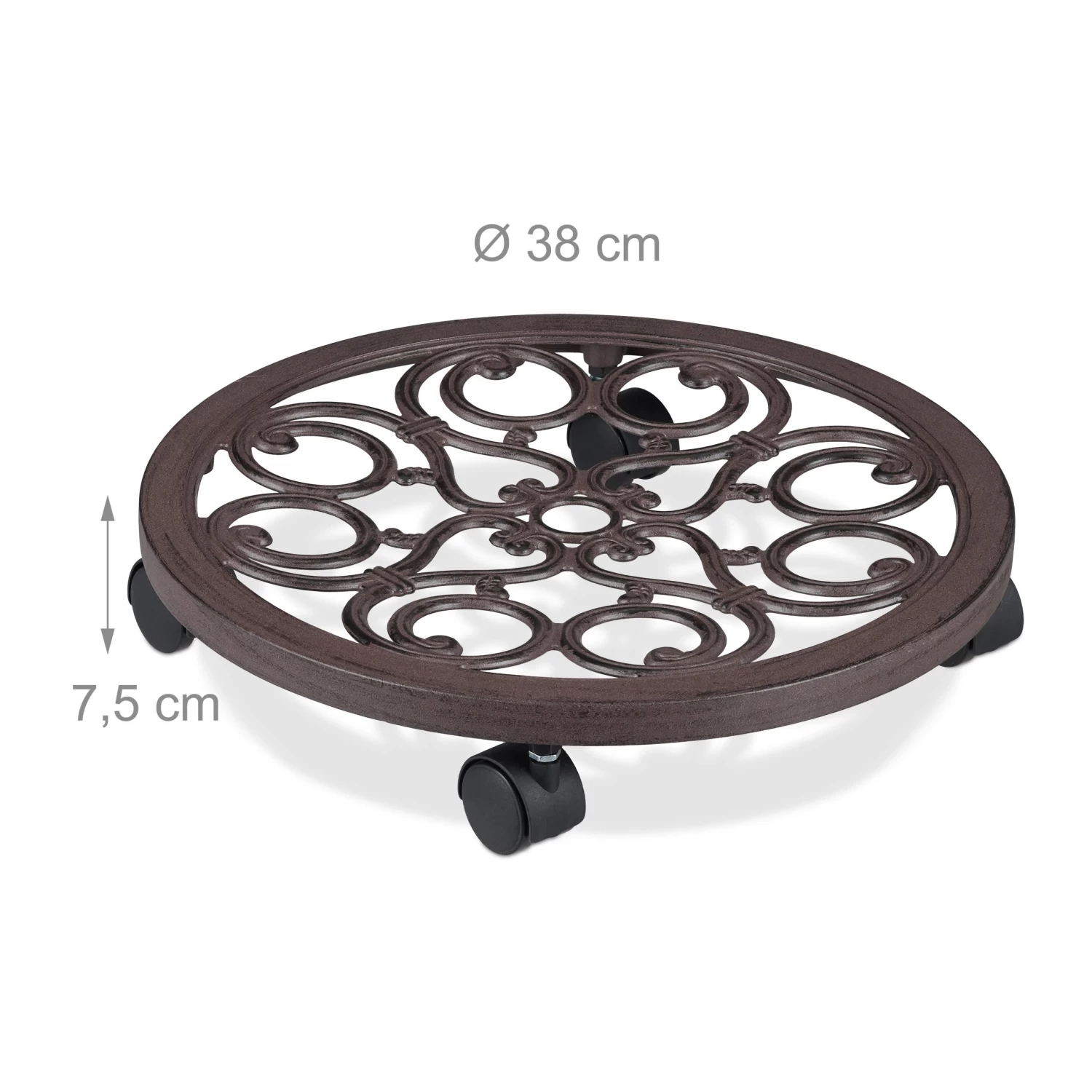 Bewegen Sie Ihre Topfpflanzen bequem mit diesem runden Pflanzen-Rolluntersetzer. Der Blumenroller besteht aus pulverbeschichtetem Aluminium und kann damit problemlos im Außenbereich genutzt werden. Aber auch im Innenbereich ist der Pflanzenuntersetzer ein echter Hingucker und passt mit seinen dekorativen Ornamenten perfekt zum Jugend- oder Landhausstil. Dank seiner 4 Rollen aus Kunststoff steht der Blumentopfroller stabil und lässt sich leicht bewegen.