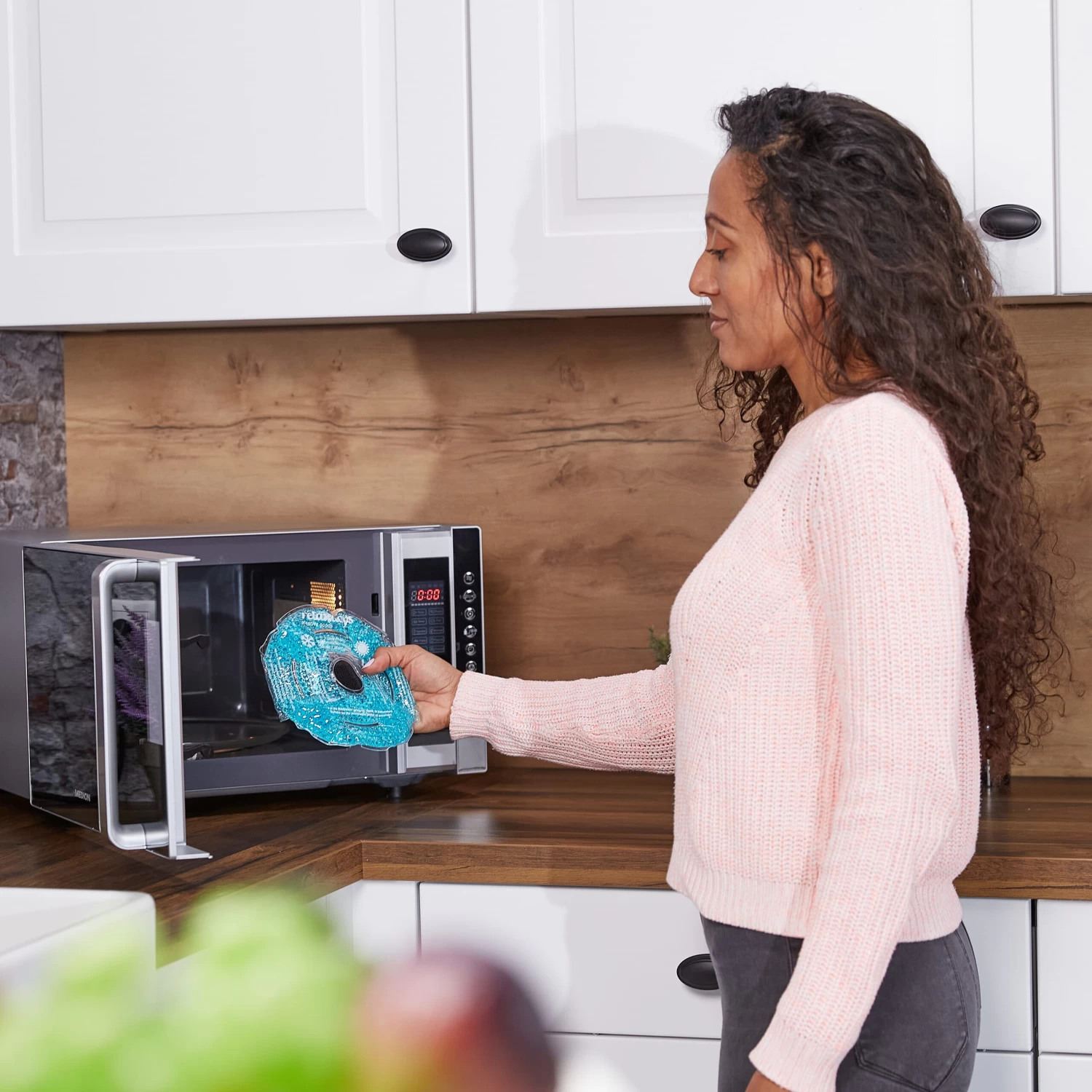 – Zur Warmanwendung: Vor Verwendung 3 Minuten im Wasserbad (max. 80 °C) oder in der Mikrowelle (800 W, 40 Sek.) erwärmen