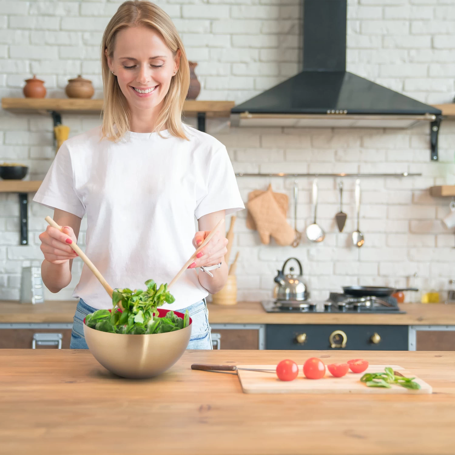 Praktische Edelstahlschale für Salate und mehr