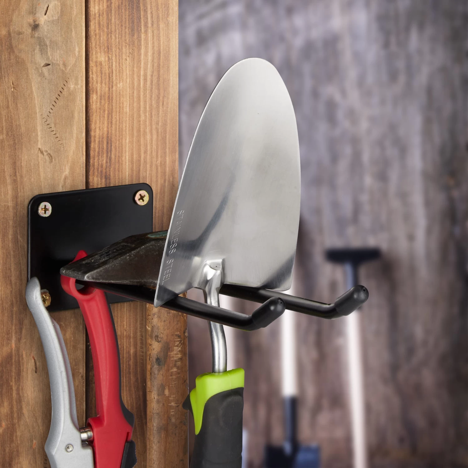 Ein verkramter Schuppen, eine zugestellte Besenkammer oder eine Garage voller Gartengeräte, die im Weg herumstehen, rufen selten Jubelstürme hervor. Mit dem Gerätehalter sorgen Sie für Ordnung und Übersichtlichkeit. Die Griffe von Spaten oder Schaufeln bzw. die Kopfteile von Rechen oder Besen liegen auf dem Doppelhaken auf. Dabei verhindern die Schutzkappen die Entstehung von Kratzern. Um den Besenhalter an die Wand zu montieren, benötigen Sie jeweils 4 Schrauben und Dübel, die in der Lieferung bereits enthalten sind.
