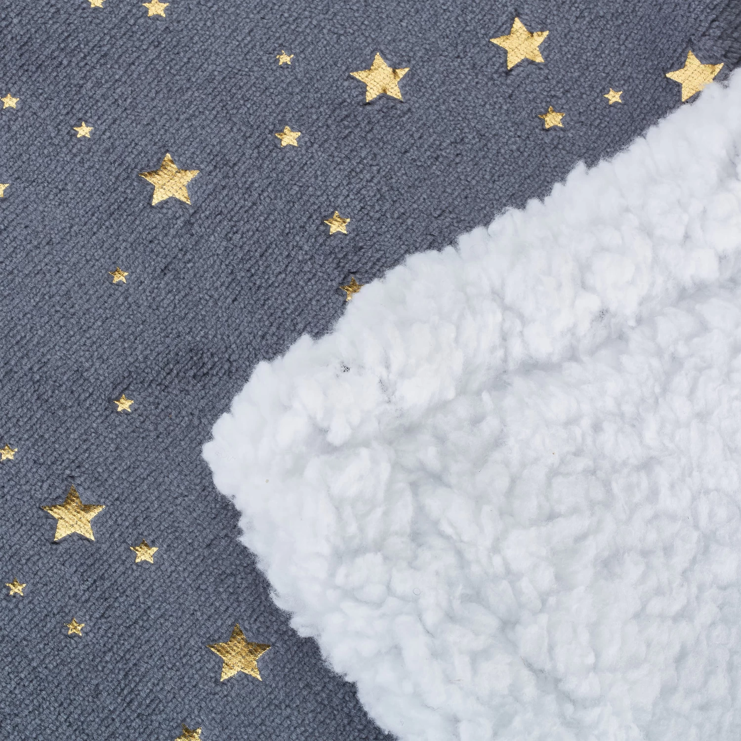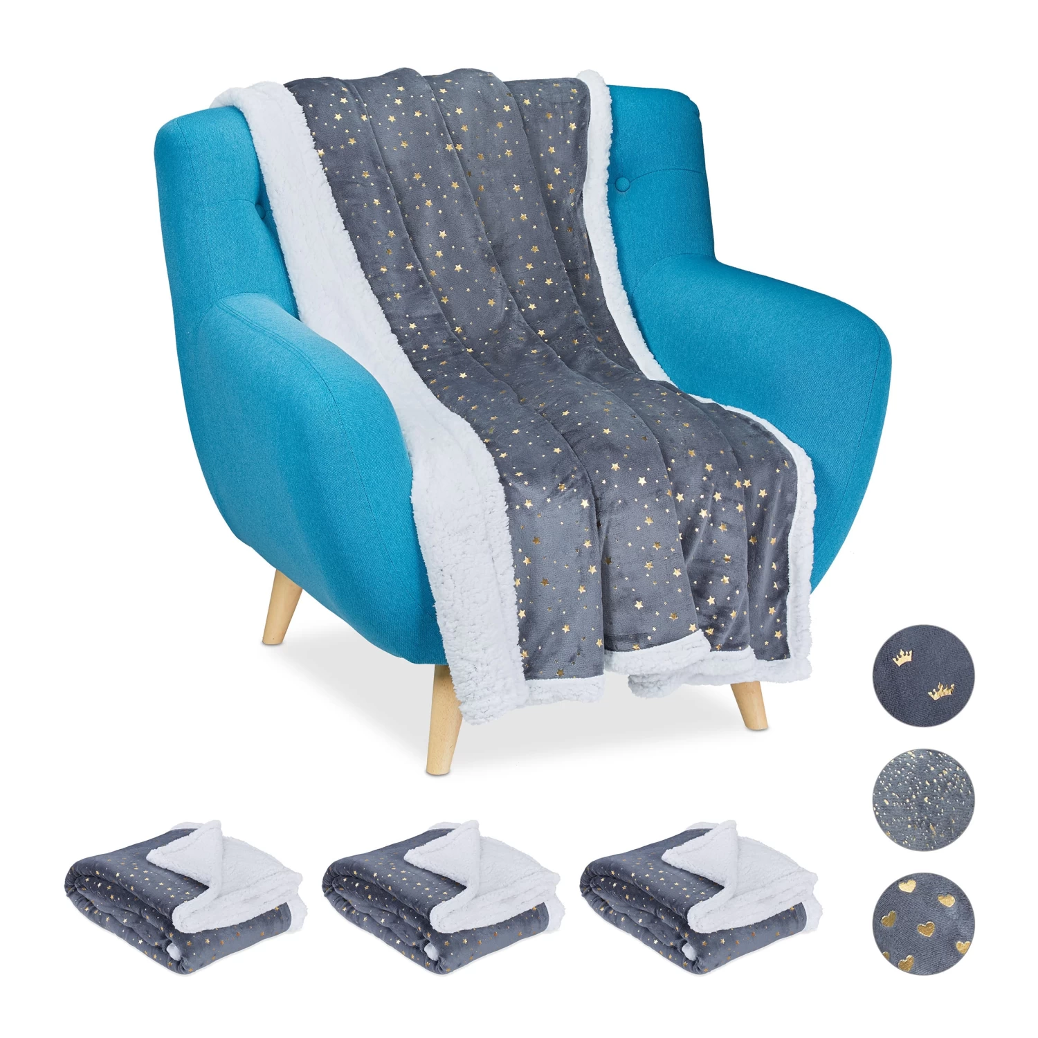 Was gibt es in der kalten Jahreszeit Besseres, als sich nach einem langen Arbeitstag mit einer Tasse Tee oder einer heißen Schokolade auf der Couch einzukuscheln? Die flauschige Wohndecke in Grau mit dekorativen goldenen Prints ist da genau das richtige Accessoire. Mit ihrer Unterseite in weißer Lammfelloptik spendet sie angenehme Wärme und sorgt für behagliche Gemütlichkeit. Auch für laue Sommerabende auf der Terrasse oder gemeinsame Abende unter dem Sternenhimmel ist die Flauschdecke ideal.