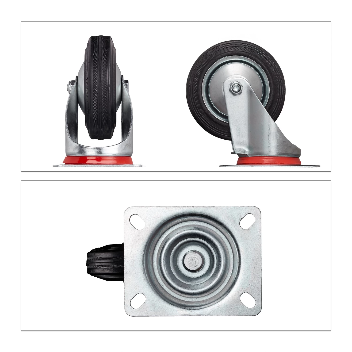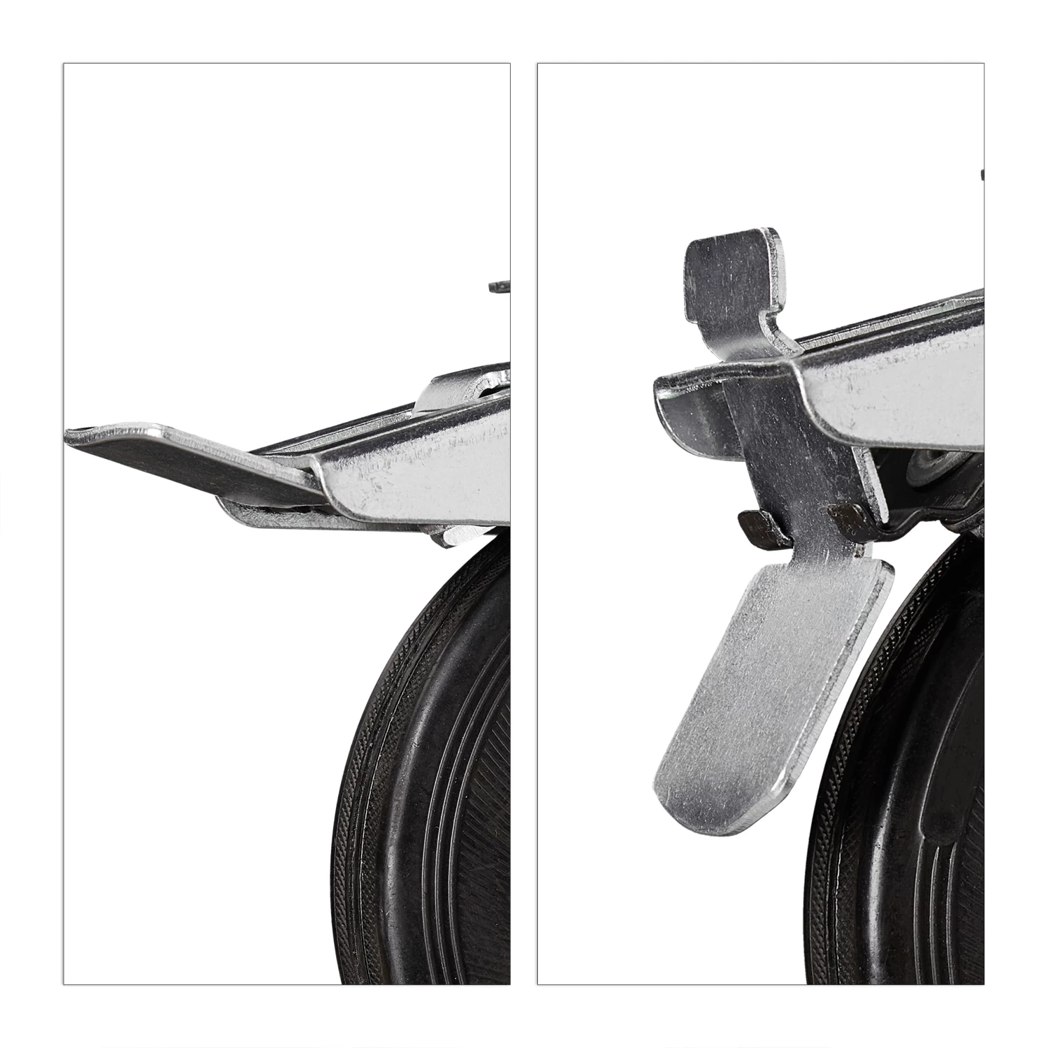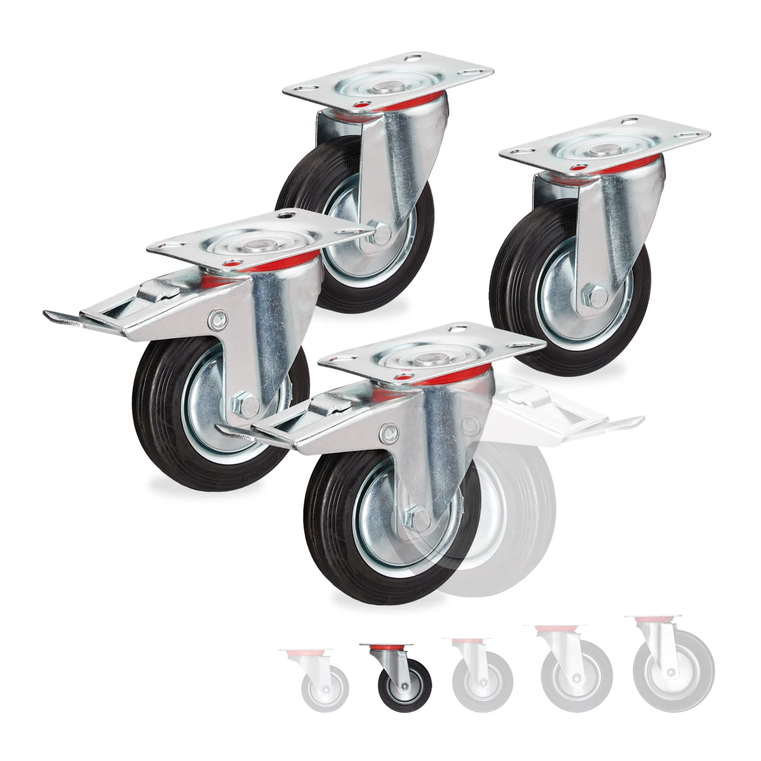 Mit diesen Rollen machen Sie Möbel, Paletten, Maschinen oder Geräte mobil. Dafür schrauben Sie die Rollfüße einfach mit der Montageplatte an den gewünschten Gegenstand an. Die lenkbaren Industrierollen sind dank Kugellager leichtgängig um 360° drehbar und punkten mit hoher Tragkraft. 2 Räder aus dem 4er Set besitzen eine Bremse. Gefertigt wurden die Geräterollen aus verzinktem Stahl und PU-Gummi.