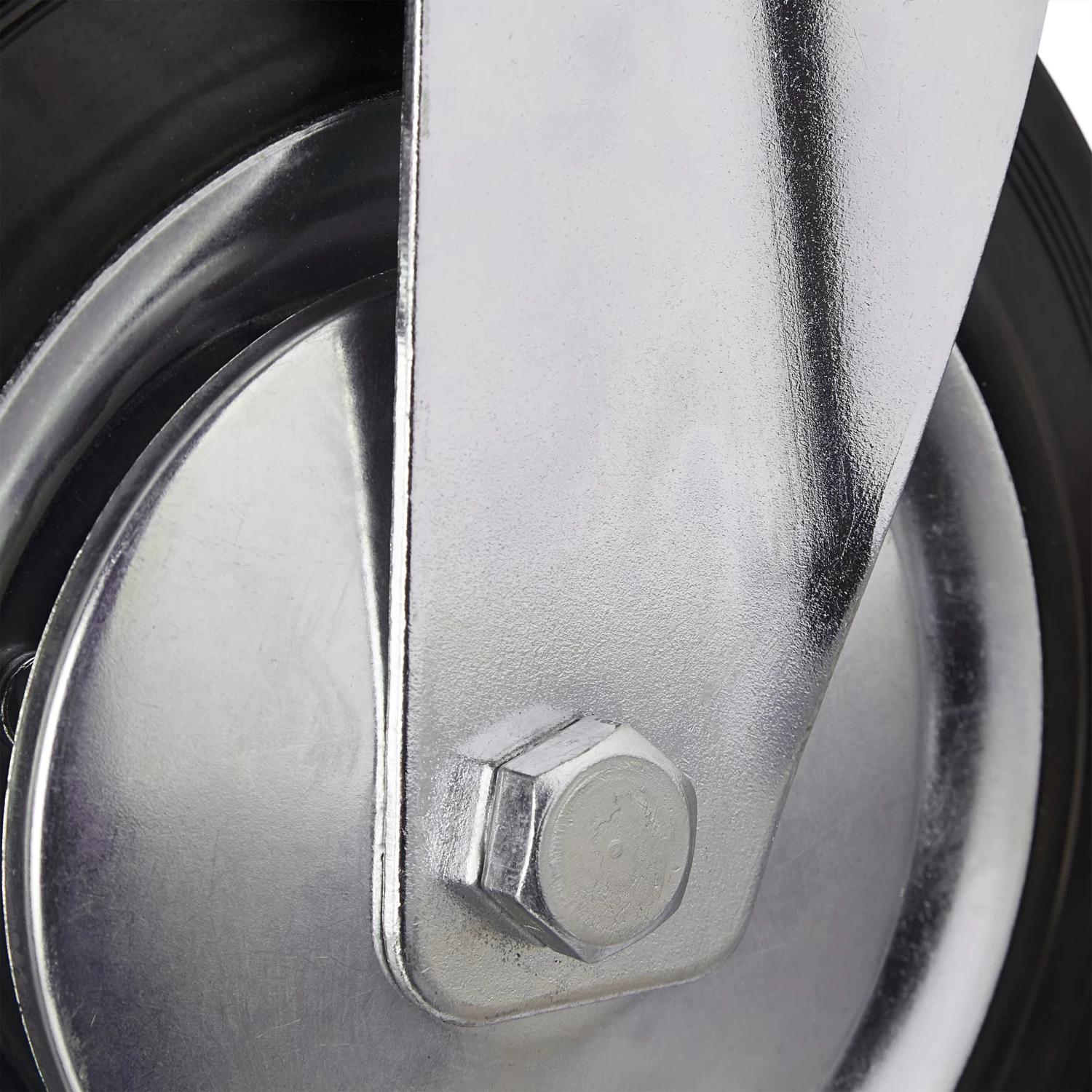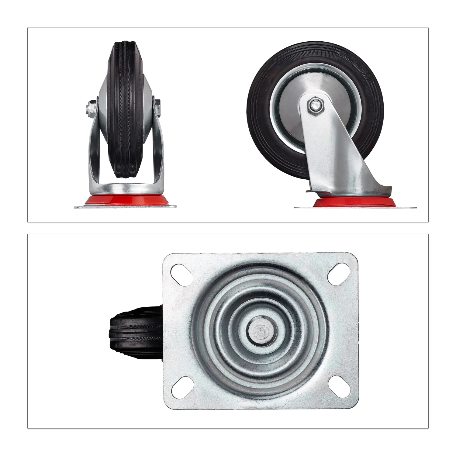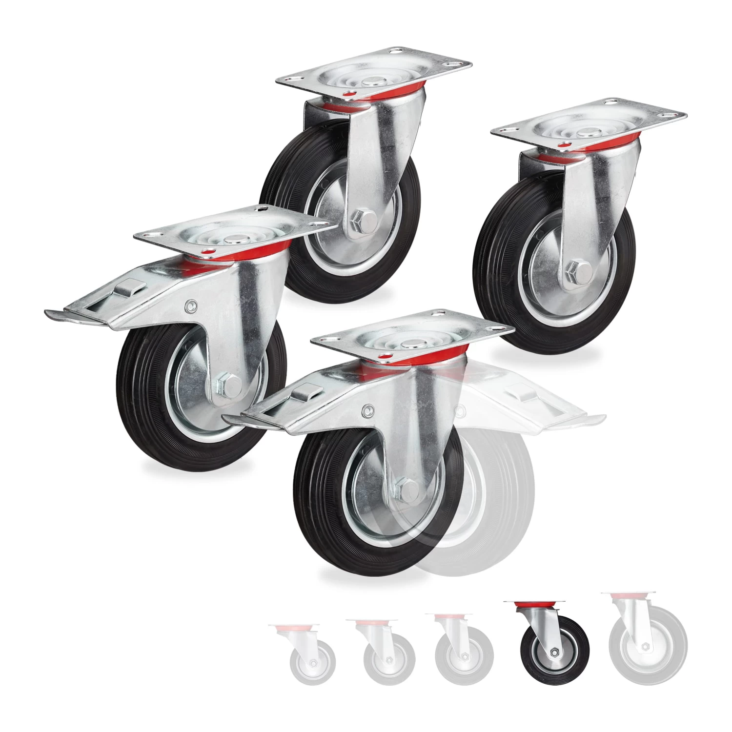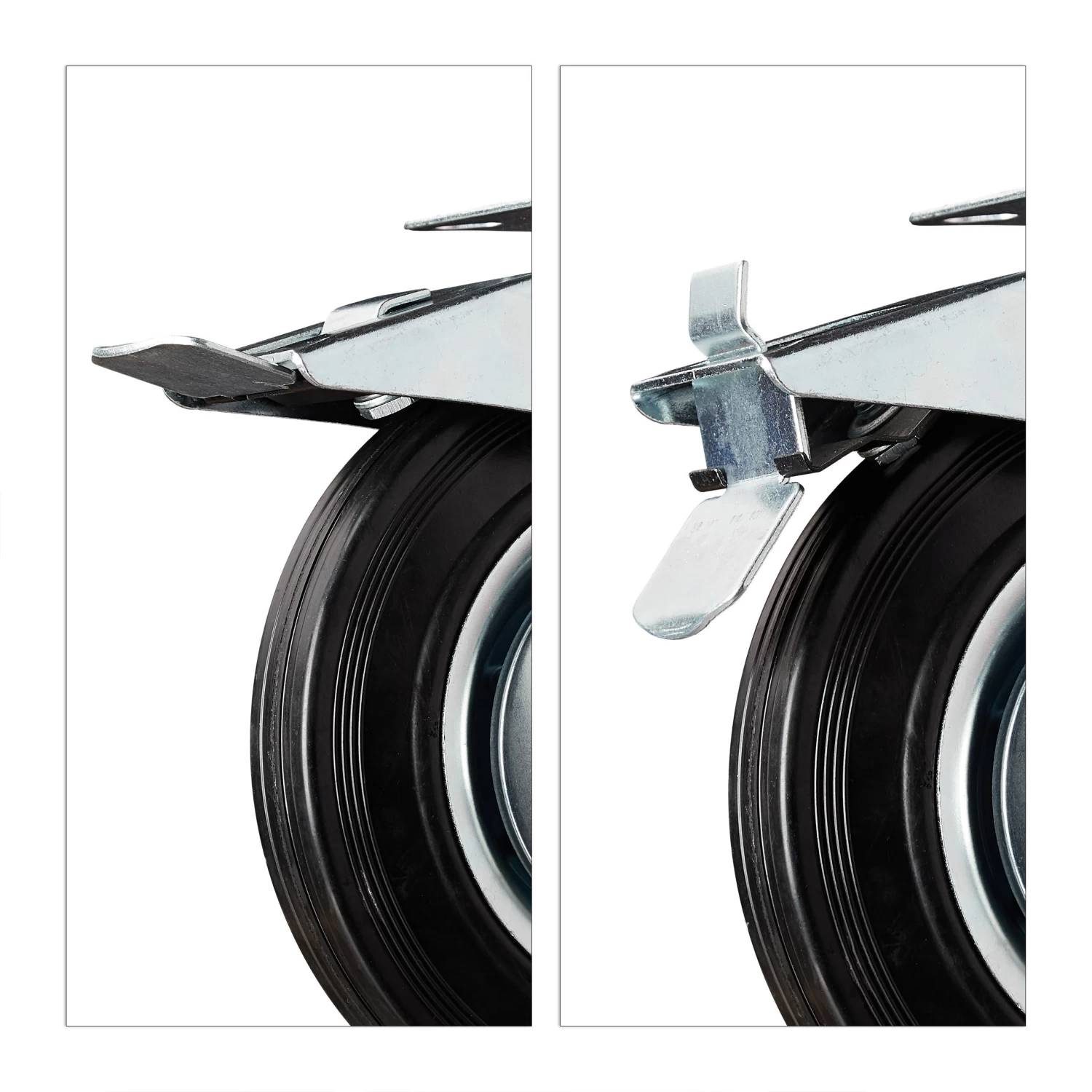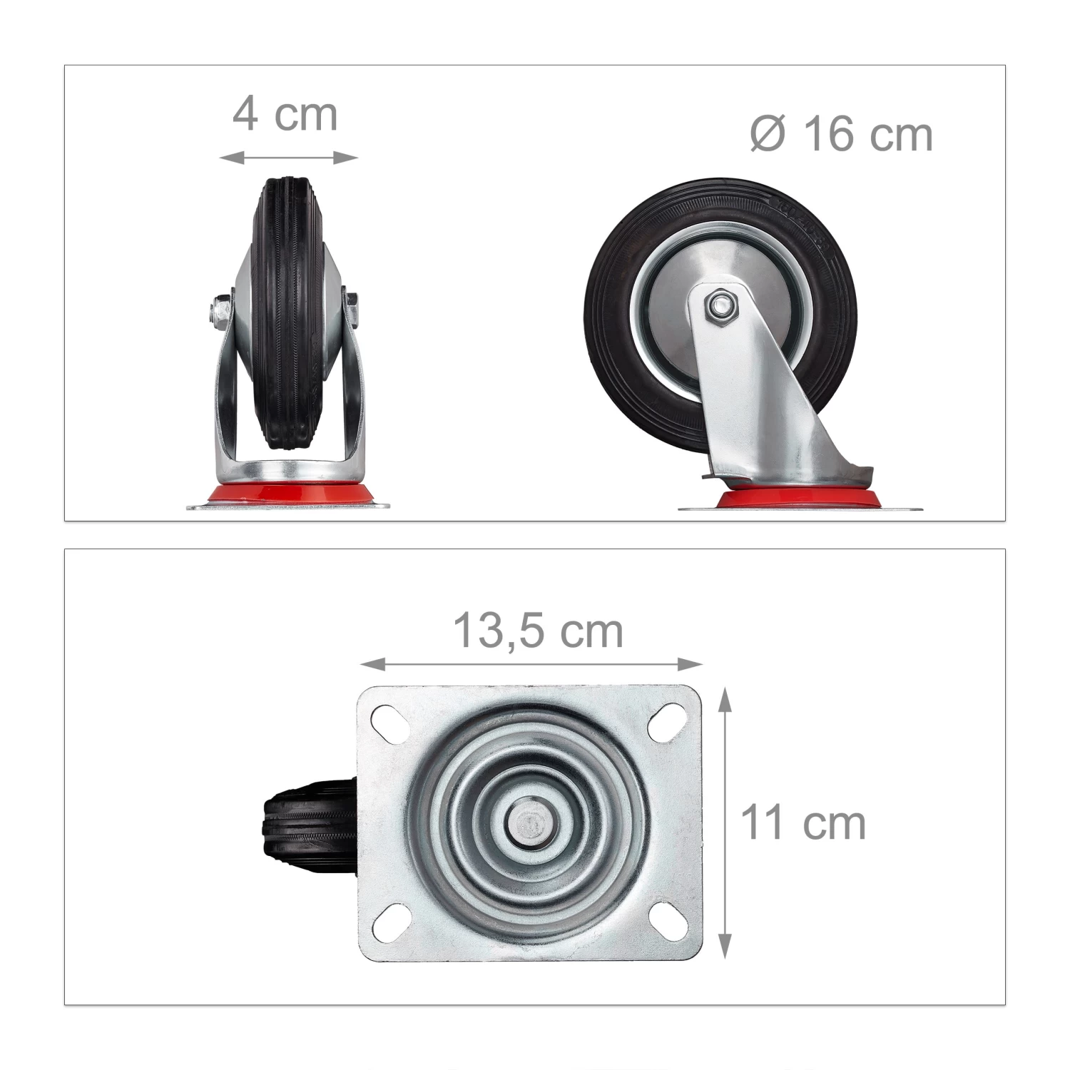 Mit diesen Rollen machen Sie Möbel, Paletten, Maschinen oder Geräte mobil. Dafür schrauben Sie die Rollfüße einfach mit der Montageplatte an den gewünschten Gegenstand an. Die lenkbaren Industrierollen sind dank Kugellager leichtgängig um 360° drehbar und punkten mit hoher Tragkraft. 2 Räder aus dem 4er Set besitzen eine Bremse. Gefertigt wurden die Geräterollen aus verzinktem Stahl und PU-Gummi.
