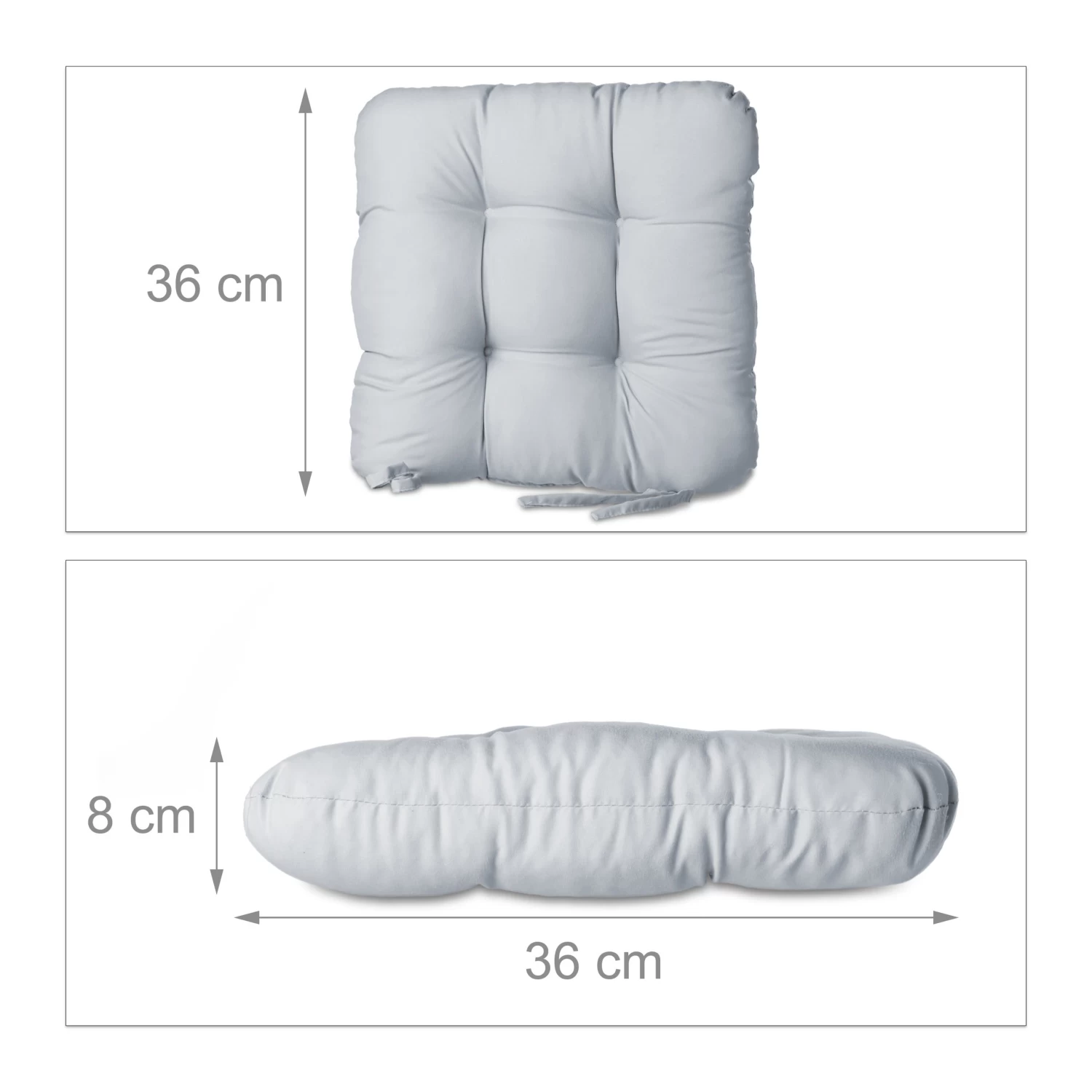 Egal ob im Esszimmer, im Wohnzimmer oder auf der Terrasse – mit diesen Kissen sitzen Sie garantiert bequemer! Die Sitzkissen im 4er Set eignen sich perfekt für Küchenstuhl und Gartenstuhl. Mit einer Größe von ca. 36 x 36 cm passen sie auf nahezu jeden Stuhl und machen ihn so nicht nur bequemer, die Auflagen schützen die Oberfläche auch vor Kratzern und Schmutz. Durch die Befestigungsbänder liegen die Stuhlauflagen stabil auf Ihren Möbeln!