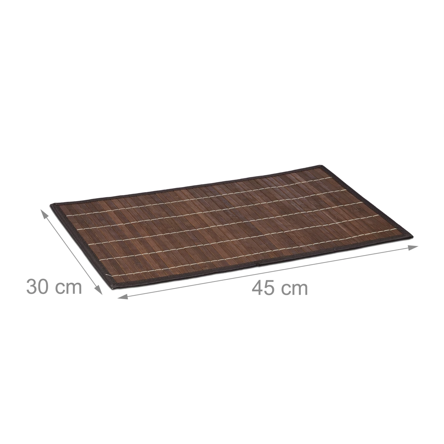 Diese Platzdeckchen schützen Ihren Tisch vor Kratzern, Verbrennungen und lästigen Spritzern. Das 6 teilige Platzset von ca. 30 x 45 cm ist aus feuchtigkeitsresistentem Bambus gefertigt und somit besonders robust. Es hält auch kleinere Mengen Flüssigkeit für kurze Zeit sicher von empfindlichen Oberflächen fern. Durch die rutschhemmende Unterseite liegen die Tischmatten sicher auf dem Tisch. Nach dem Gebrauch können Sie Krümel einfach abklopfen und Verschmutzungen mit einem feuchten Lappen entfernen.