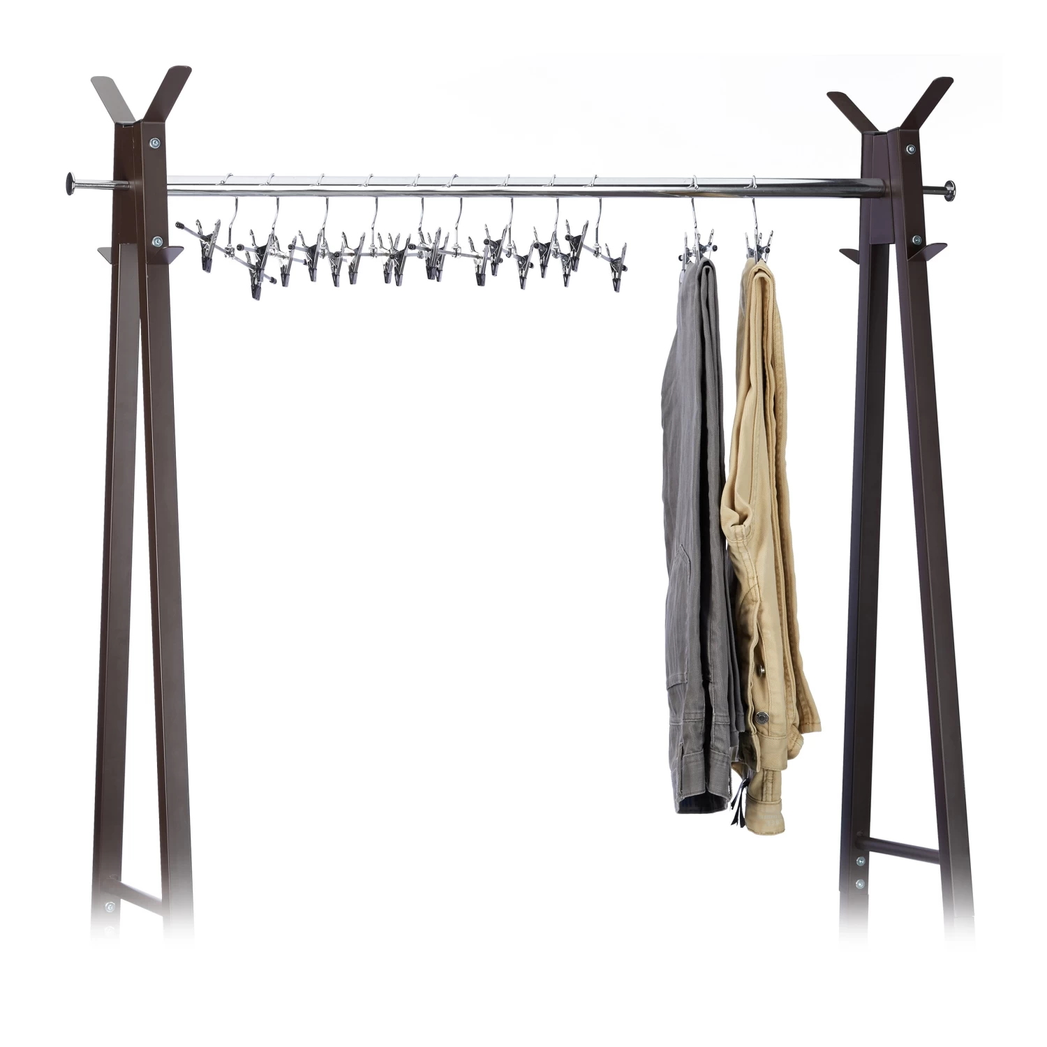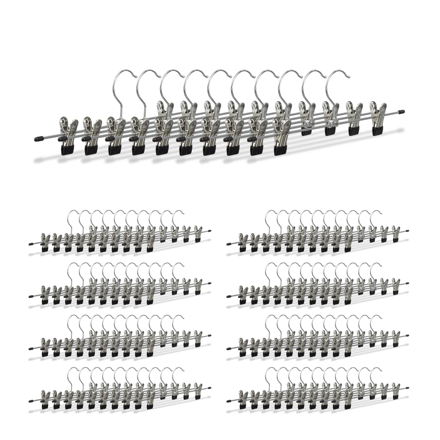 Dank des 90er Sets Kleiderbügel sorgen Sie für Ordnung in Ihrem Schrank! Ihre jeweils 2 Klammern sind an die Stange montiert, lassen sich aber dennoch verschieben. Das gibt Ihnen die Möglichkeit, die Metallkleiderbügel sehr flexibel zu nutzen. Hängen Sie Stiefel, Hosen oder Röcke auf – alles kein Problem! Was immer Sie vorhaben: Die gummierten Klammern greifen resolut zu und hinterlassen keinerlei Abdrücke auf Ihren Kleidungsstücken.
