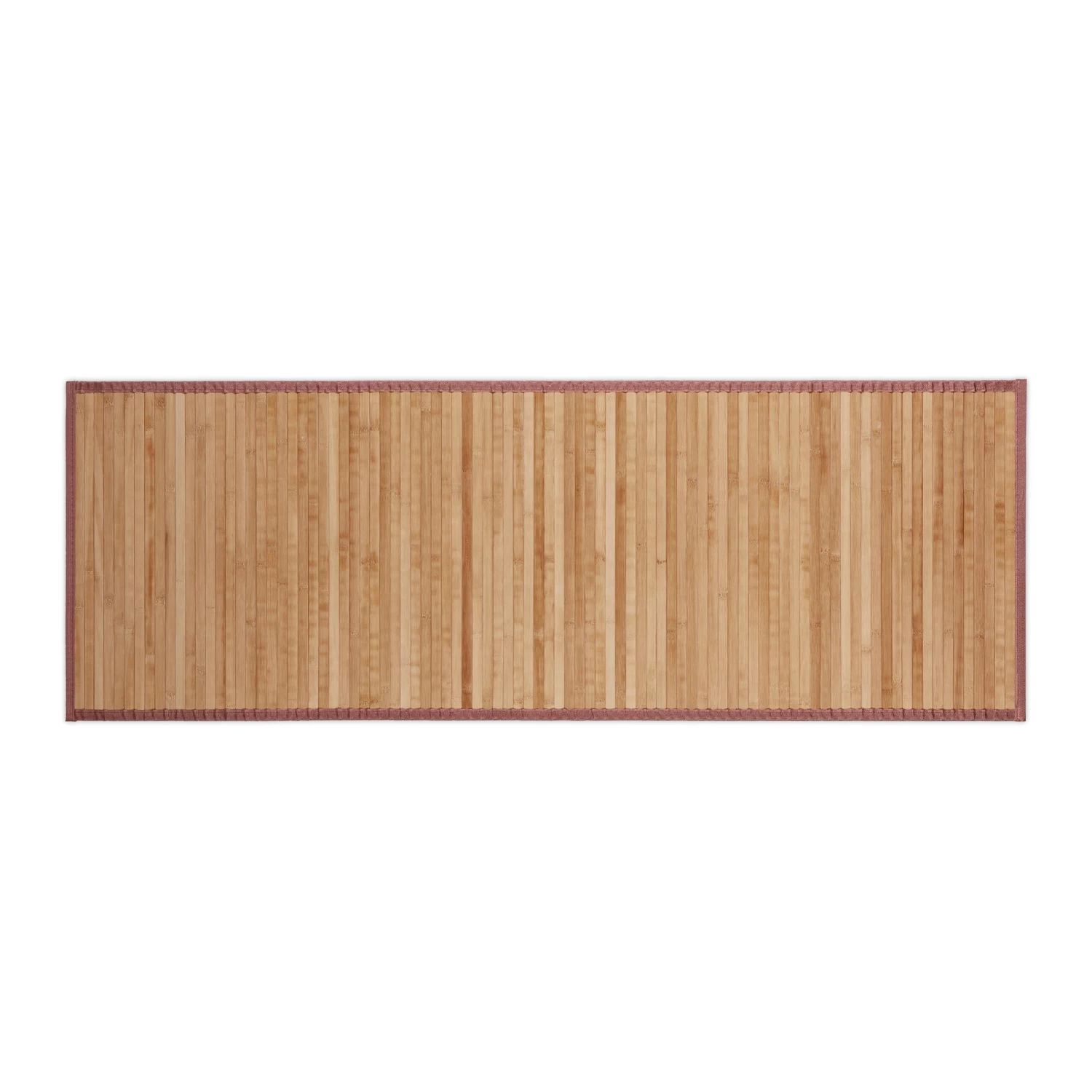 Optisch kalte Badeinrichtungen tragen nicht gerade viel zu einem angenehmen Wohngefühl bei. Mit der Badematte aus natürlich schönem Bambus setzt Du der Kälte etwas entgegen. Das Material fügt sich mit seiner warmen Optik nicht nur wunderbar ein, sondern ist außerdem sehr widerstandsfähig und feuchtigkeitsresistent. Auch als Küchenteppich ist der Bambusläufer daher bestens geeignet. Die rutschhemmende Unterseite verhindert, dass der Duschvorleger über glatte Fliesen gleitet.