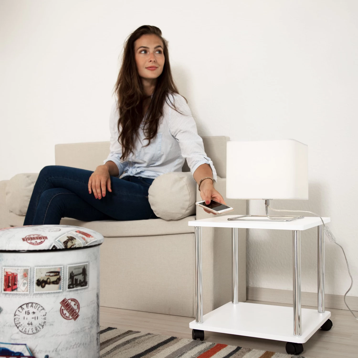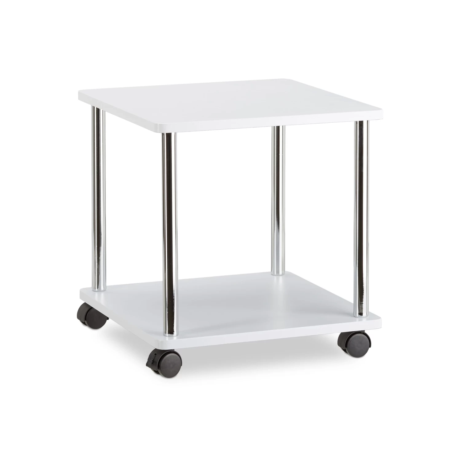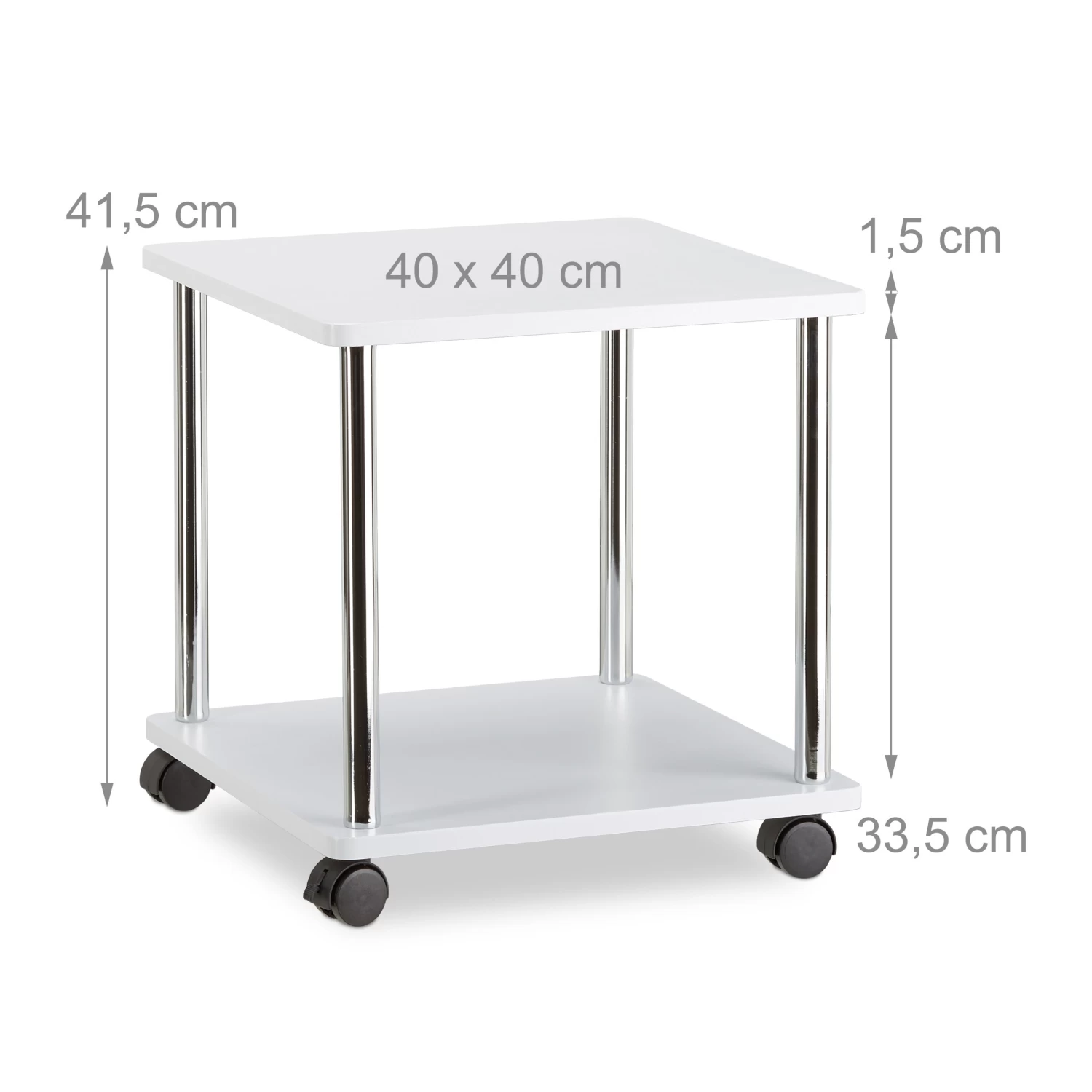Der kleine Beistellwagen ist ein Allrounder im Haushalt. Ob als Couchtisch im Wohnzimmer, als Beistellwagen für Topfpflanzen oder Nischenwagen, um schnell zusätzlichen Stauraum zu schaffen: Der weiße Allzweckwagen mit den 2 Etagen lässt sich auf vielfältige Weise nutzen. Außerdem ist er dank der 4 Rollen aus Kunststoff mobil. Diese schonen den Untergrund und lassen sich in jede erdenkliche Richtung drehen. Um den Sofatisch zu montieren, benötigen Sie kein eigenes Werkzeug.