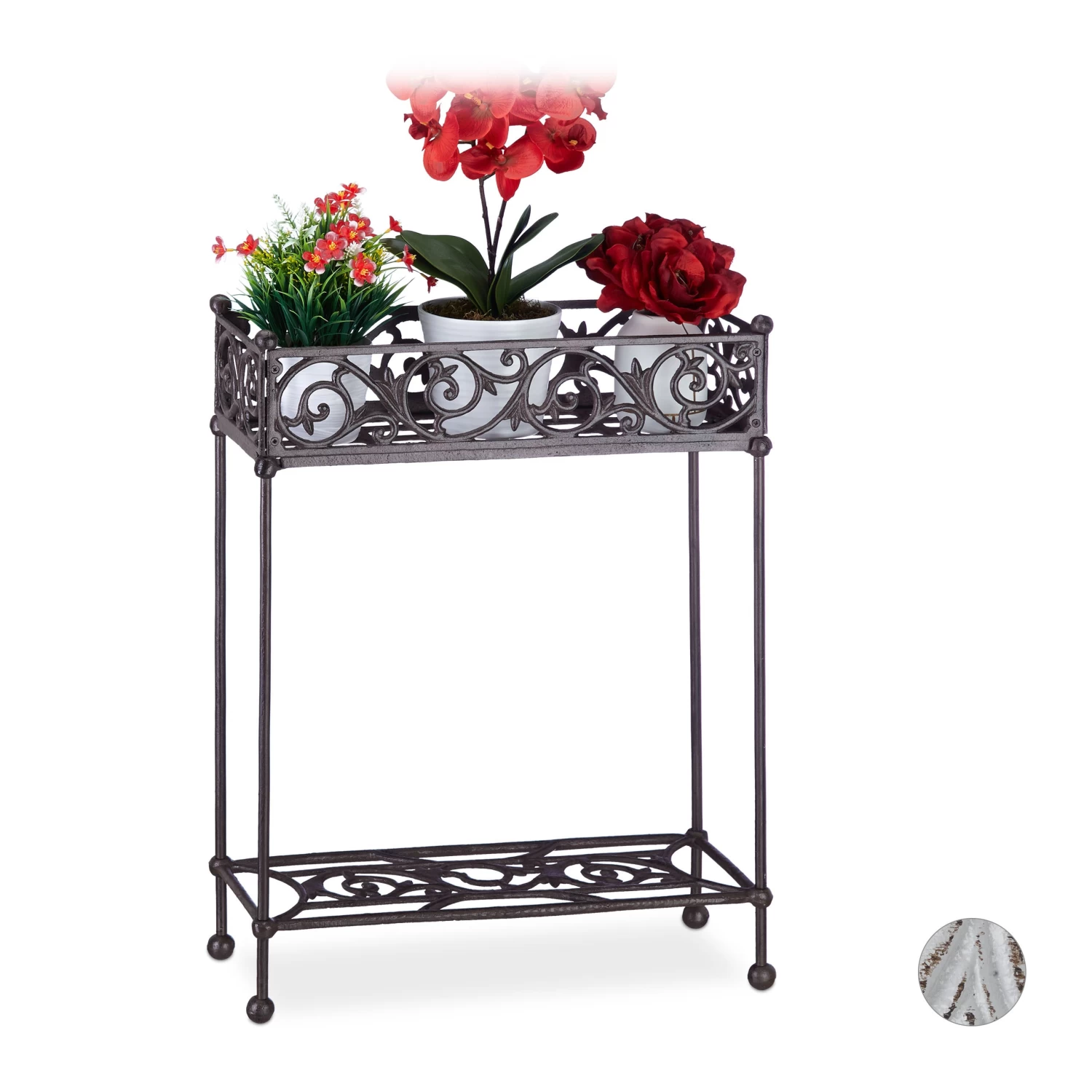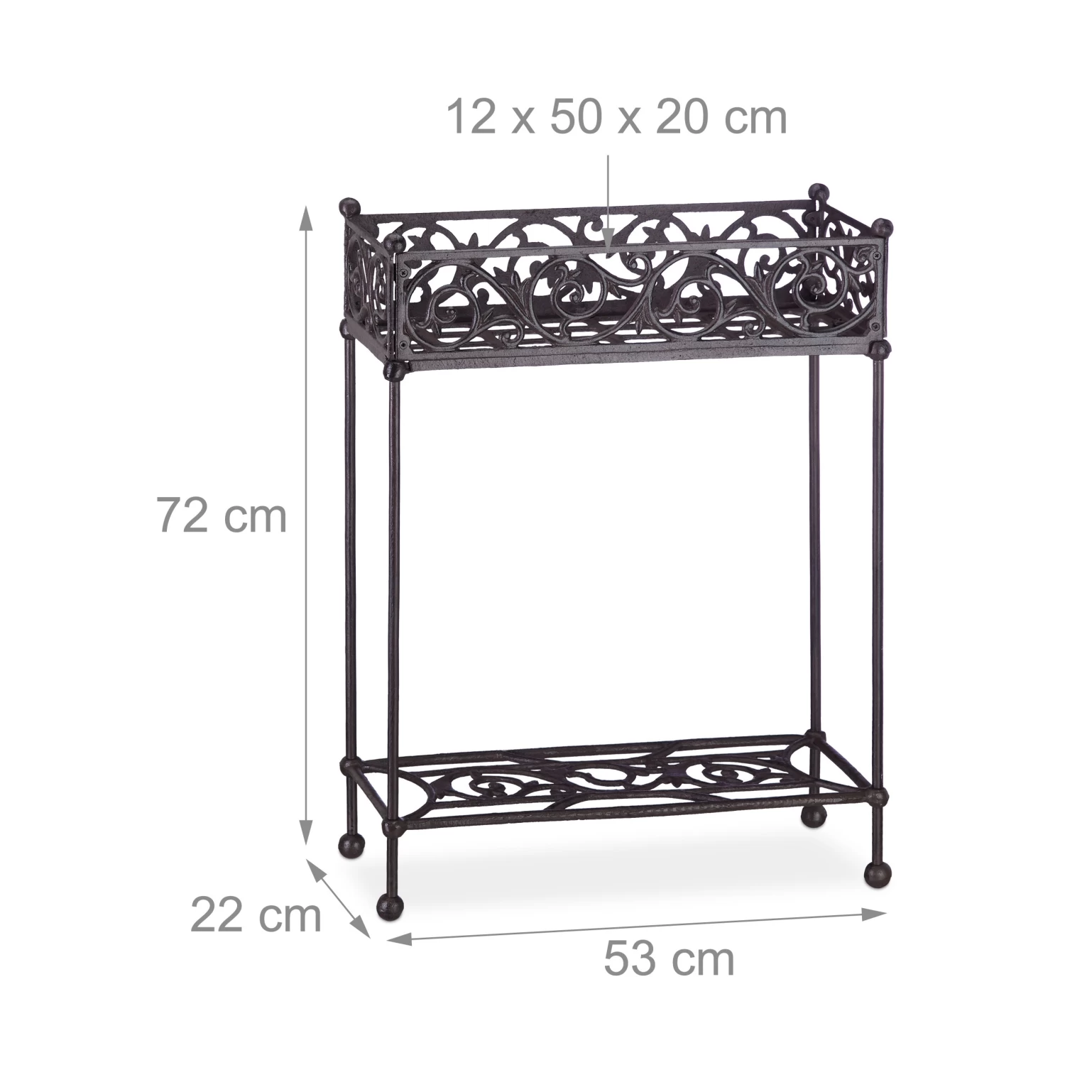 Die Blumentreppe schafft Platz, um Ihre geliebten Blumen dekorativ zu präsentieren. Bunte Blüten, Kräuter und Blumentöpfe lassen sich damit optisch schön anrichten. Gestalten Sie Ihre persönliche kleine Pflanzenecke nach Ihrem Geschmack. Auf den 2 Ablagen findet sich ausreichend Platz für Orchideen, Farne und andere Pflanzen. Das Pflanzenregal ist vollständig aus Gusseisen und überzeugt somit mit seiner massiven Qualität. Es eignet sich zur Indoor-Nutzung oder für den überdachten Außenbereich.