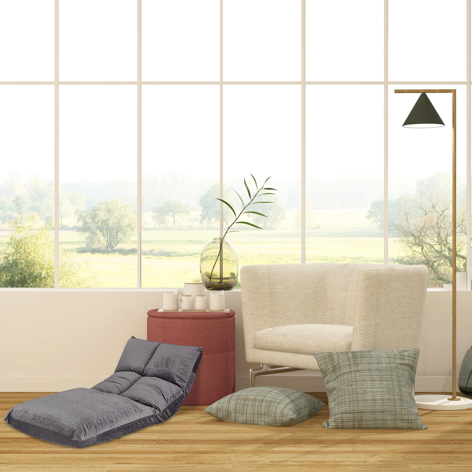 Mit diesem bequemen Sitzkissen ist es Ihnen möglich, überall in Ihrer Wohnung zu entspannen. Der flexible Bodensessel bietet sowohl im Liegen, als auch im Sitzen hohen Komfort. Mit verstellbarer Rückenlehne und angenehm weicher Polsterung ist das Bodenkissen ungemein bequem und für Erwachsene sowie Kinder eine tolle Sitzgelegenheit. Nutzen Sie den Bodenstuhl im modernen Vintage Look beim Lesen im Wohnzimmer, als Meditationsstuhl beim Yoga oder beim Spielen auf der Konsole im Jugendzimmer.
