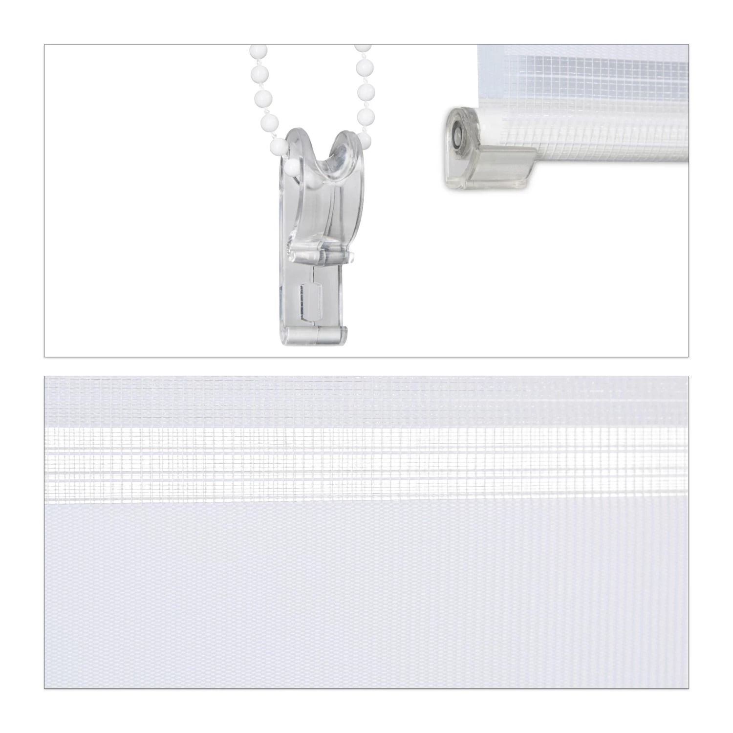 Das Doppelrollo Klemmfix in weiß ist schick und multifunktional. Die unterschiedlich dicht gewebten Streifen sind lichtdurchlässig und blickdicht zugleich – je nachdem, wie das Rollo positioniert wird. Entscheiden Sie sich für einen leichten Sichtschutz mit viel Tageslicht oder geschützter Privatsphäre. Durch die Kette lässt sich das Seitenzugrollo einfach und schnell bedienen. Eingerollt fällt das Duo-Rollo kaum auf. Die praktische Klemmfix-Vorrichtung ermöglicht ein Anbringen ohne Bohren.