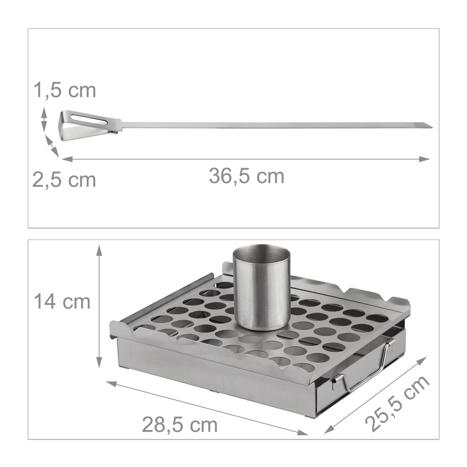Mit diesem Grillaufsatz können Grillfans verschiedenste Gerichte einfach zuhause zubereiten. Die verschiedenen Teile sind unter anderem ein Schaschlikgrill, mit dem Sie über einer Tropfschale leckere Spieße zubereiten können, ein Hähnchenständer für Bierhähnchen im Haubengrill und eine Räucherbox für würziges Grillgut. Der Grillrost mit Löchern eignet sich zur Zubereitung von gefüllten Chili oder Gemüse. Zur Nutzung stellen Sie den Minigrill einfach auf den Rost Ihres vorhandenen Grills.