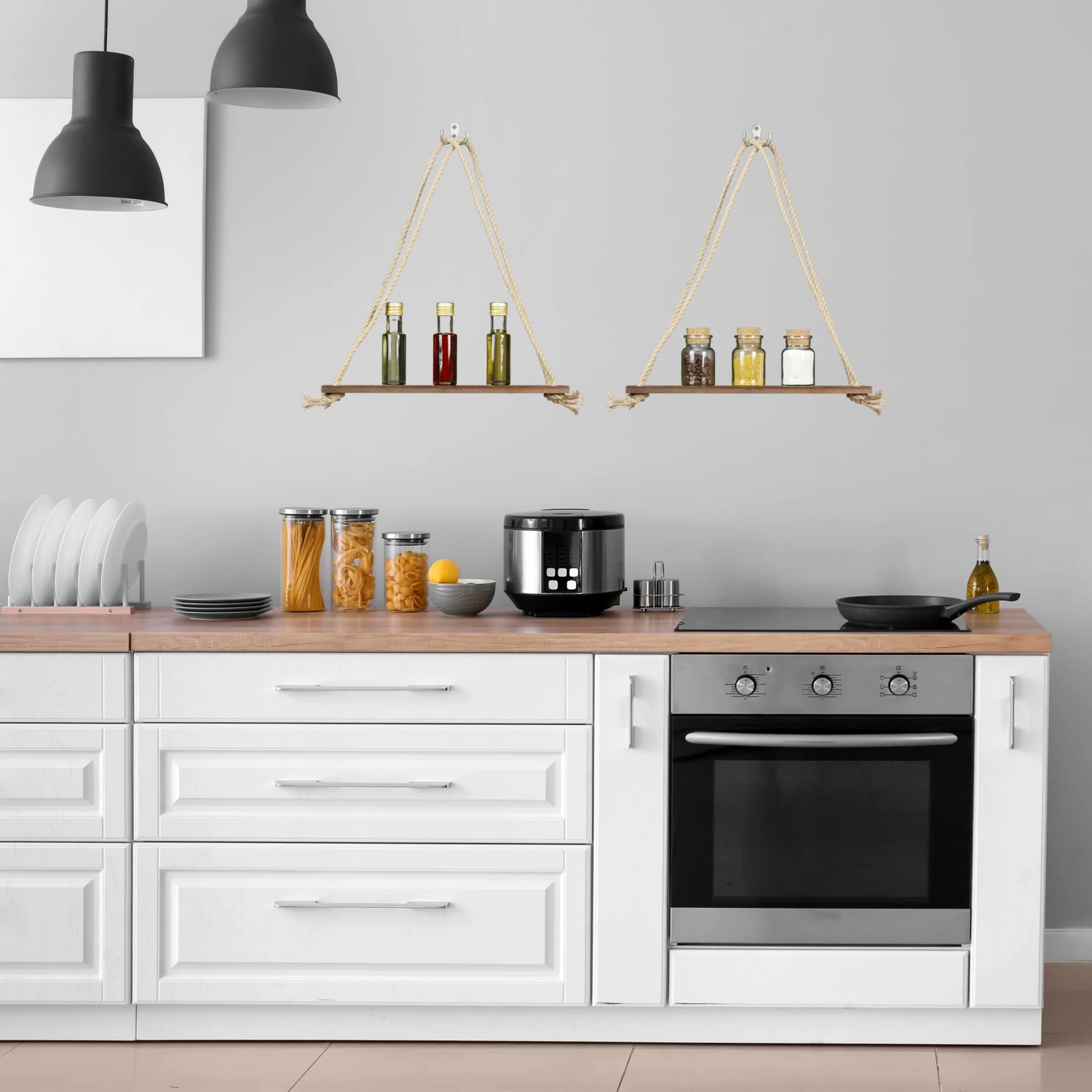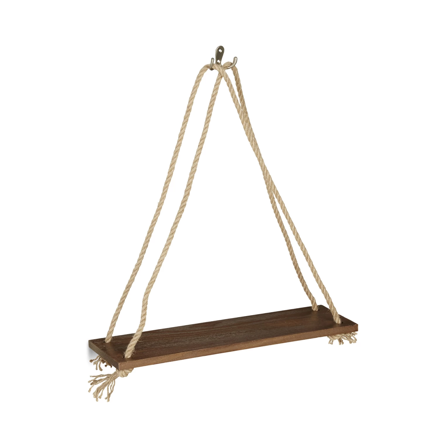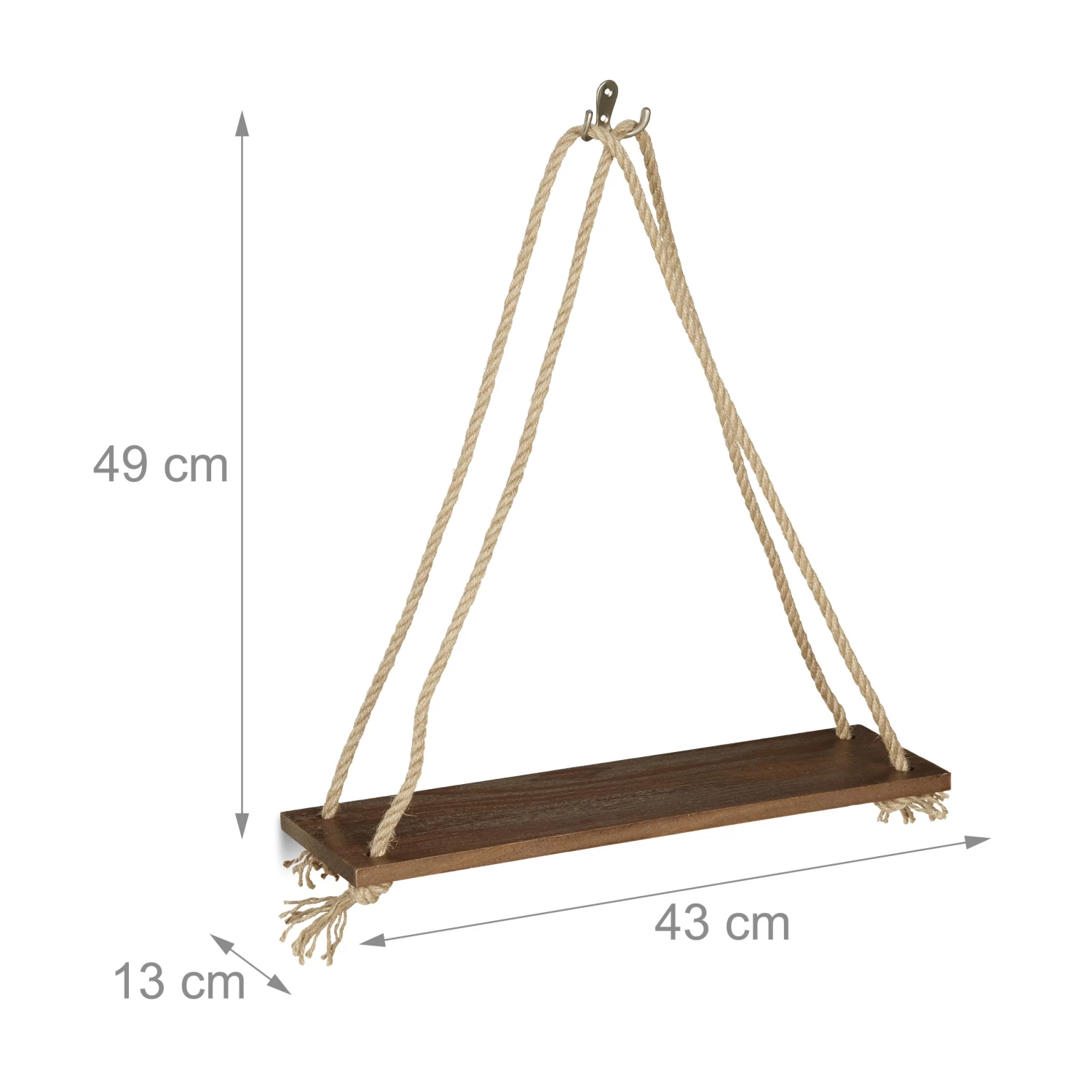 Ob Blumentopf oder Deko – die Schweberegale schaffen schnell Platz und Ordnung und bieten Ihnen eine variable Stellfläche. Ideal für Pflanzen, Bilderrahmen oder Gewürze. Sie befestigen einfach den mitgelieferten Haken mit den Schrauben an der Wand oder einem Balken und hängen die Seile ein und ziehen am stabilen Holzbrett, bis es gerade hängt. Die Bretter mit natürlicher Maserung passen sowohl als Vintage-Akzent zu einer modernen Einrichtung, oder vervollständigen stilvoll ihr Landhaus.