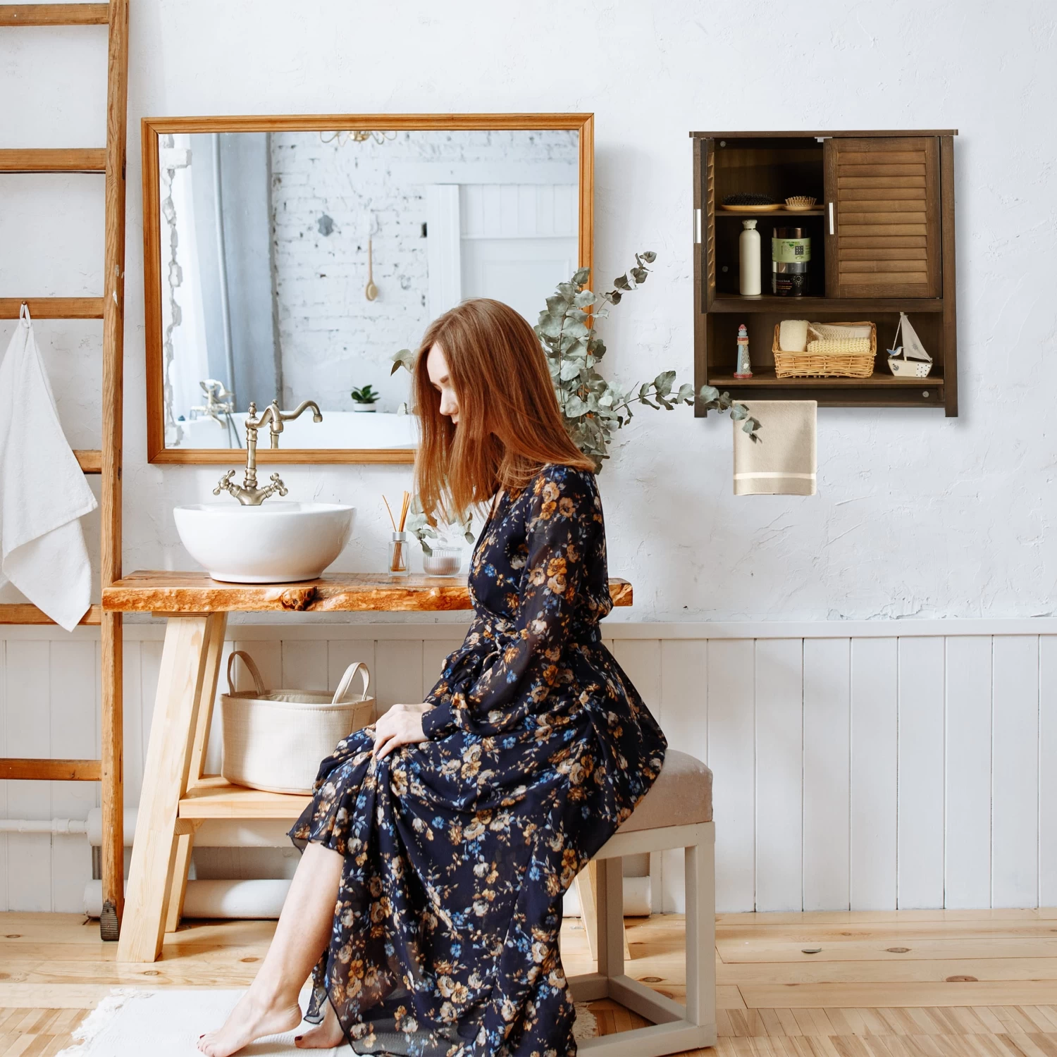 Die Badmöbel der LAMELL Serie sorgen für natürliche Schönheit in Ihrem Badezimmer. Sie sind aus robustem Bambus gefertigt, der ideal für feuchte Umgebungen geeignet ist. Das besondere optische Highlight sind die Lamellen-Türen, die der Kollektion ihren Namen geben. Der LAMELL Oberschrank in Dunkelbraun fügt sich vor allem in helle Badezimmer gut ein. Er verfügt über insgesamt 3 Ablagen sowie einen Handtuchhalter. Damit schafft er wertvollen Stauraum für viele Badutensilien.