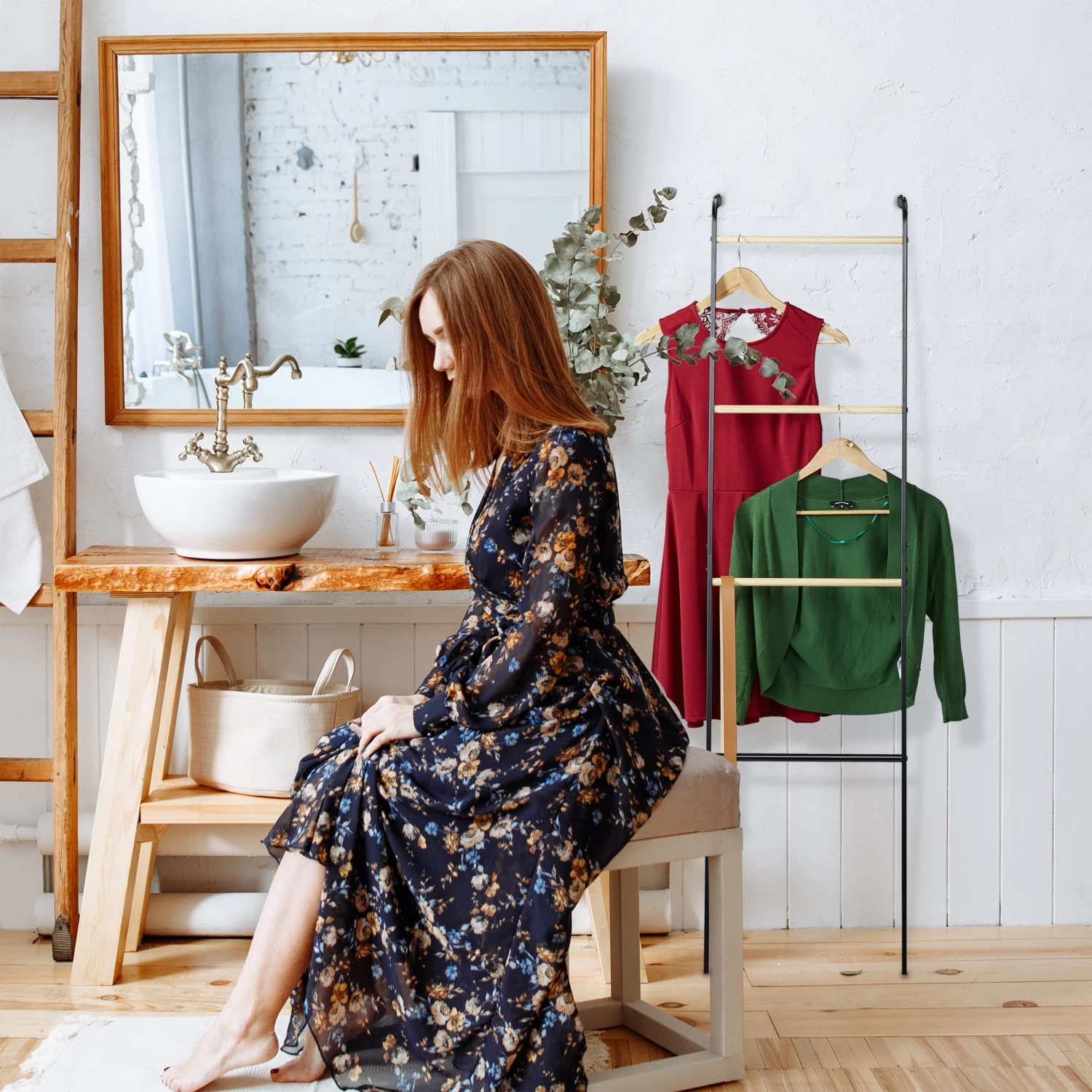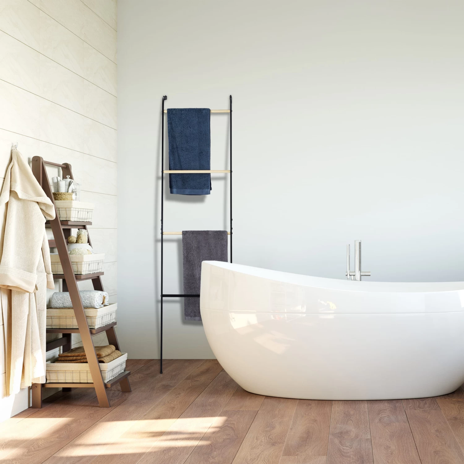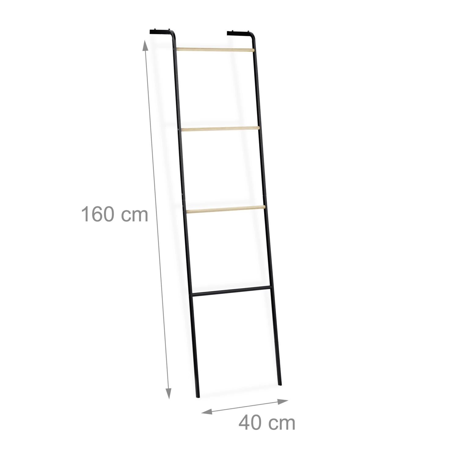 Mit der Handtuchleiter können Sie ihre Hand- und Badetücher platzsparend trocknen. Platzieren Sie die 4-sprossige Wäscheleiter einfach an einer Wand ihrer Wahl – Ganz ohne lästiges Bohren. Der Badetuchhalter ist schnell aufgebaut und flexibel einsetzbar. Legen Sie Duschtücher oder Kleidungsstücke auf dem Leiterregal ab oder nutzen Sie es lediglich als Dekoleiter. Mit seinem modernen Design ist der Standhandtuchhalter überall ein echter Blickfang.