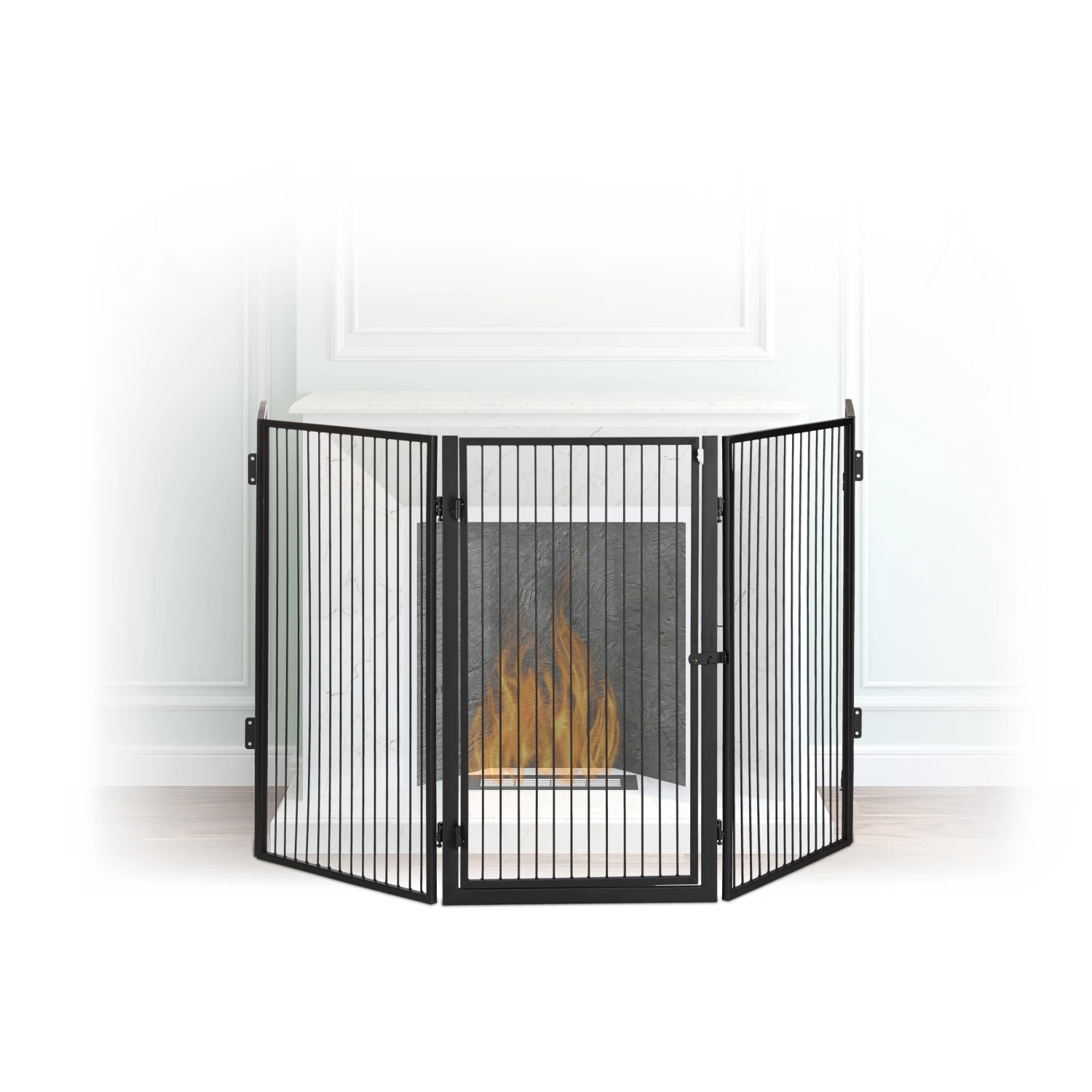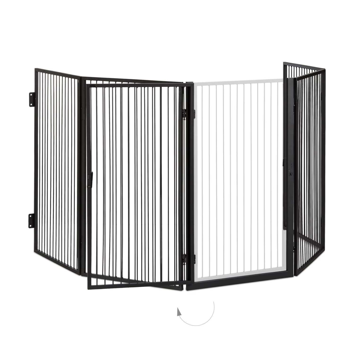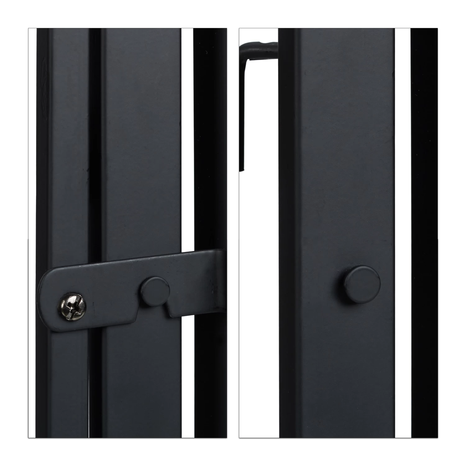 Sie möchten, dass sich Ihr kleiner Schatz frei im Wohnzimmer bewegen kann und gleichzeitig die Wärme Ihres Kamins genießen? Mit dem schwarzen Kaminschutzgitter erfüllen Sie diese Wünsche. Dank der Scharniere sind die Teile des Schutzgitters sehr beweglich, was eine Vielzahl an Konfigurationsmöglichkeiten bedeutet. Die Plättchen, Schrauben sowie Dübel für die Wandbefestigung sind bereits im Lieferumfang enthalten. Von innen können Sie die Tür im Handumdrehen sichern, sodass die Erkundungen Ihres Kindes nicht mit verbrannten Händen oder Ärgerem enden.