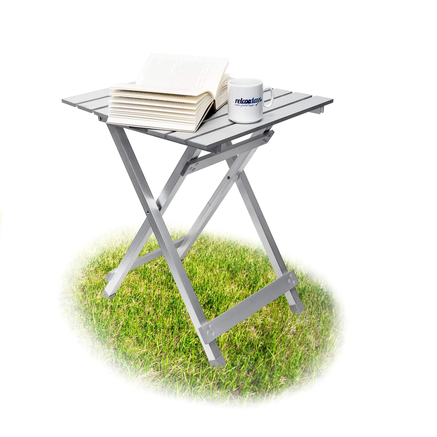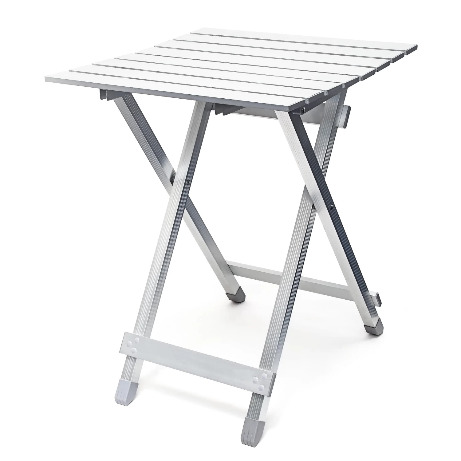 Der kleine Falttisch dient Ihnen hervorragend als Beistelltisch im Garten oder als portabler Esstisch beim Campingausflug. Er ist komplett aus Aluminium hergestellt und daher leicht und dennoch robust. Zusammengeklappt lässt sich der Tische ohne großen Kraftaufwand transportieren und passt bei Nichtnutzung auch in kleine Ecken und Nischen. Genießen Sie die Sommermonate an der frischen Luft und machen Sie es sich an dem praktischen Campingtisch bequem.