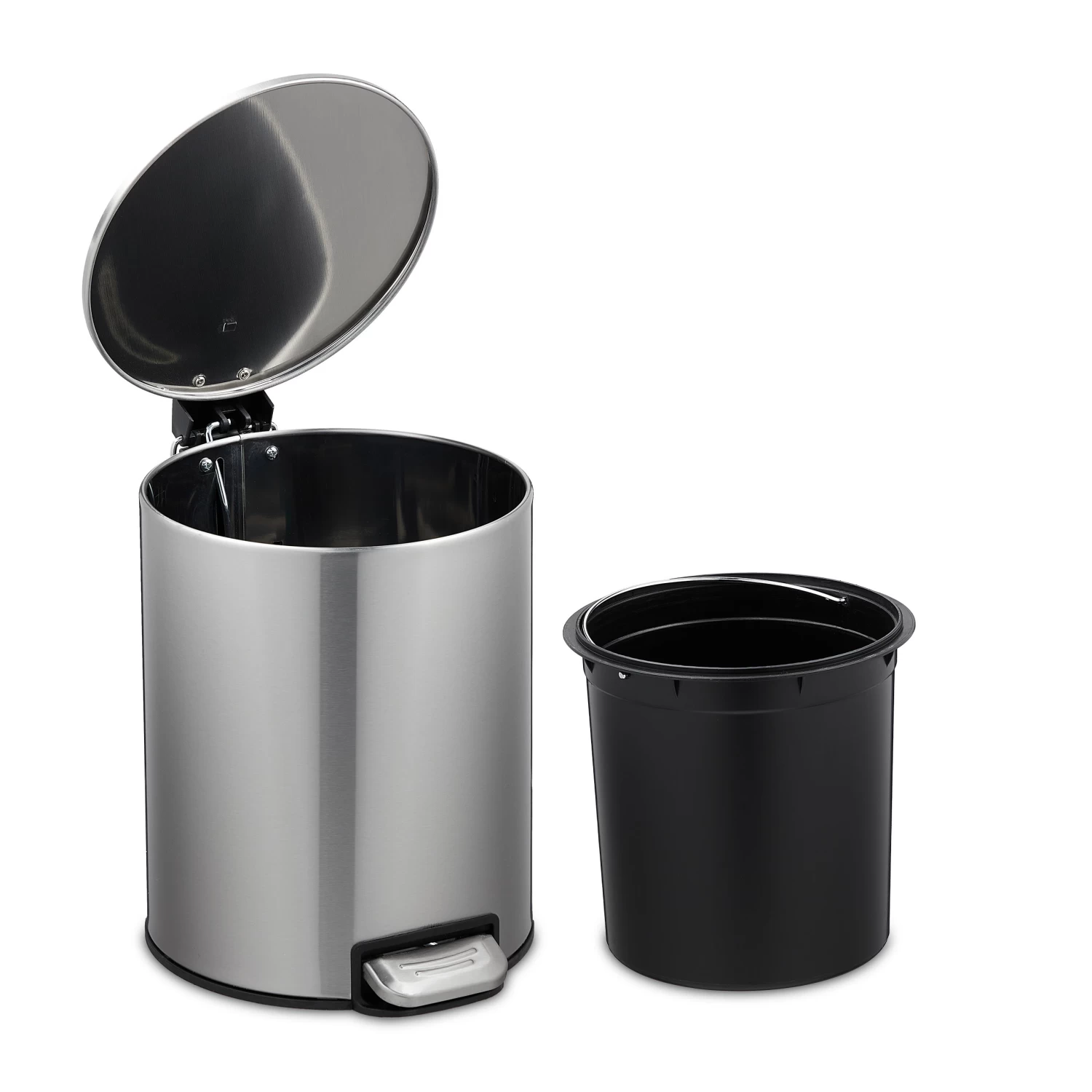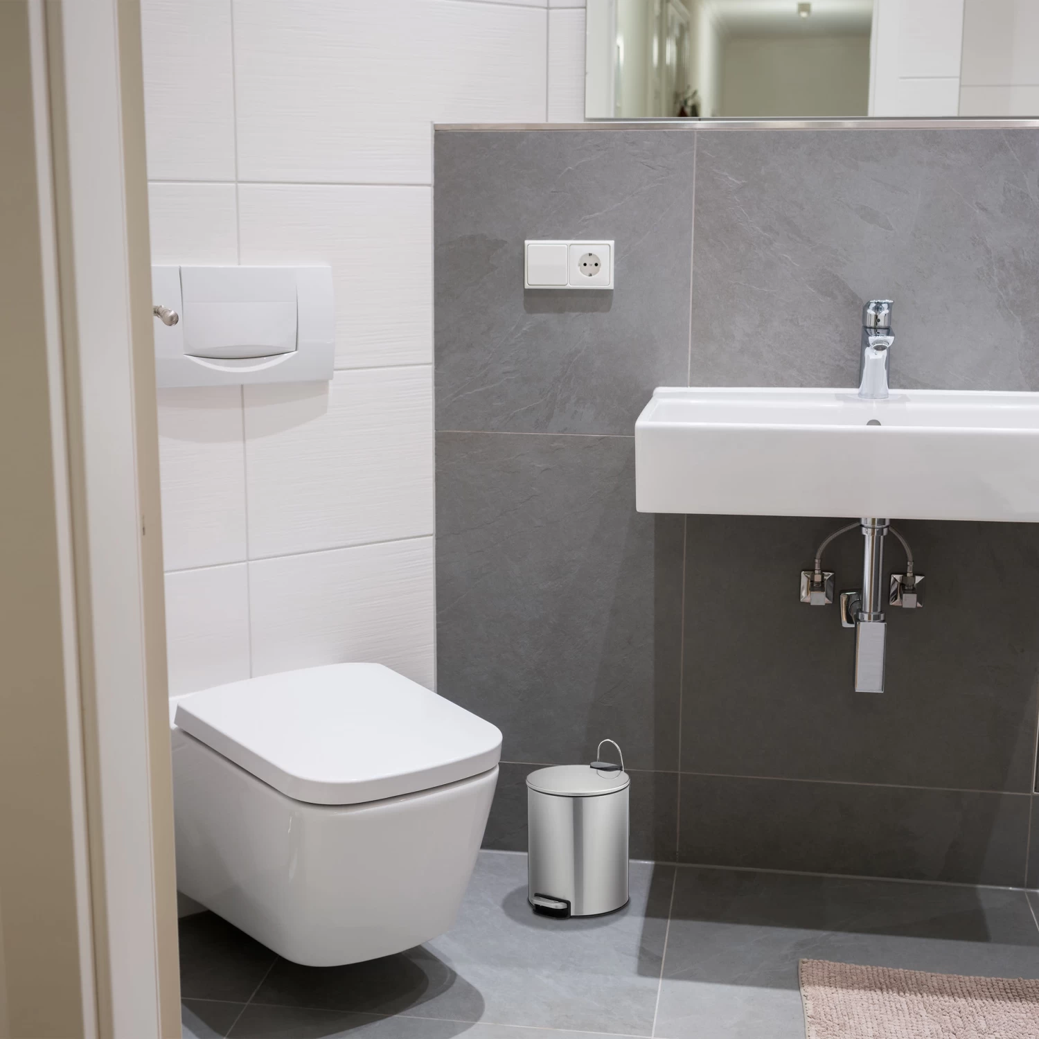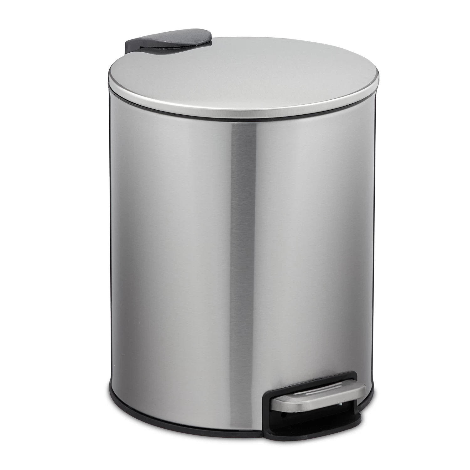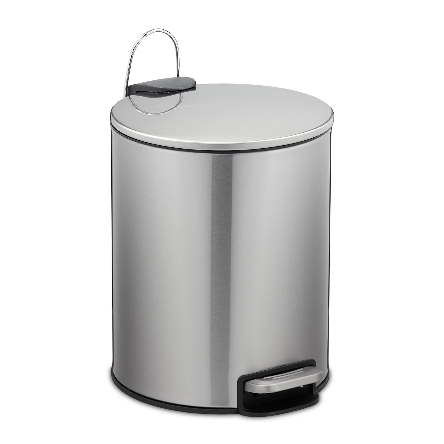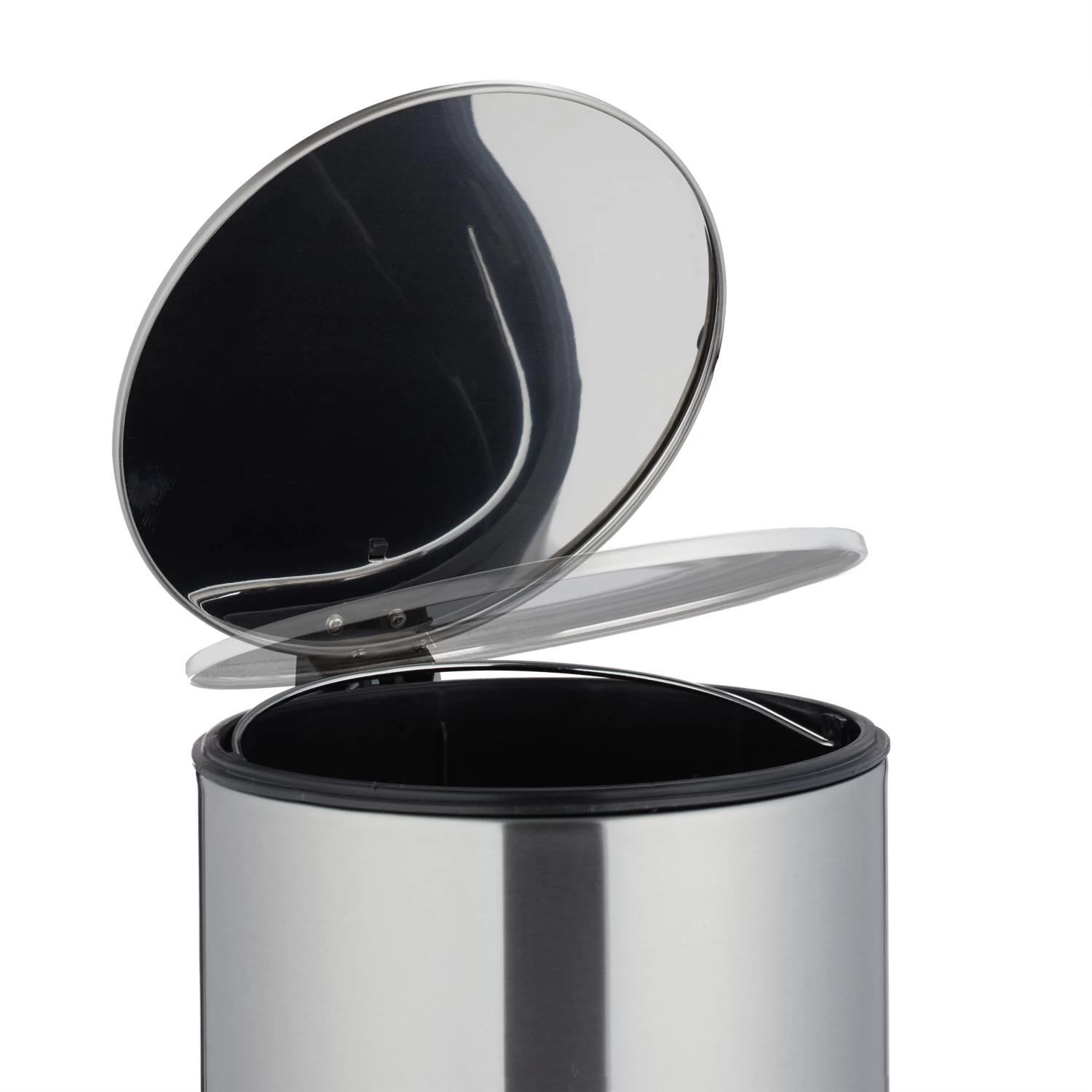 In dem runden Mülleimer mit Deckel kannst Du hygienisch und komfortabel Deine Abfälle im Bad oder am Schminktisch entsorgen. Mit dem rutschfesten Trittpedal lässt sich der Badezimmermülleimer freihändig öffnen, das Schließen des Deckels gelingt dank Soft-Close-Funktion besonders sanft und leise. Der entnehmbare Kunststoffeimer sorgt für ein leichtes Entleeren des Badkübels. Optisch punktet der Hygieneeimer durch seine glänzende Edelstahl-Oberfläche mit praktischer Anti-Fingerprint-Beschichtung.