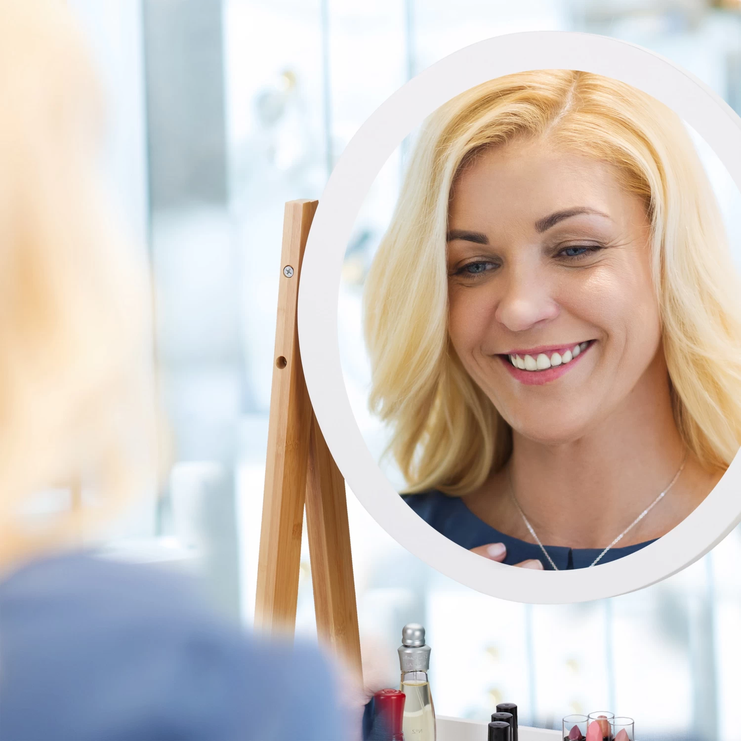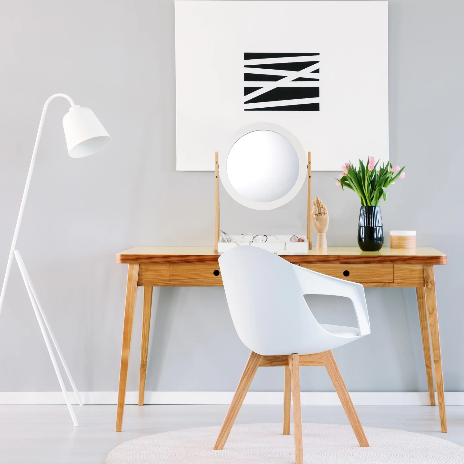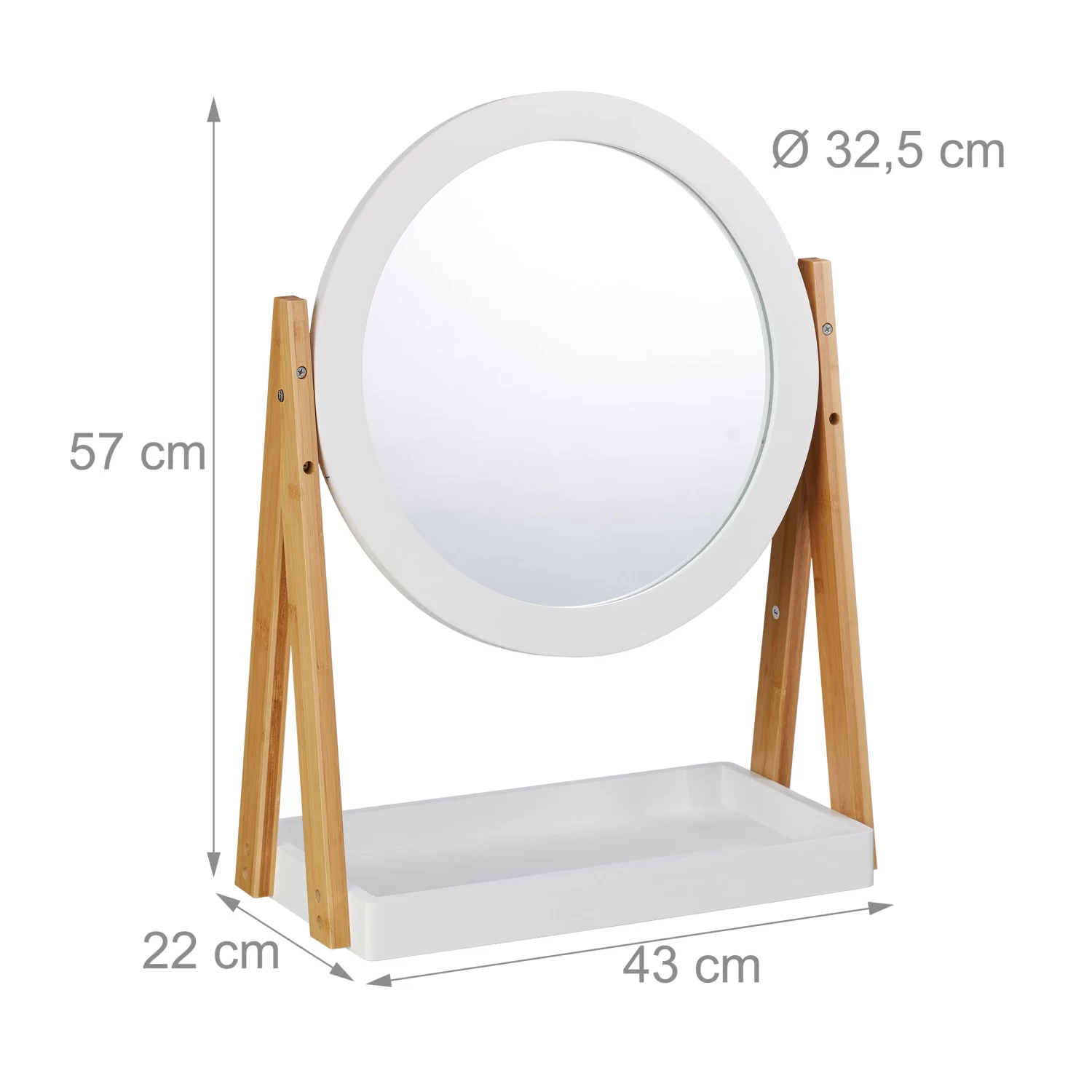 Mit diesem großen Gesichtsspiegel haben Sie sich beim Schminken, Haarstyling oder Augenbrauen zupfen immer voll im Blick. Den drehbaren Spiegel können Sie individuell auf Ihre gewünschte Sichthöhe einstellen. In der praktischen Ablage haben Sie die wichtigsten Kosmetikutensilien oder Ihren Schmuck immer gleich griffbereit.