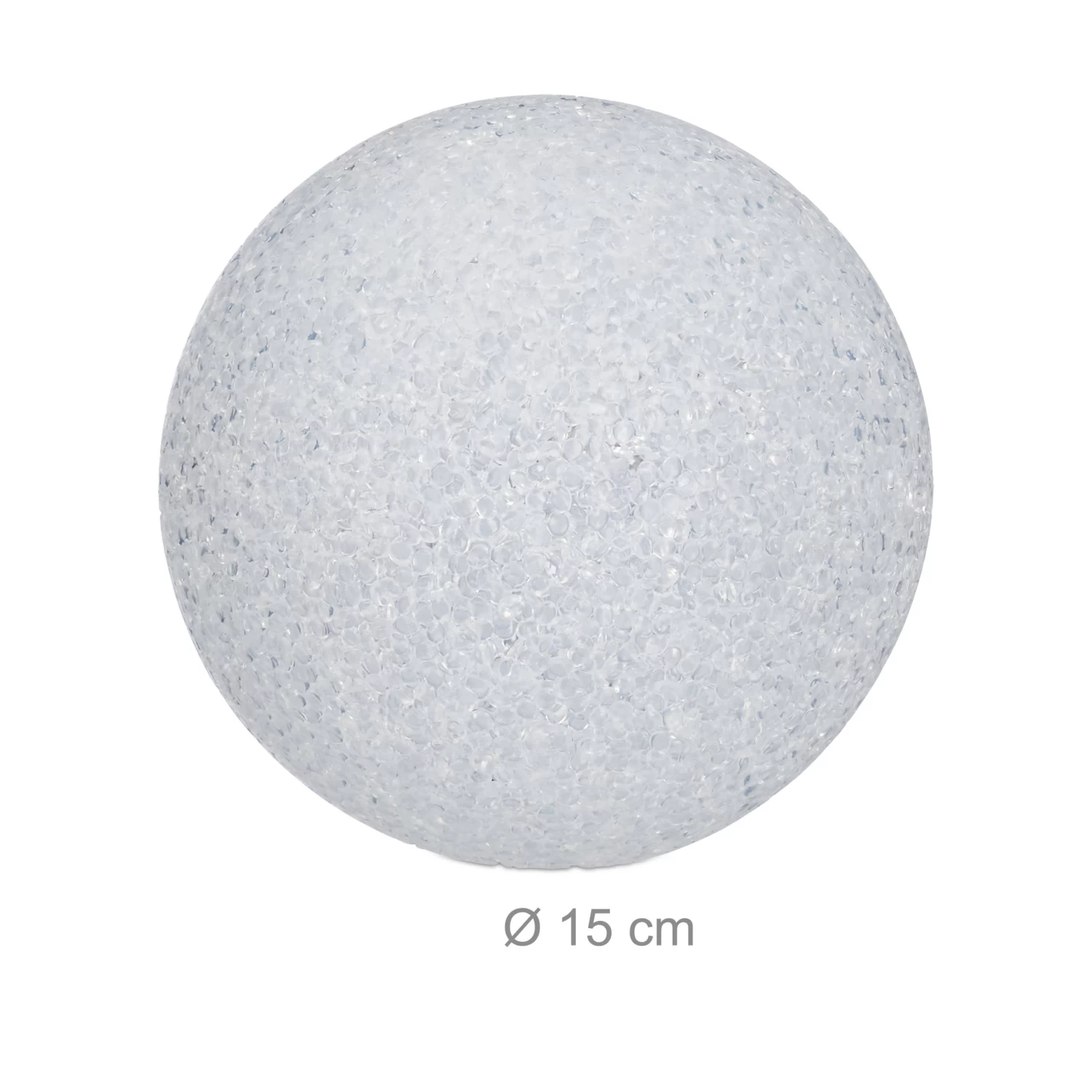 Lassen Sie sich von den schönen bunten Lichtern dieser dekorativen Kugellampe verzaubern! Die LED Kugel wechselt stetig die Farbe zwischen rot, grün, gelb, blau und lila. Besonderes Highlight sind das ästhetische Glitzern und die funkelndem Lichter, die an die Decke und die Umgebung gestrahlt werden. Die Leuchtkugel sorgt für gemütliche Stimmung in Ihrem Wohnzimmer, Schlafzimmer oder auch bei einem entspannten Schaumbad. Im Kinderzimmer sorgt der Lichtball als Nachtlicht für schöne Träume.