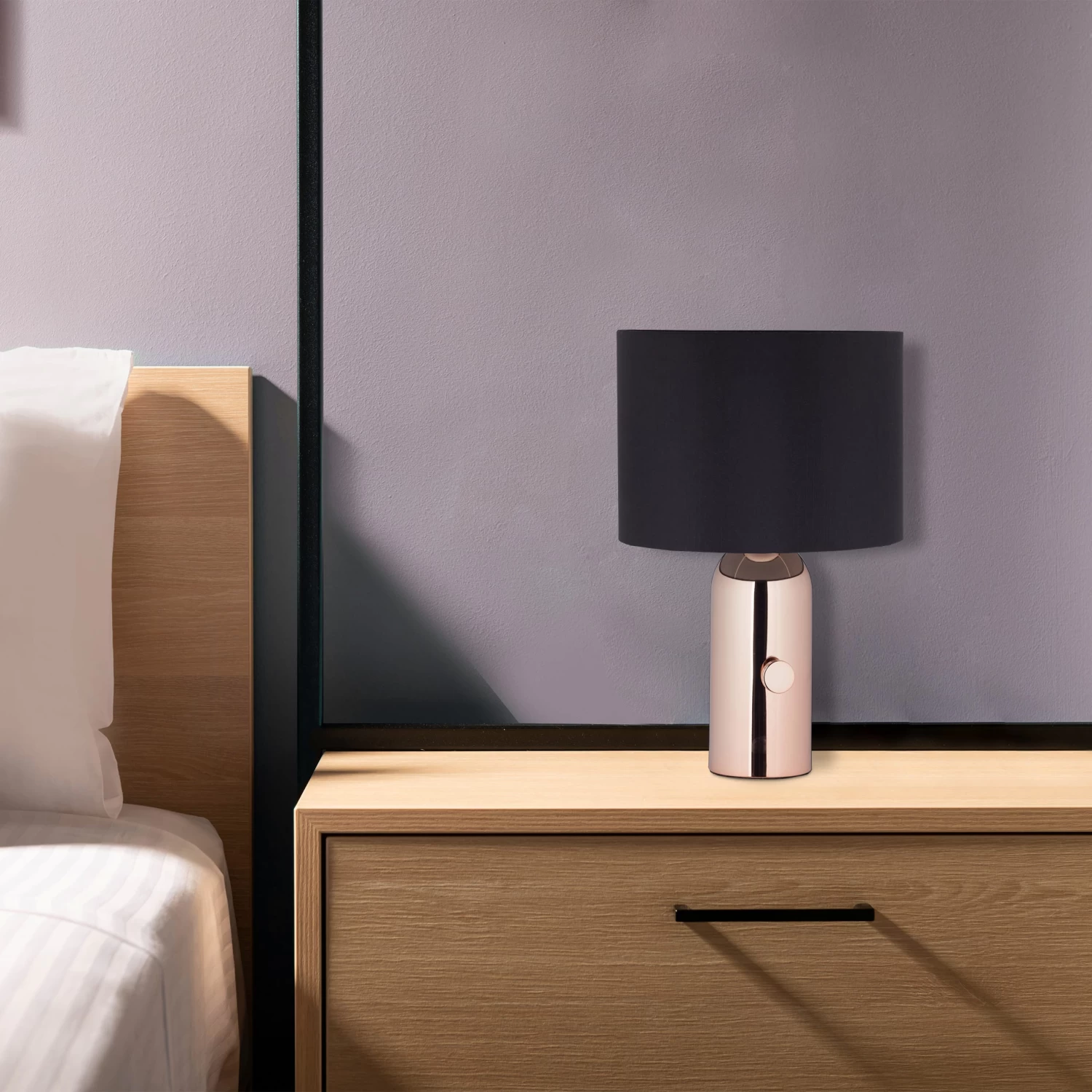 – Glänzender Metallfuß mit Dimmer in angesagtem Roségold
