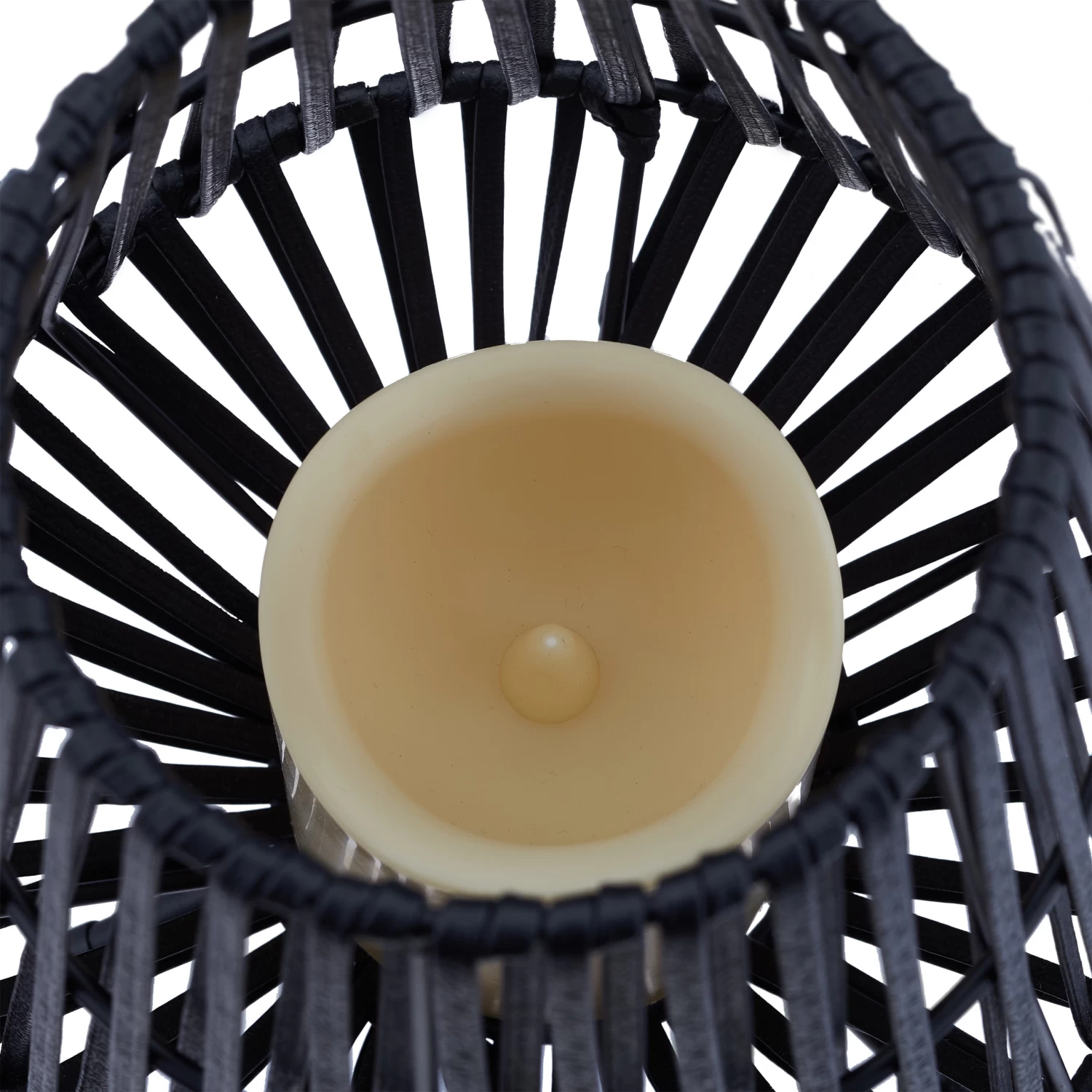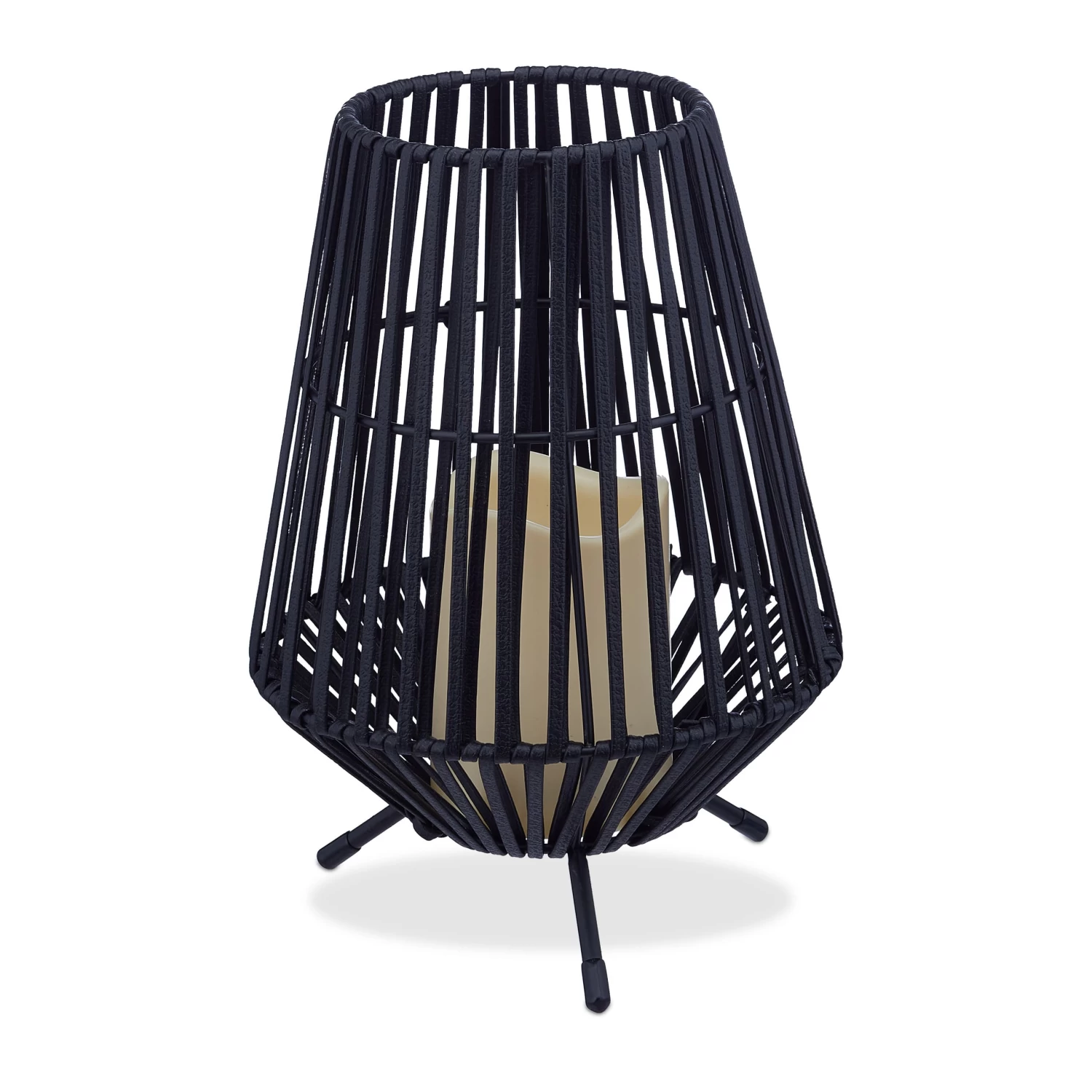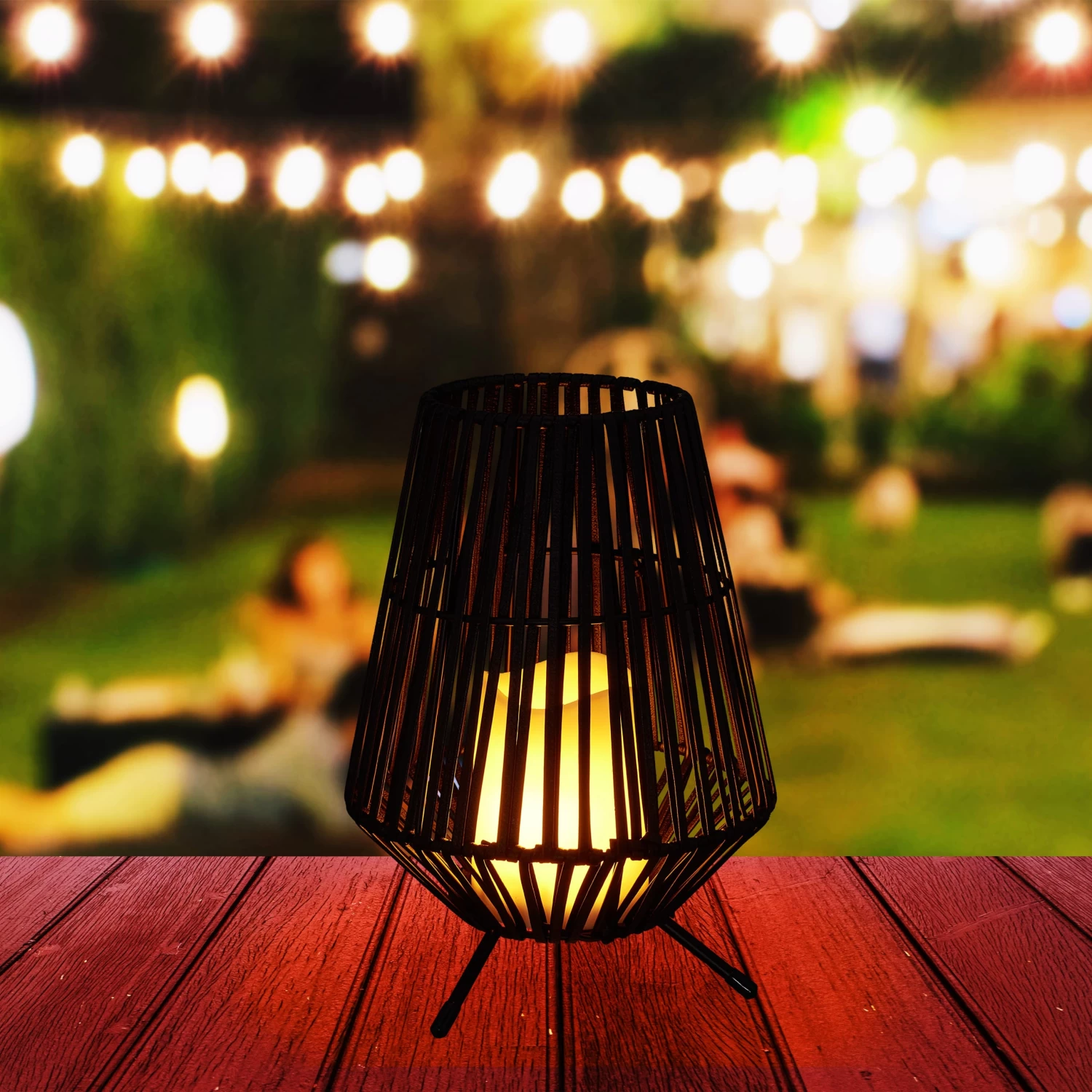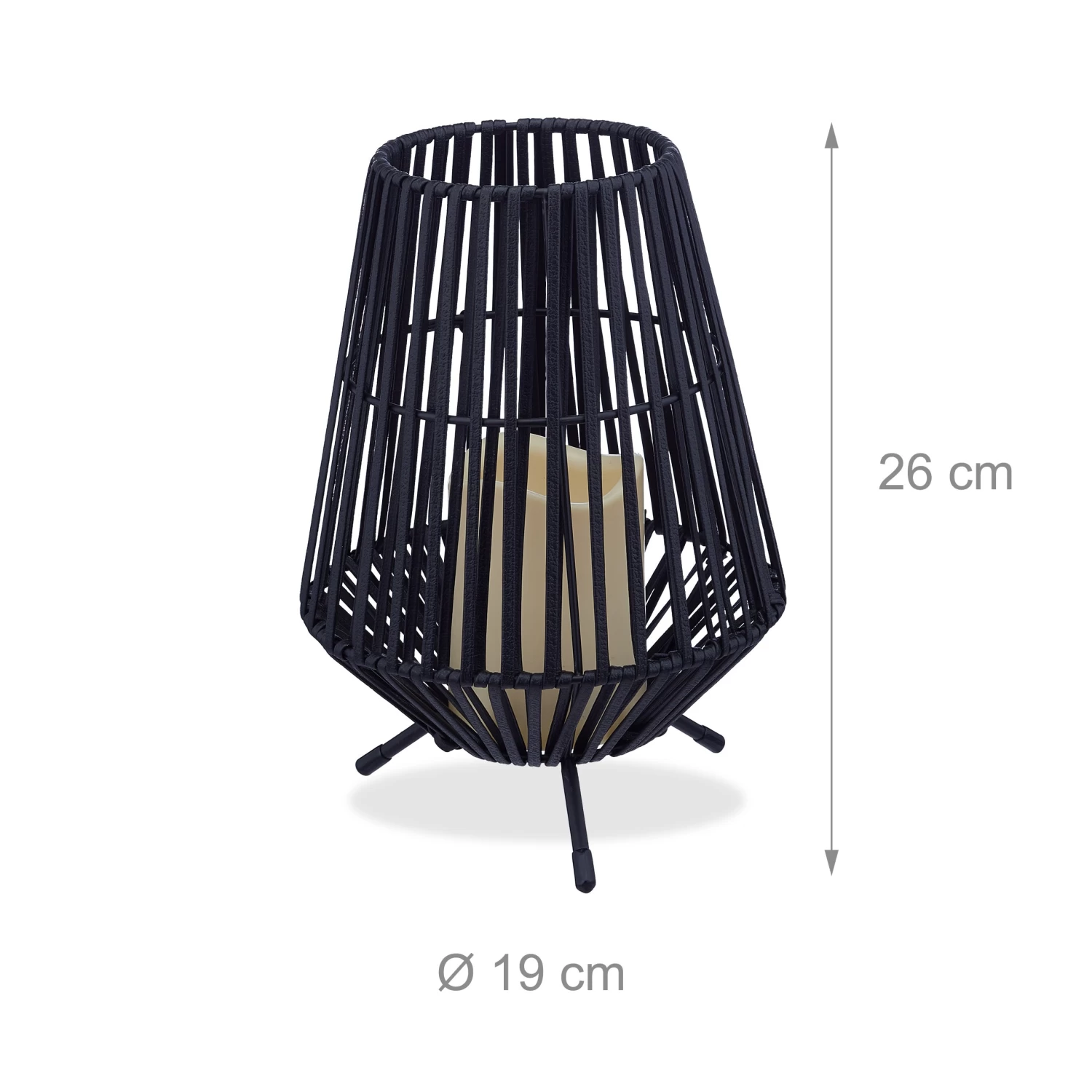 Diese moderne Tischlampe verleiht jedem Garten, Balkon oder der Terrasse eine warme und sommerliche Atmosphäre. Die LED Leuchte sorgt für ein authentisches Kerzenlicht. Dabei wählst du zwischen einem stillstehenden oder einem flackernden Leuchtmodus aus. Die Outdoor Lampe in Rattan-Optik ist ein dekorativer Blickfang auf jedem Gartentisch. Aber auch im Innenbereich kommt die Lampe auf dem Wohnzimmertisch, der Fensterbank oder auf der Kommode ideal zur Geltung.