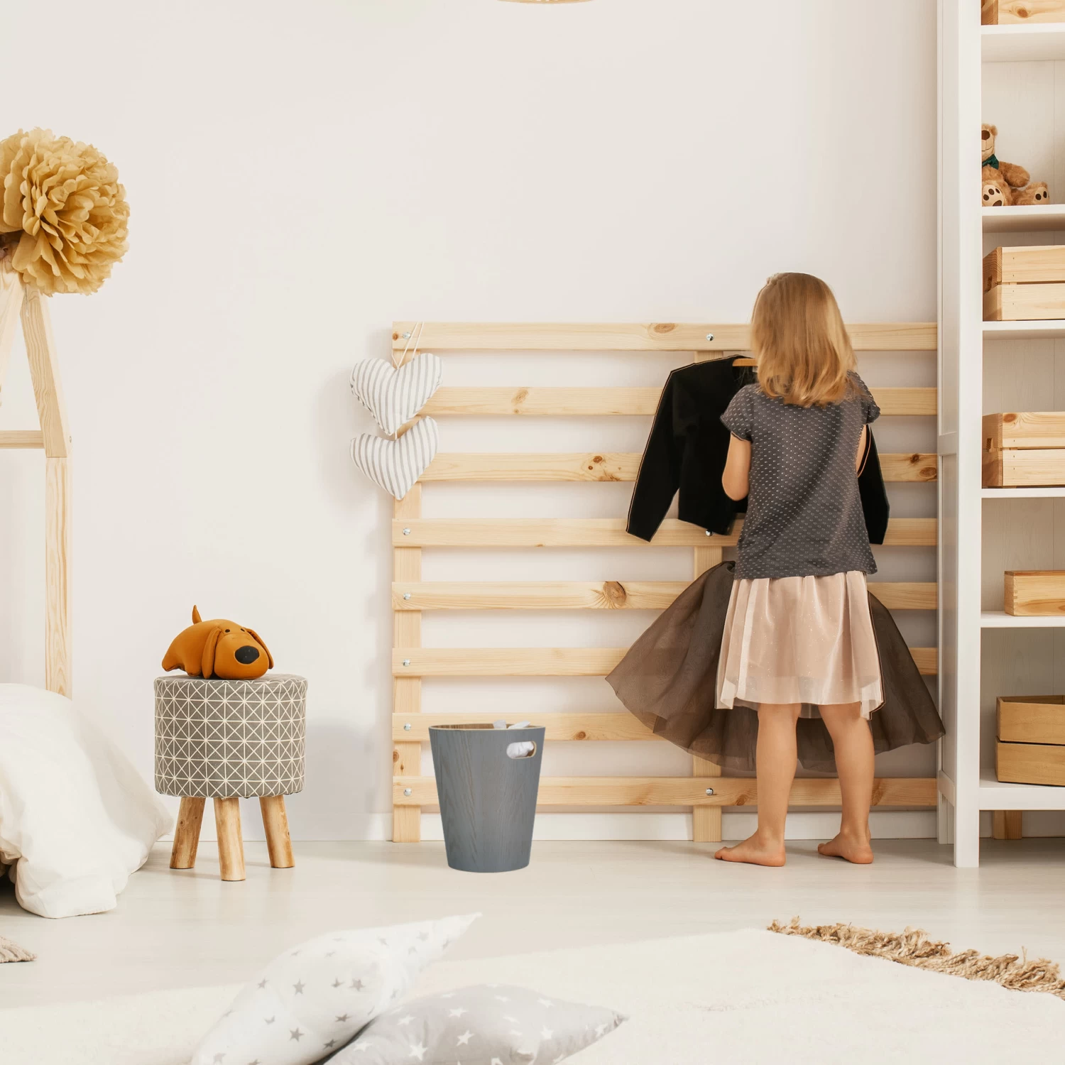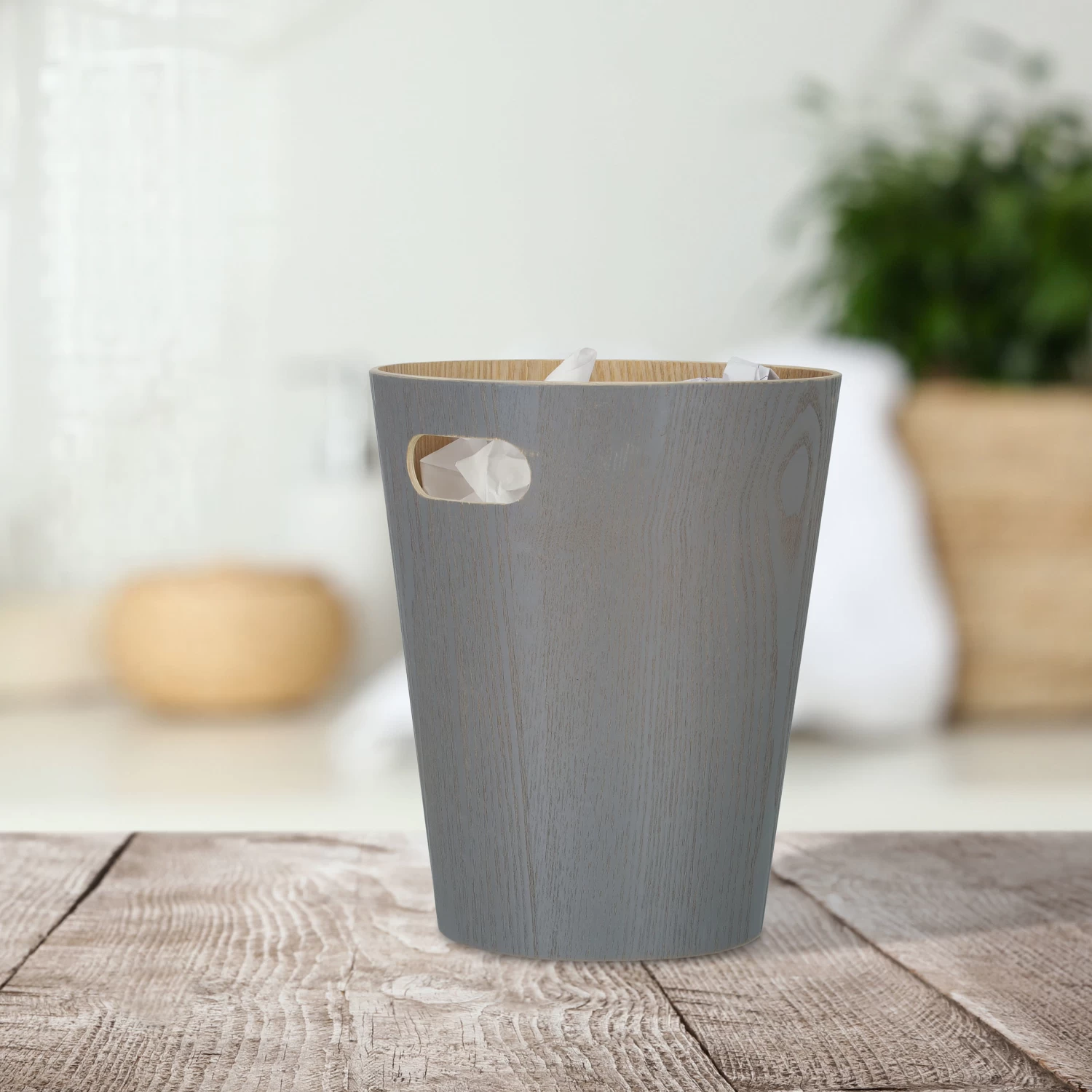 Wenn Du Wert auf einen Papierkorb legst, der nicht nur seinen Job erledigt, sondern sich auch optisch erstklassig in Deine Einrichtung einfügt, ist dieser Mülleimer genau das Richtige. Der dunkelgraue Papiereimer aus Holz ist perfekt für jedes Büro, macht aber auch im Kinder- oder Wohnzimmer sowie im Flur eine gute Figur. Dank des offenem Designs weißt Du immer sofort, wie viel Abfall der Holz-Mülleimer noch aufnehmen kann. Dank des praktischen Tragegriffs ist der Abfallkorb im Nu geleert.