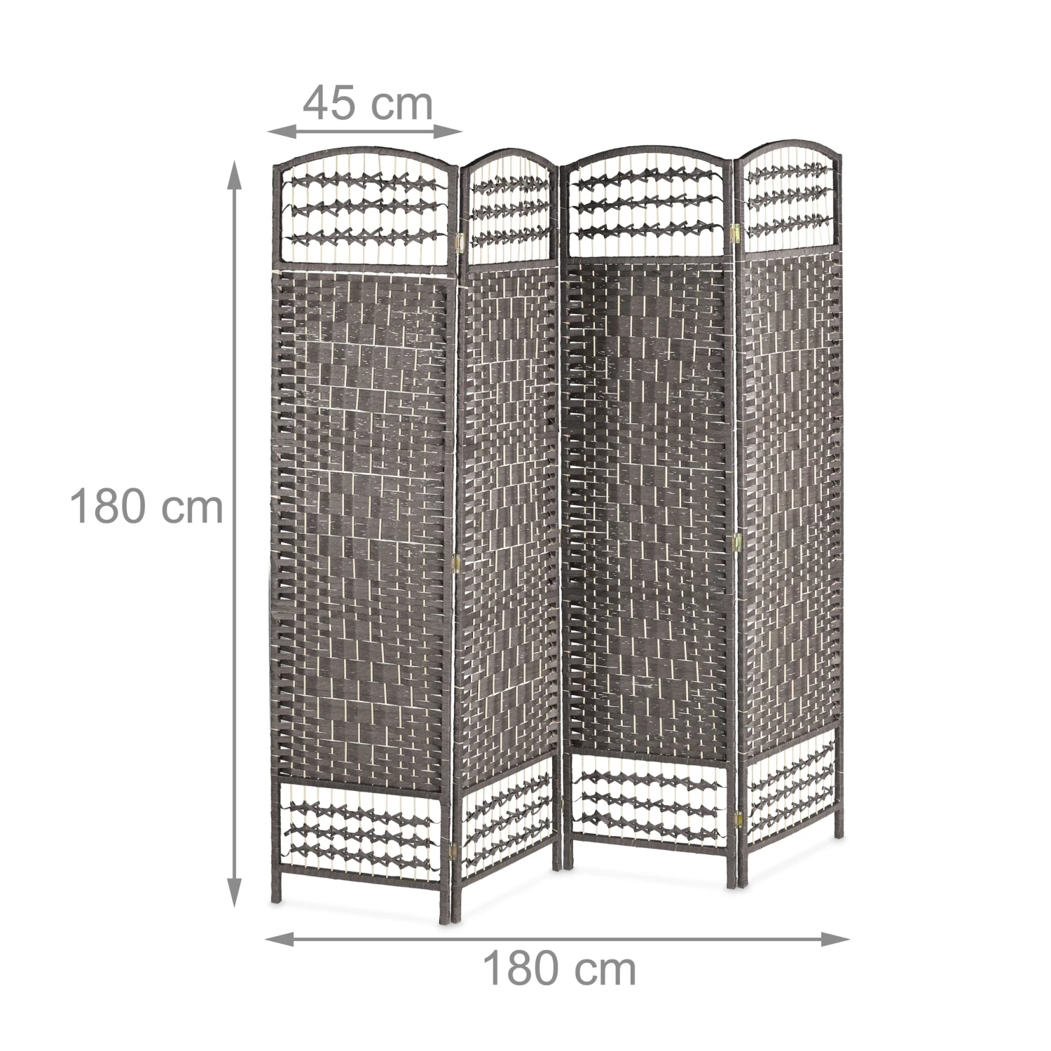 Mit der Abtrennwand unterteilst Du Deine Wohnung intelligent in verschiedene Bereiche. Schaffe gemütliche Rückzugsorte im Wohnzimmer, einen Umkleidebereich im Schlafzimmer oder nutze die Stellwand einfach als Dekoelement. Dank des edlen geflochtenen Designs ist die graue Sichtschutzwand in jedem Raum ein toller Hingucker. Benötigst Du die 4-teilige Raumtrennwand nicht, kannst Du diese einfach zusammenfalten und platzsparend verstauen.