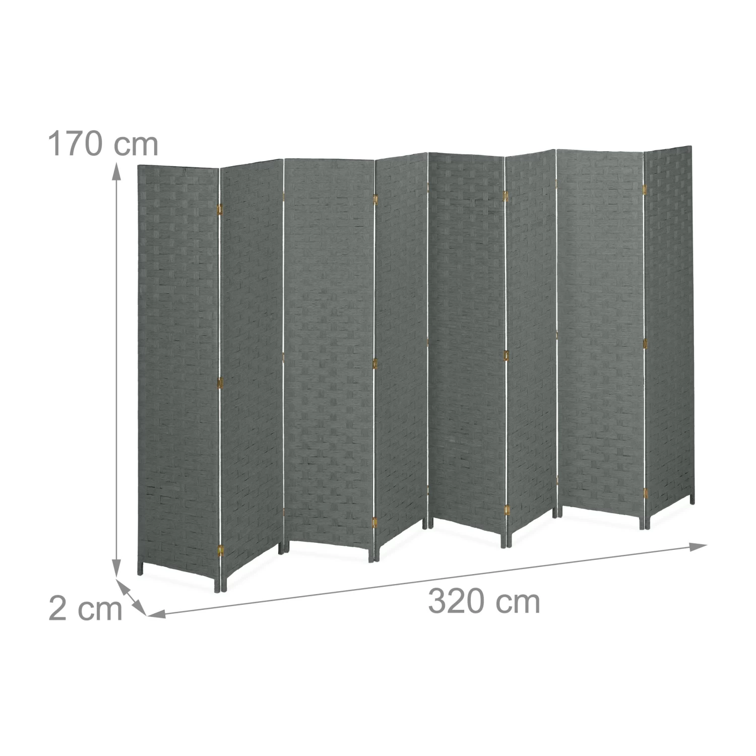 Mit der Abtrennwand unterteilst Du Deine Wohnung intelligent in verschiedene Bereiche. Schaffe gemütliche Rückzugsorte im Wohnzimmer, einen Umkleidebereich im Schlafzimmer oder nutze die Stellwand einfach als Dekoelement. Dank des edlen geflochtenen Designs ist die graue Sichtschutzwand in jedem Raum ein toller Hingucker. Benötigst Du die achtteilige Raumtrennwand nicht, kannst Du diese einfach zusammenfalten und platzsparend verstauen.