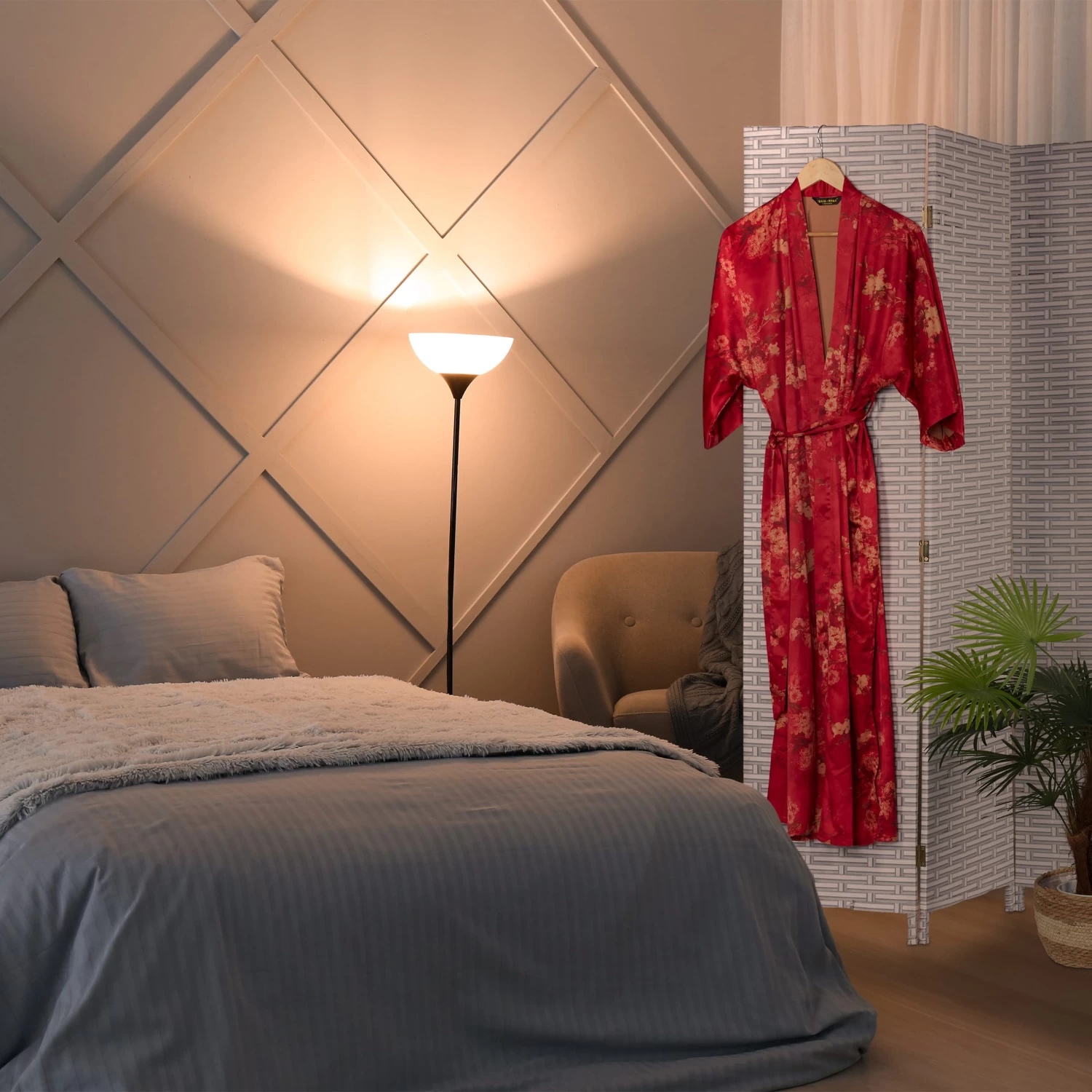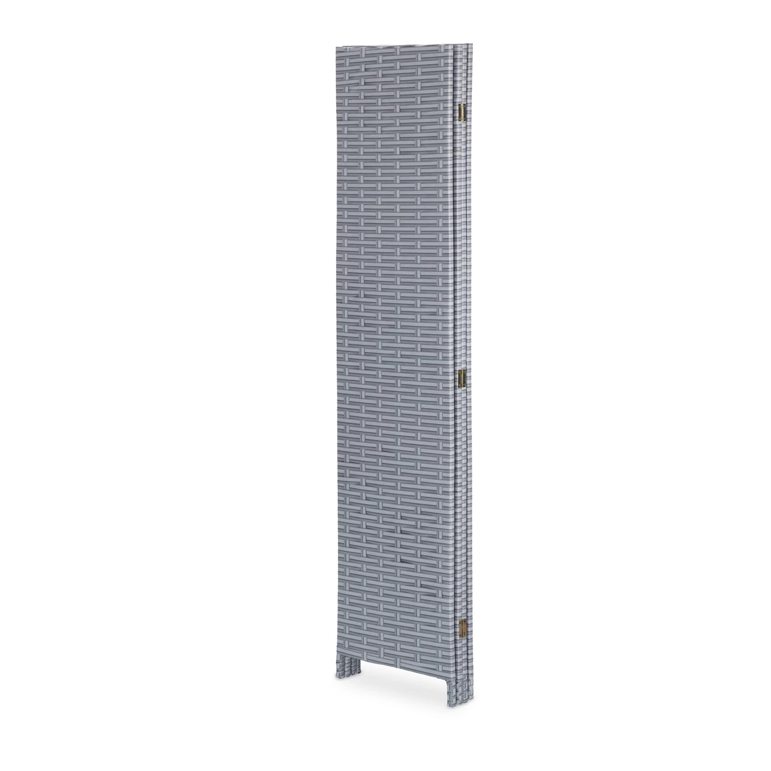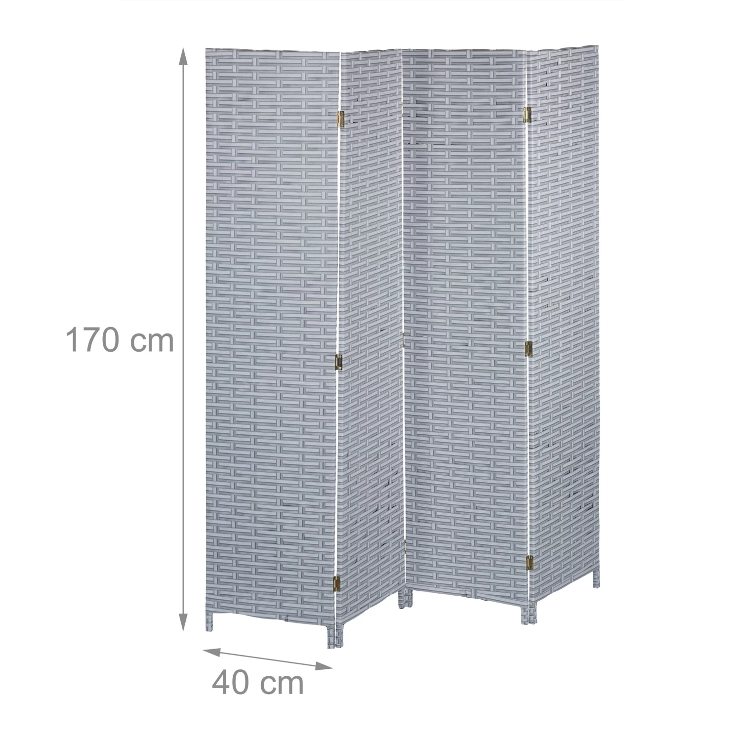 Mit der Abtrennwand unterteilst Du Deine Wohnung intelligent in verschiedene Bereiche. Schaffe gemütliche Rückzugsorte im Wohnzimmer, einen Umkleidebereich im Schlafzimmer oder nutze die Stellwand einfach als Dekoelement. Dank des geflochtenen Designs ist die grau-weiße Sichtschutzwand in jedem Raum ein toller Hingucker. Benötigst Du die 4-teilige Raumtrennwand nicht, kannst Du diese einfach zusammenfalten und platzsparend verstauen.