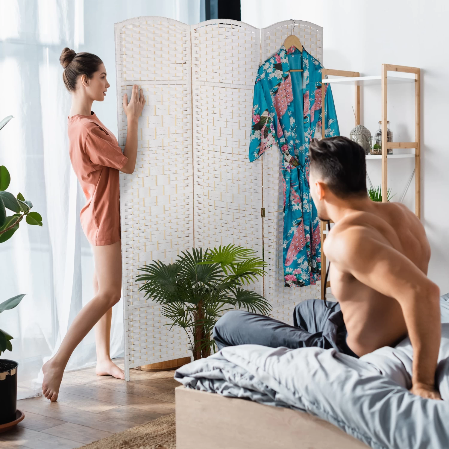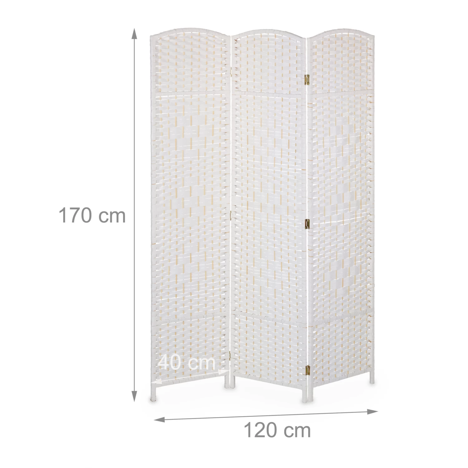 Mit der Abtrennwand unterteilst Du Deine Wohnung intelligent in verschiedene Bereiche. Schaffe gemütliche Rückzugsorte im Wohnzimmer, einen Umkleidebereich im Schlafzimmer oder nutze die Stellwand einfach als Dekoelement. Dank des dekorativen geflochtenen Designs ist die weiße Sichtschutzwand in jedem Raum ein toller Hingucker. Benötigst Du die 3-teilige Raumtrennwand nicht, kannst Du diese einfach zusammenfalten und platzsparend verstauen.