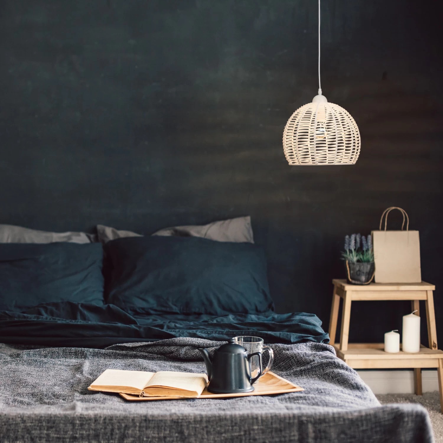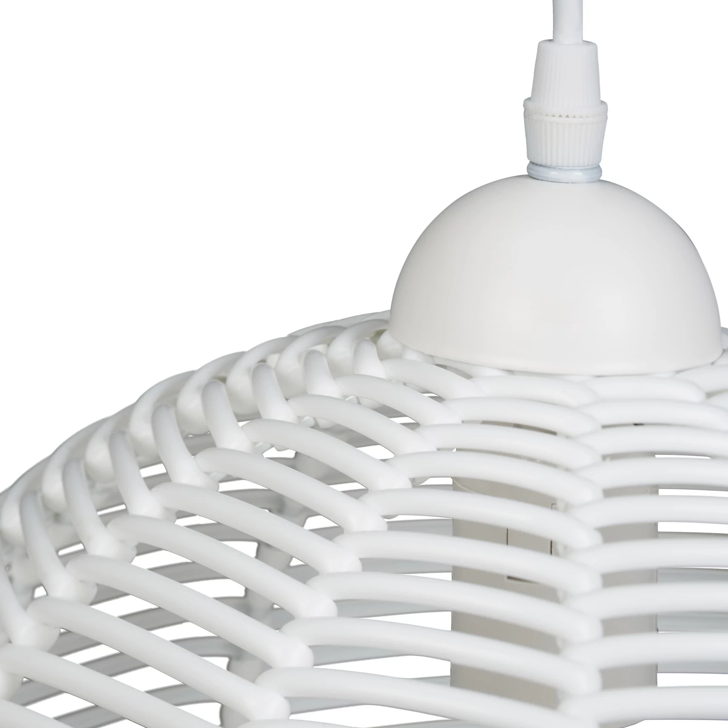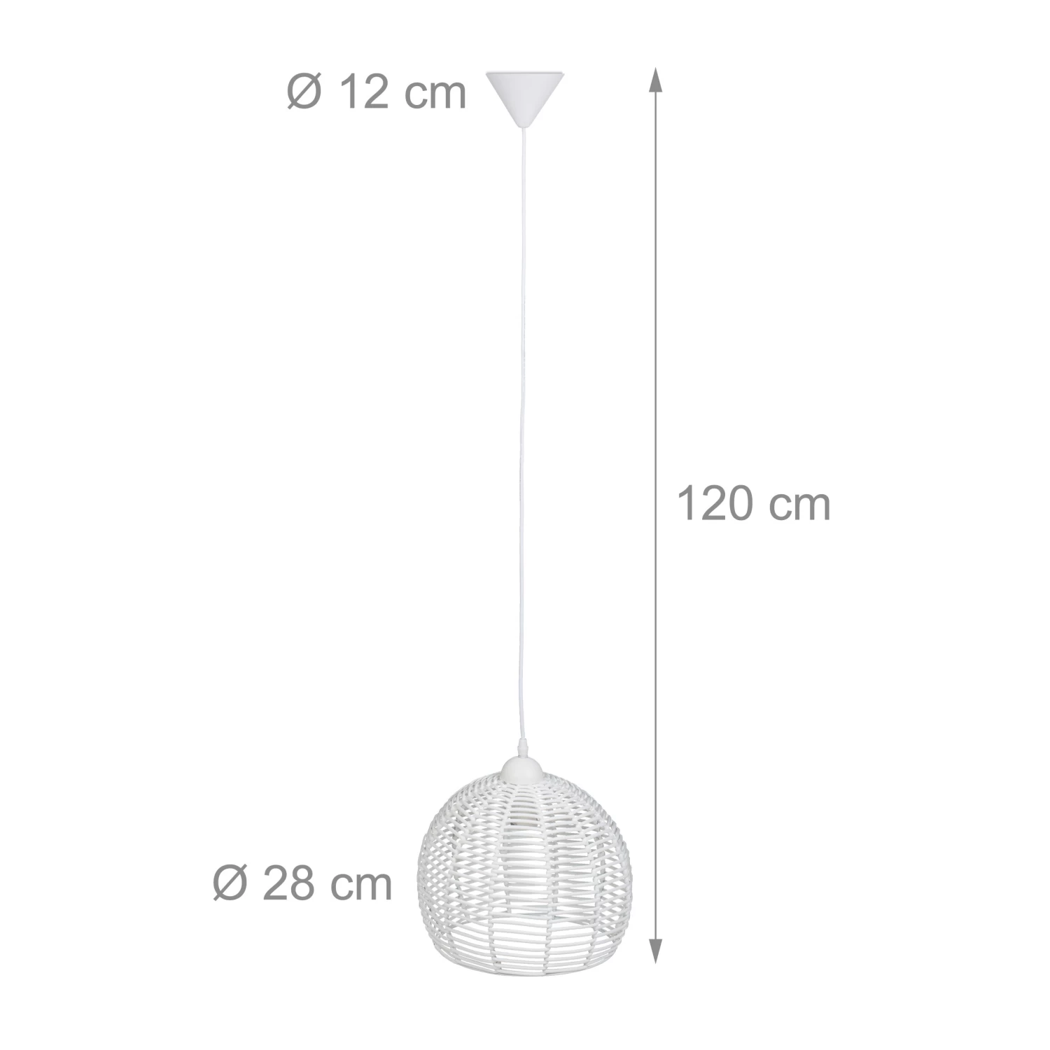 Die Rattan Lampe in strahlendem Weiß schafft eine gemütliche Atmosphäre in Ihrem Zuhause. Der Lampenschirm der Hängelampe ist in einem ansprechenden Korbdesign gestaltet, wodurch eine stimmungsvolle Beleuchtung im Wohn-, Ess- oder Schlafbereich geschaffen wird. Besonders schön wirkt die Pendelleuchte mit einer milchigen, mattierten oder einer Edison-Glühbirne. Aufgrund des offen gestalteten Schirmes können Sie die E27-Fassung problemlos erreichen.